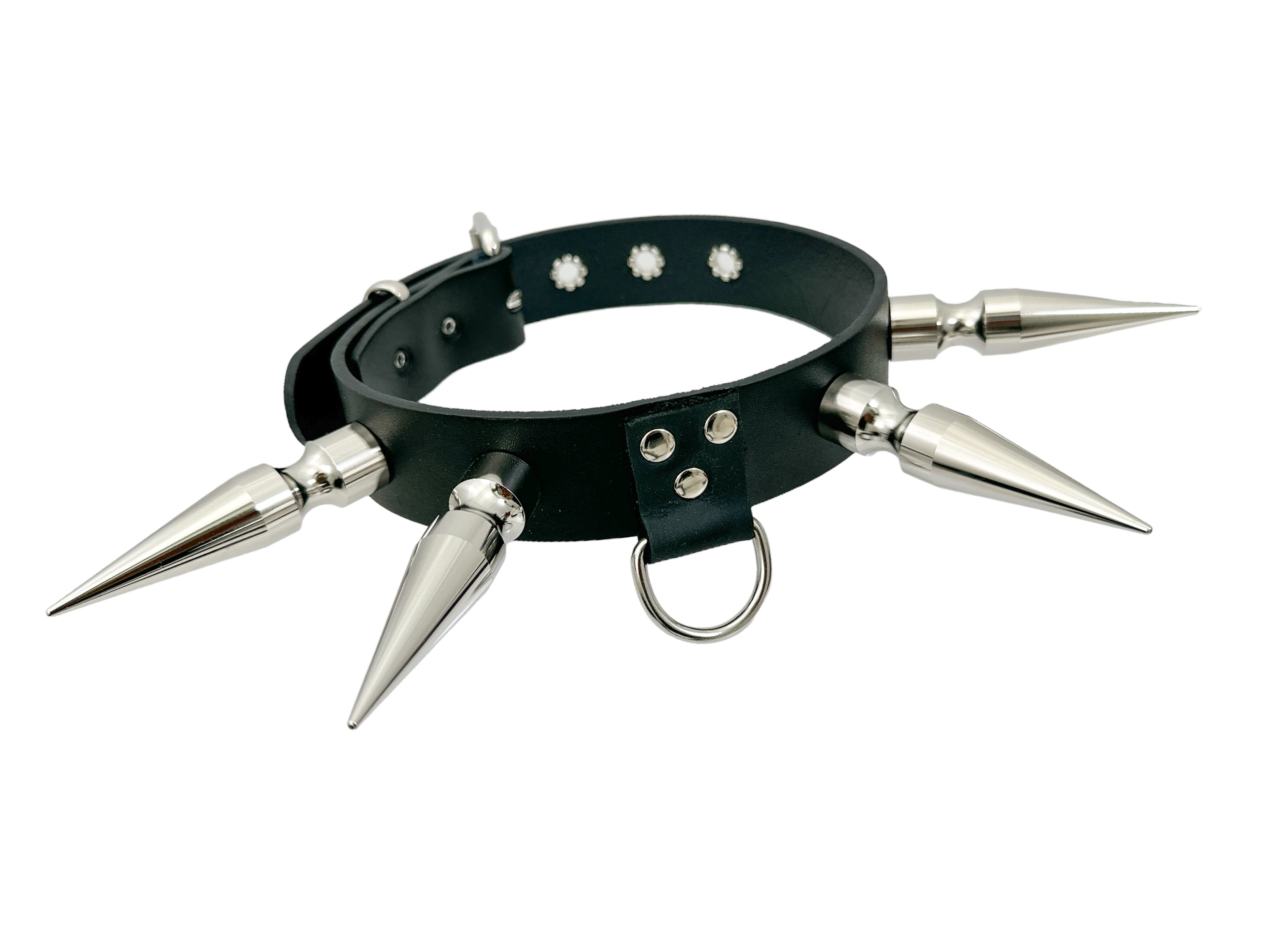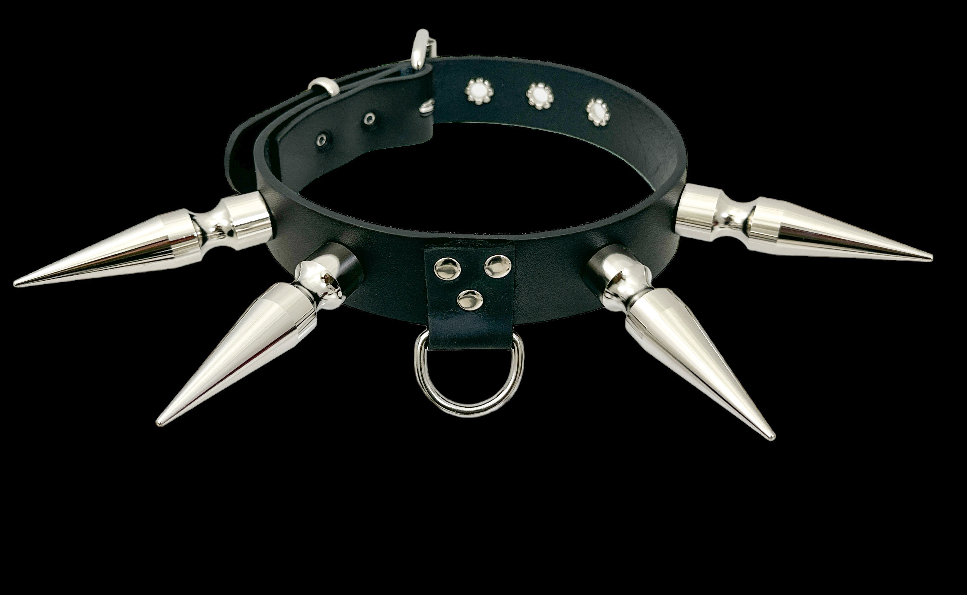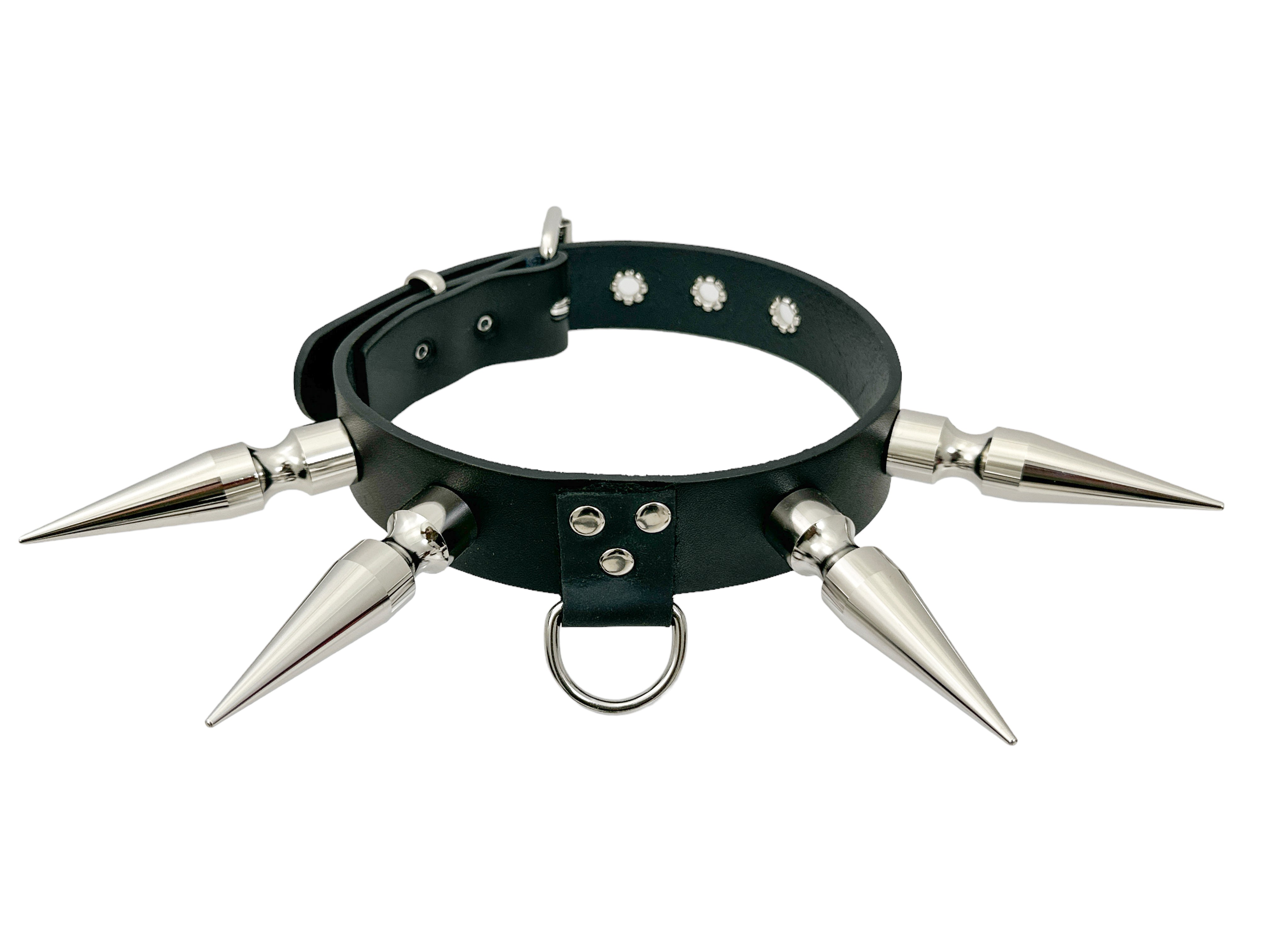 3/4" LACE BLACK LEATHER CHOKER WITH 2 1/2" PIN SPIKES Read more