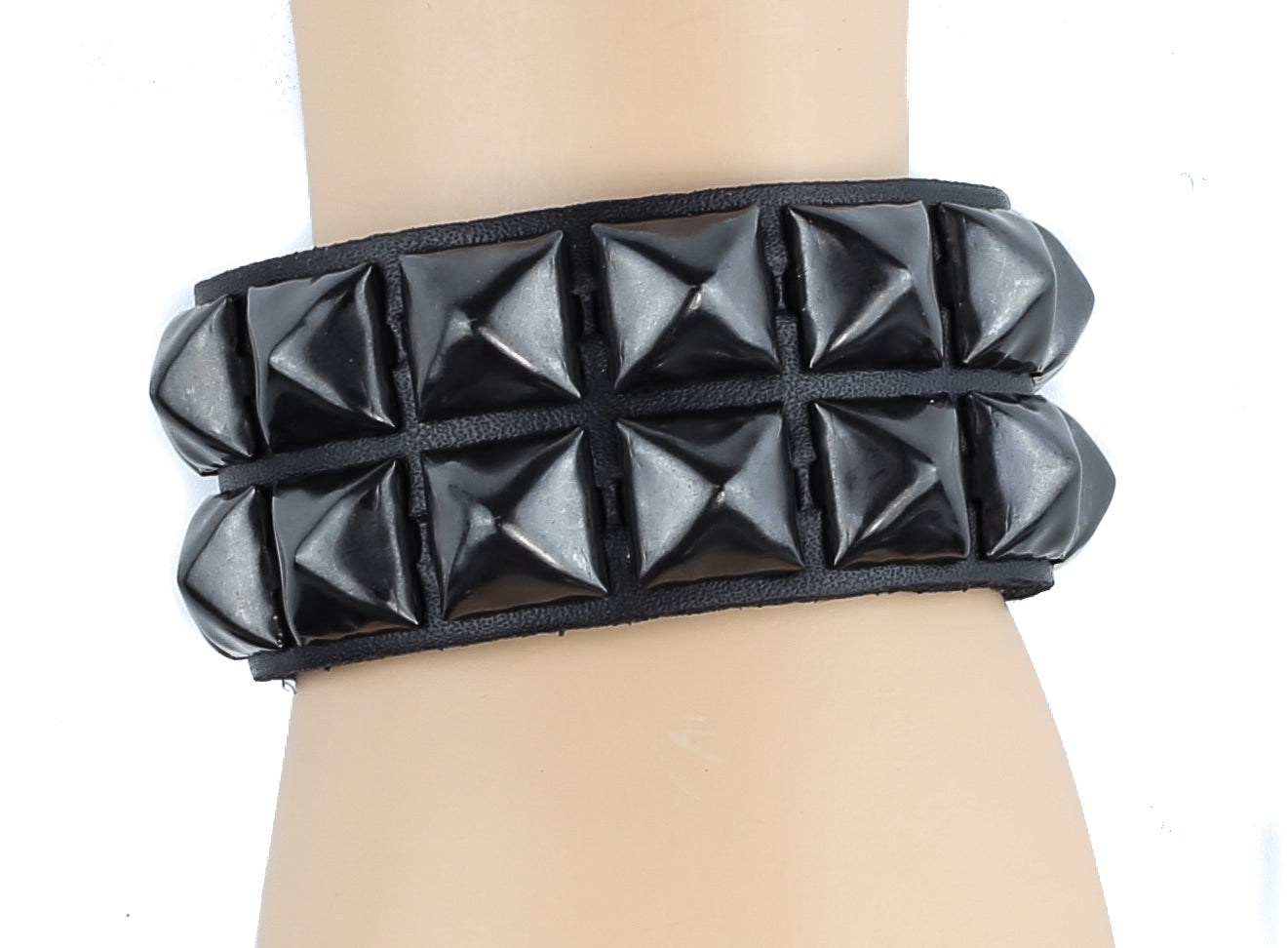 BC112 2 ROW 1/2" PYRAMID SNAP BRACELET