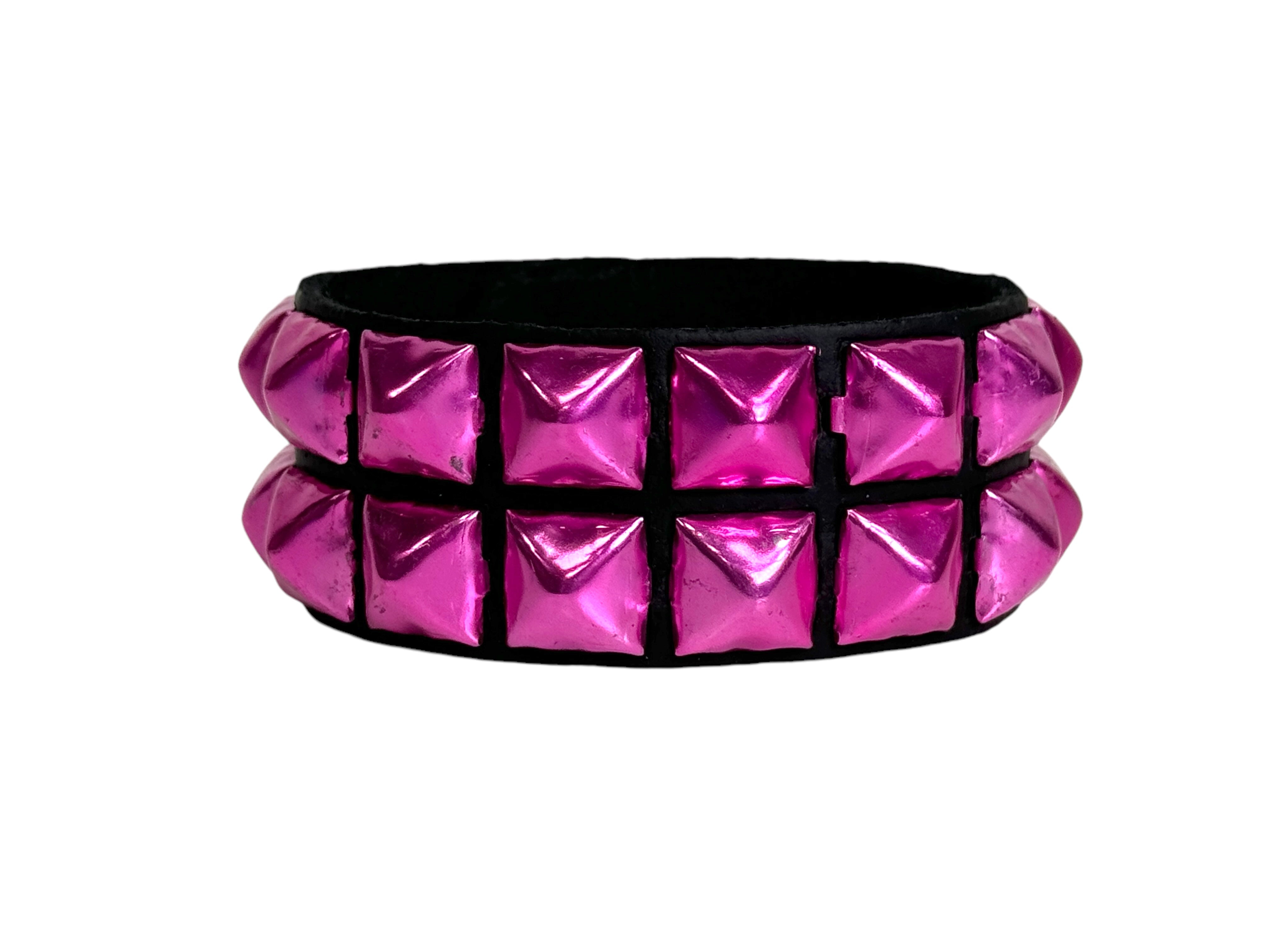 BC112 2 ROW 1/2" PYRAMID STUD SNAP BRACELET