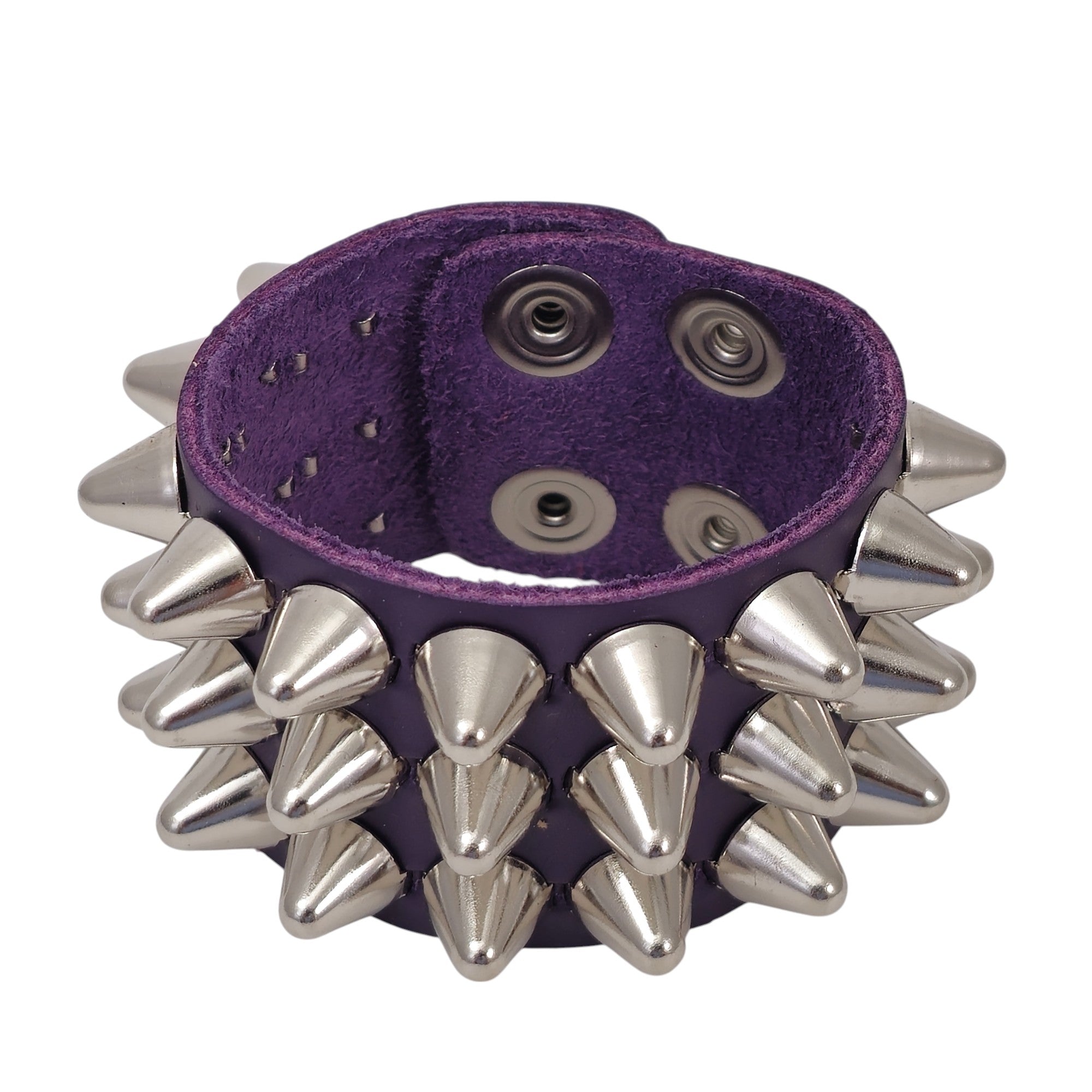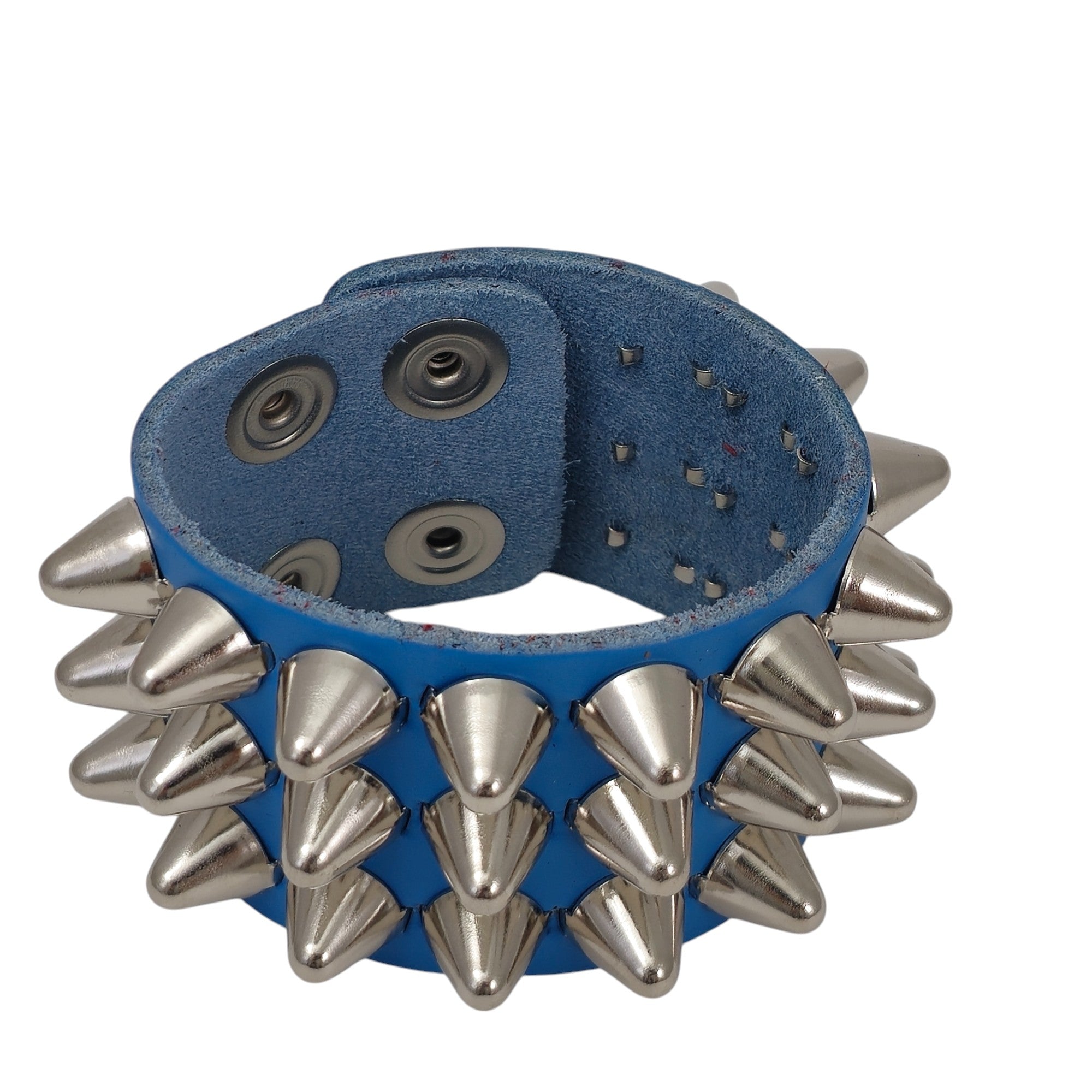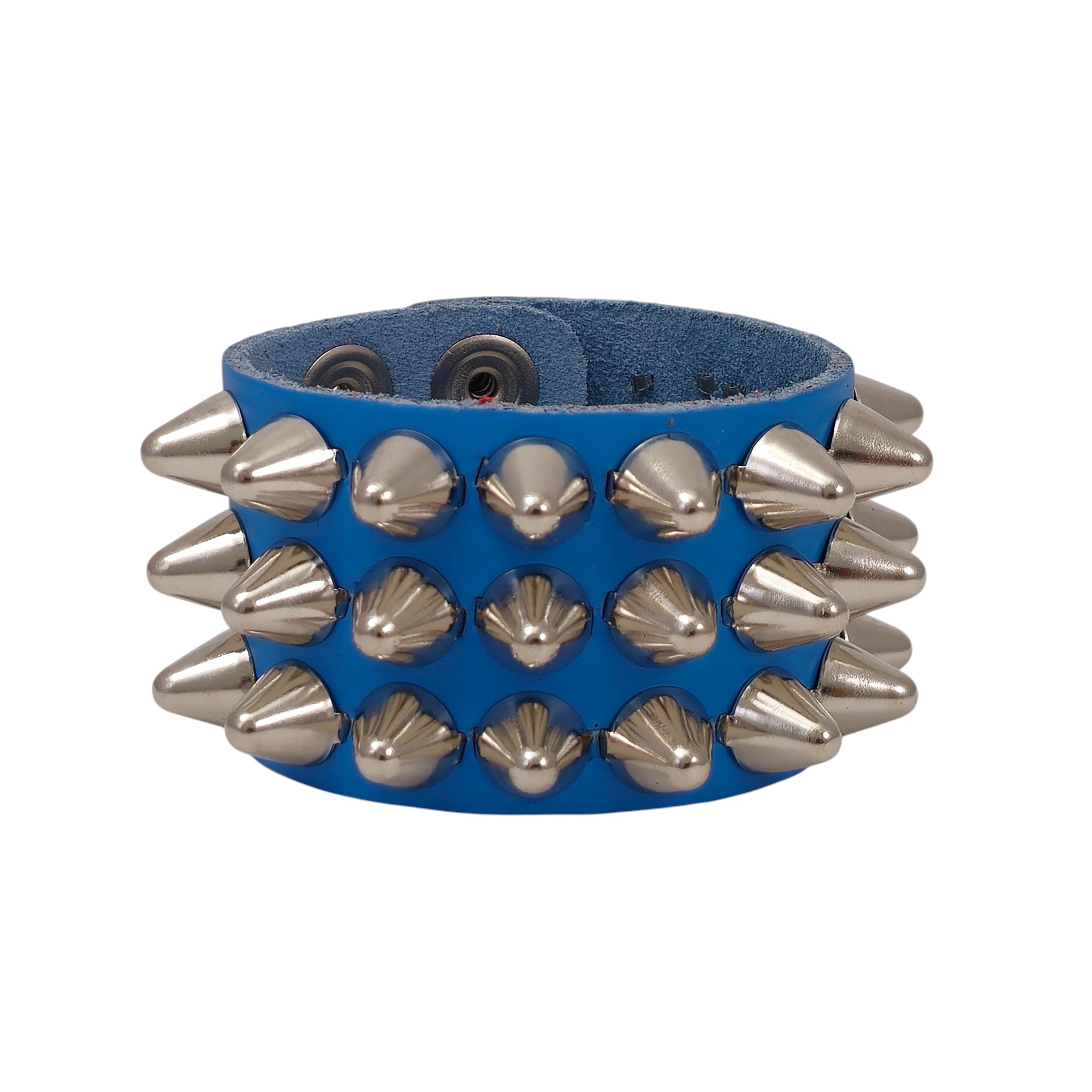 BC256L-ITL ITALIAN GENUINE LEATHER THREE ROW UK77 CONE STUDDED BRACELET