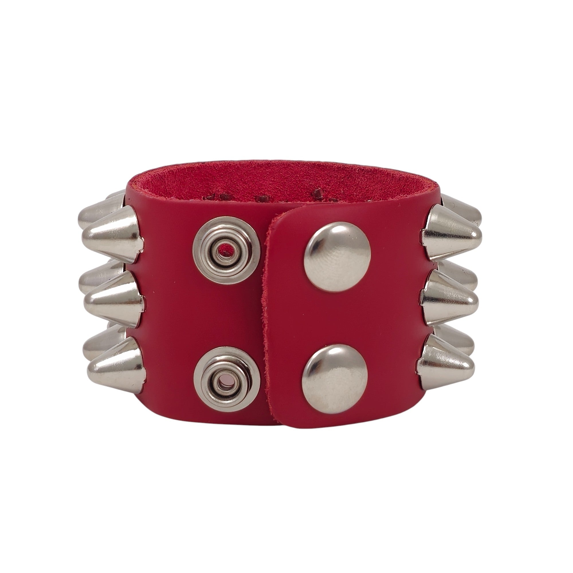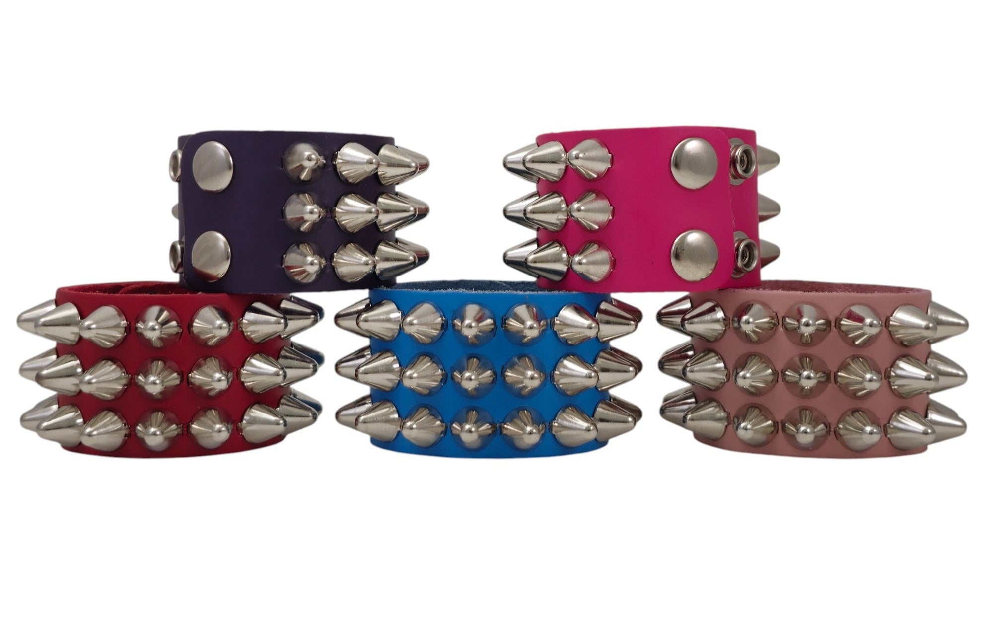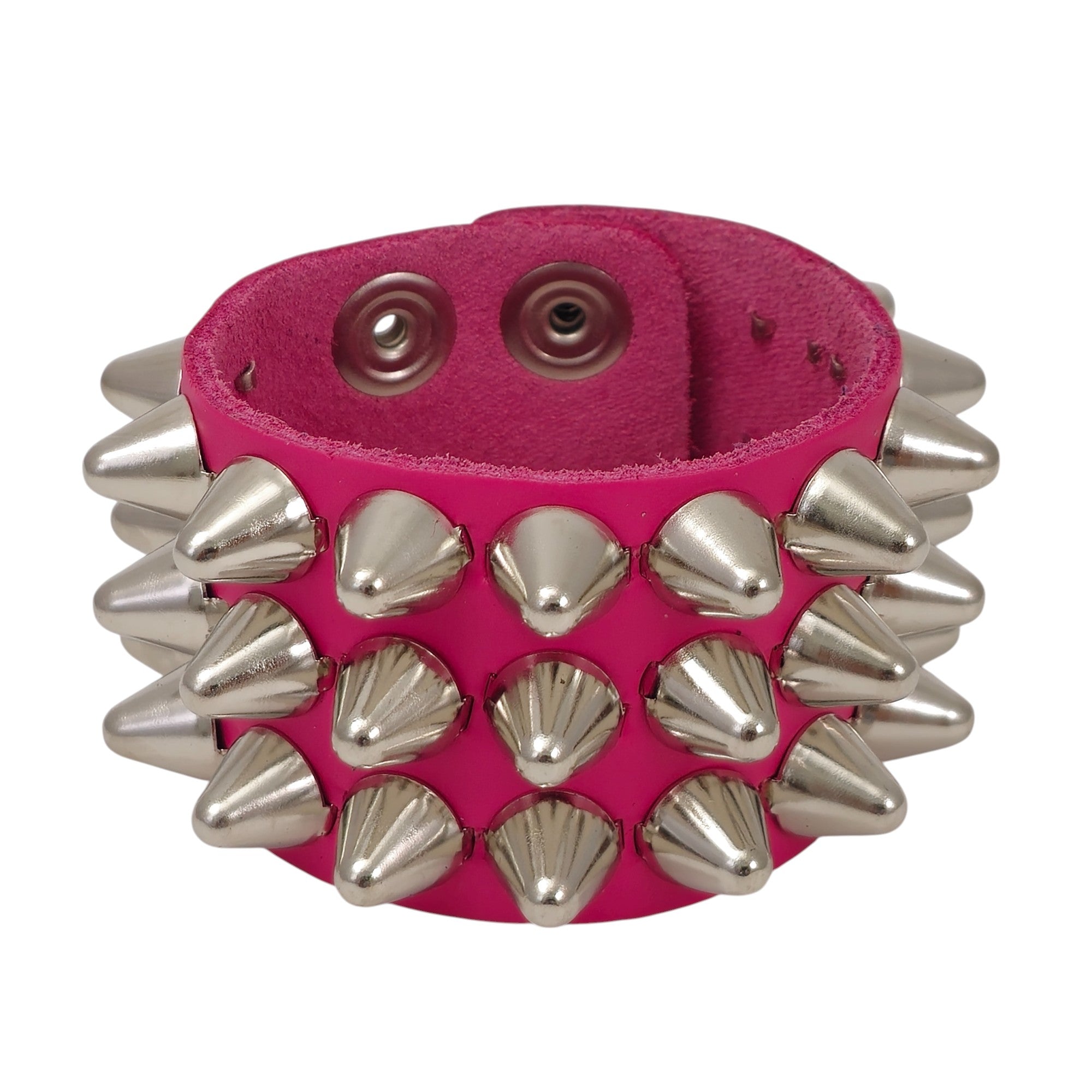 BC256L-ITL ITALIAN GENUINE LEATHER THREE ROW UK77 CONE STUDDED BRACELET