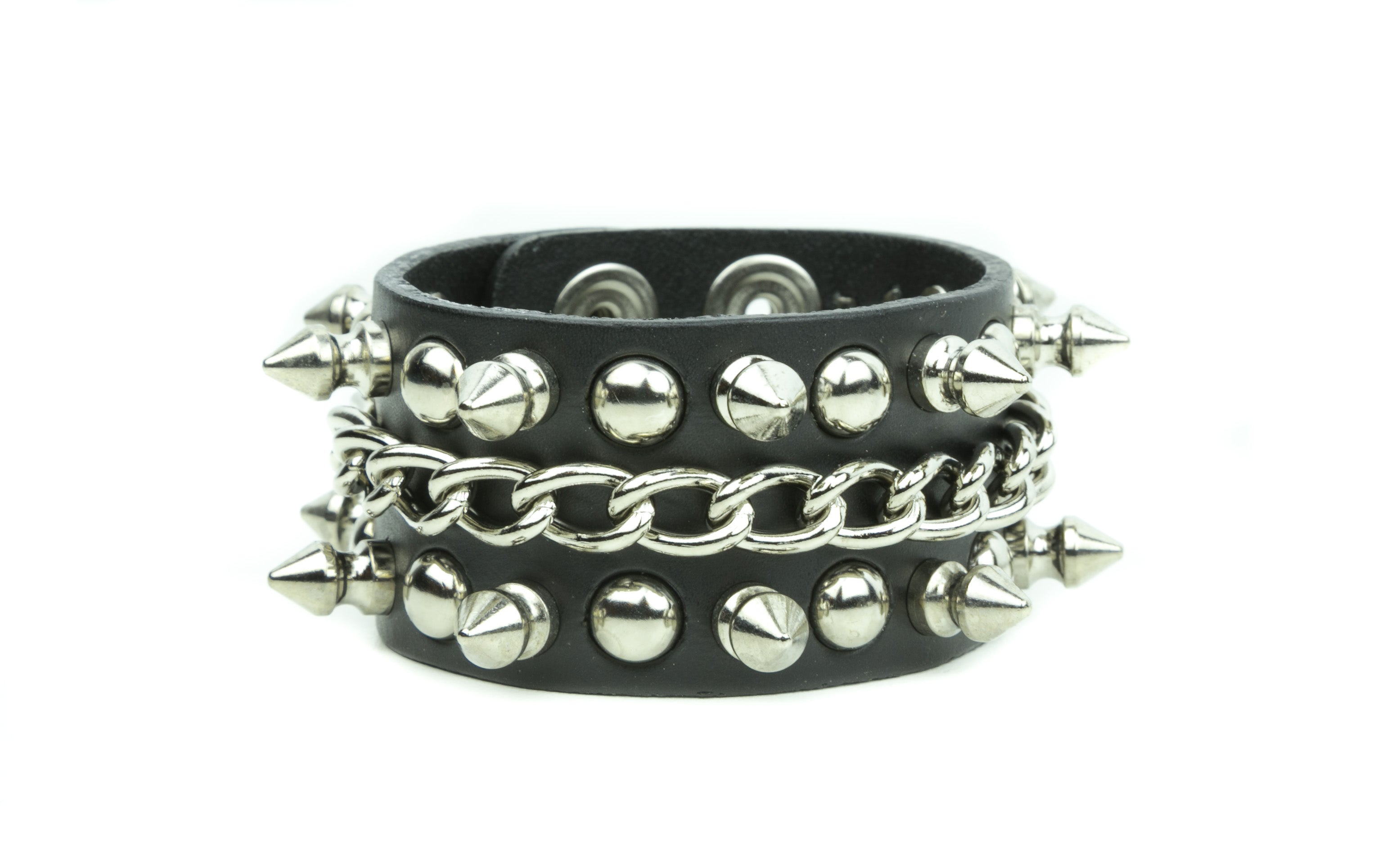 BRACELET WITH 1/2" SPIKE, CHAIN & ROUND STUD Read more