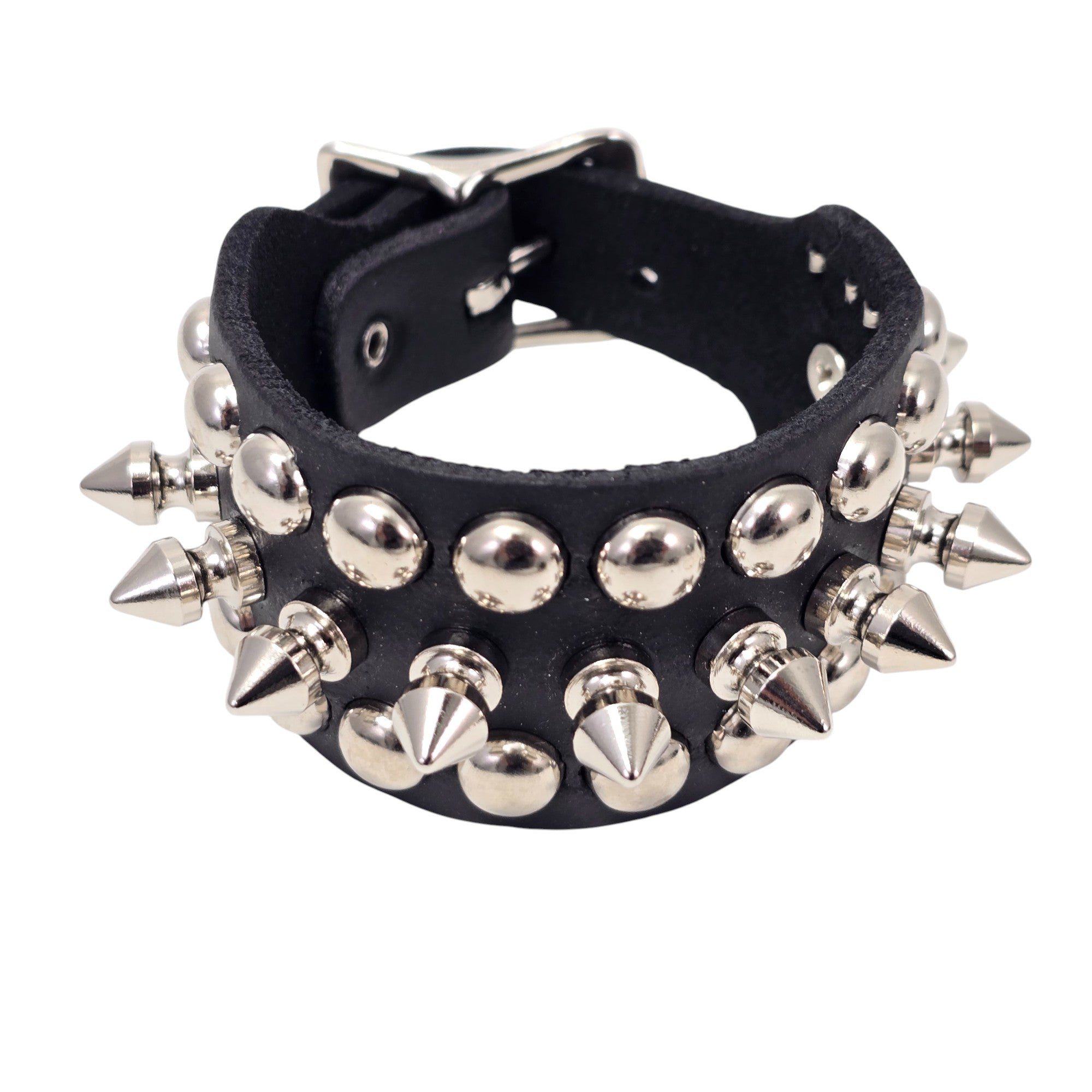 BC185S-RND 1/2" SPIKE ROUND STUDDED 1 1/2" WIDE BUCKLE BRACELET