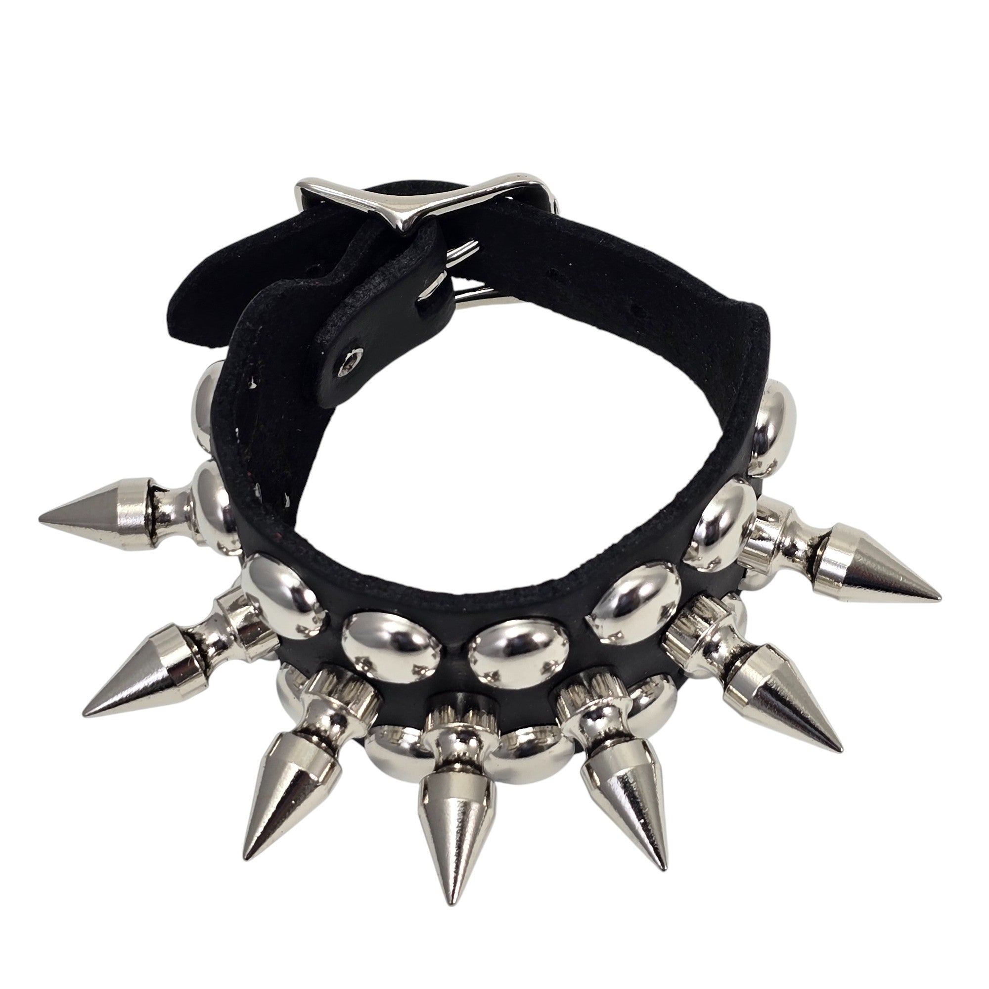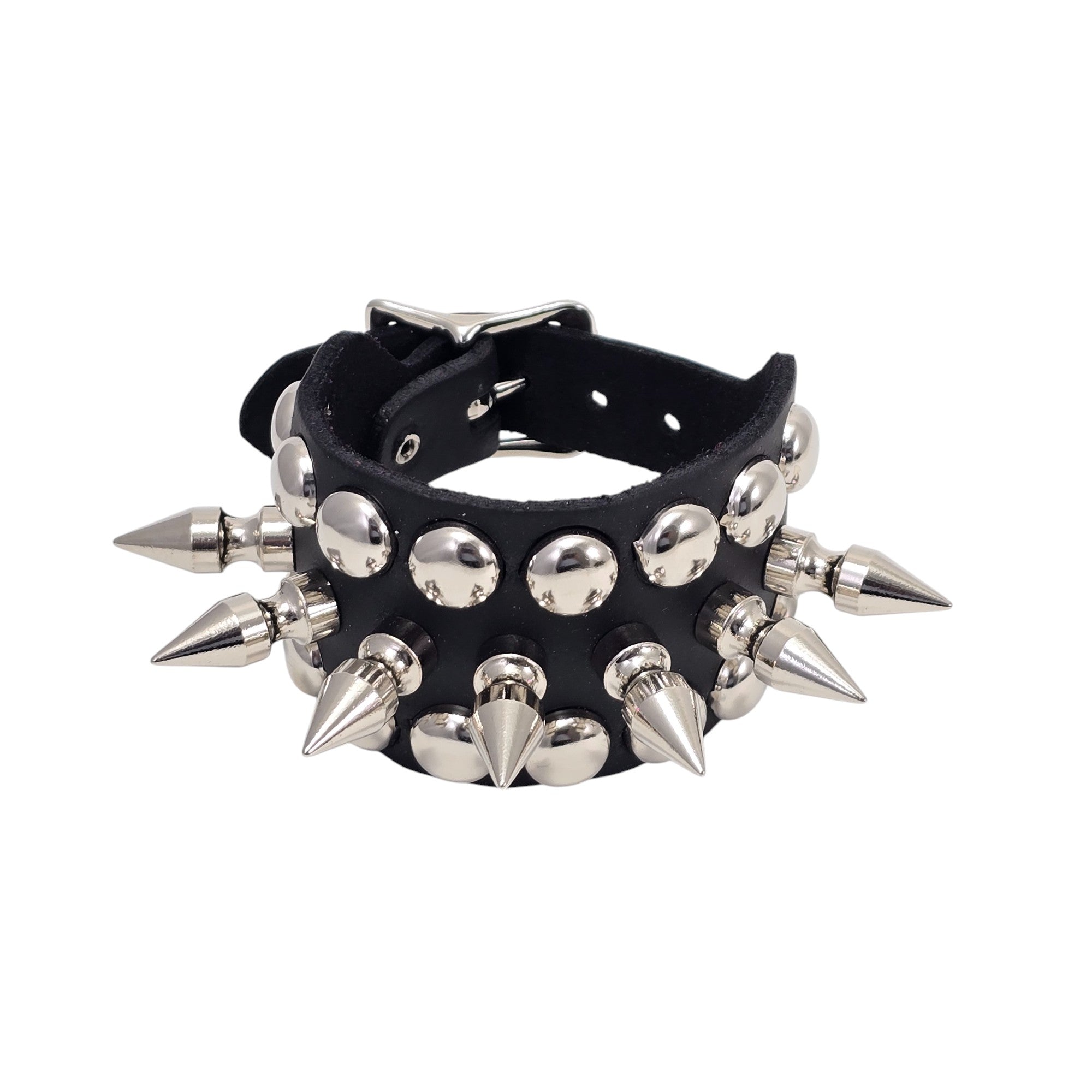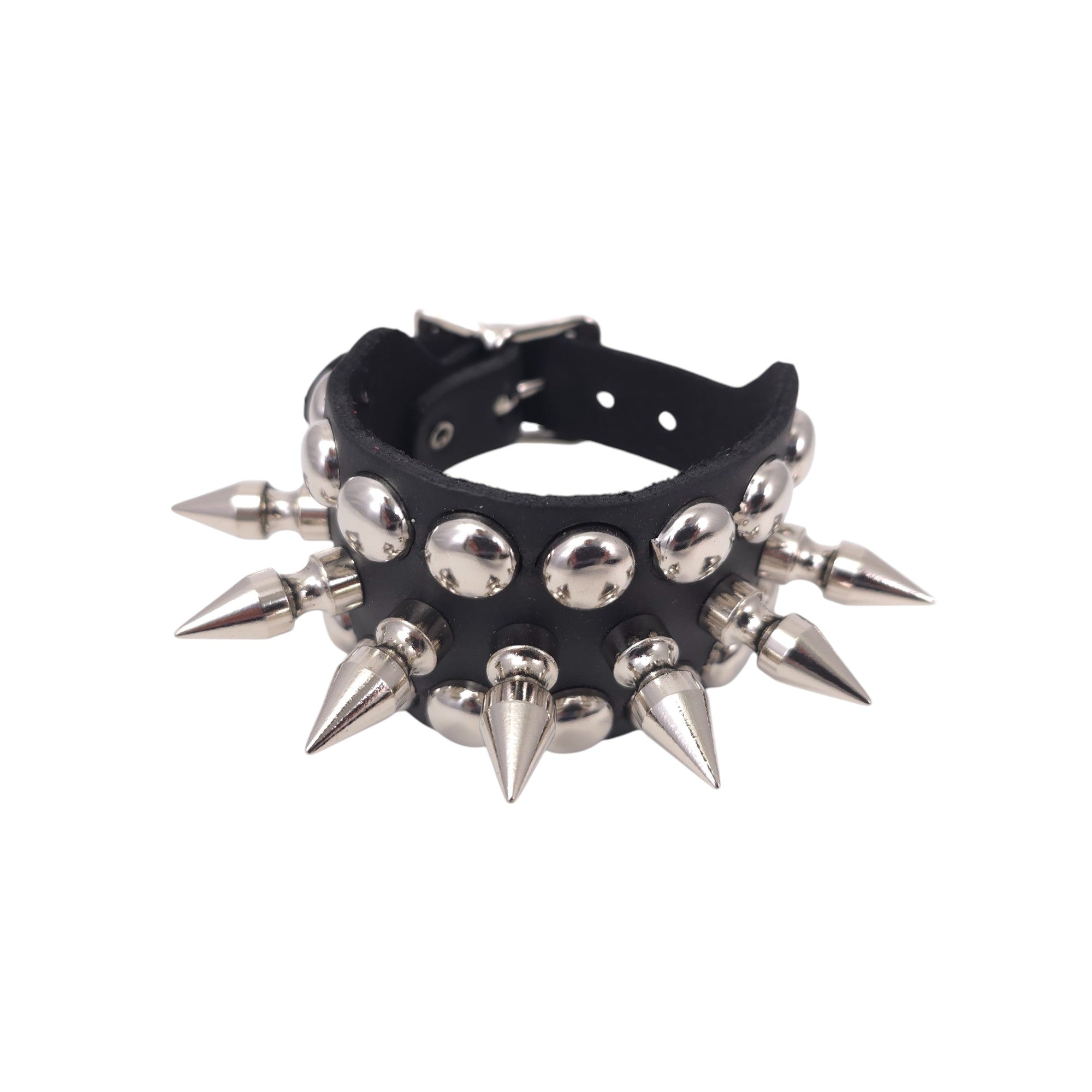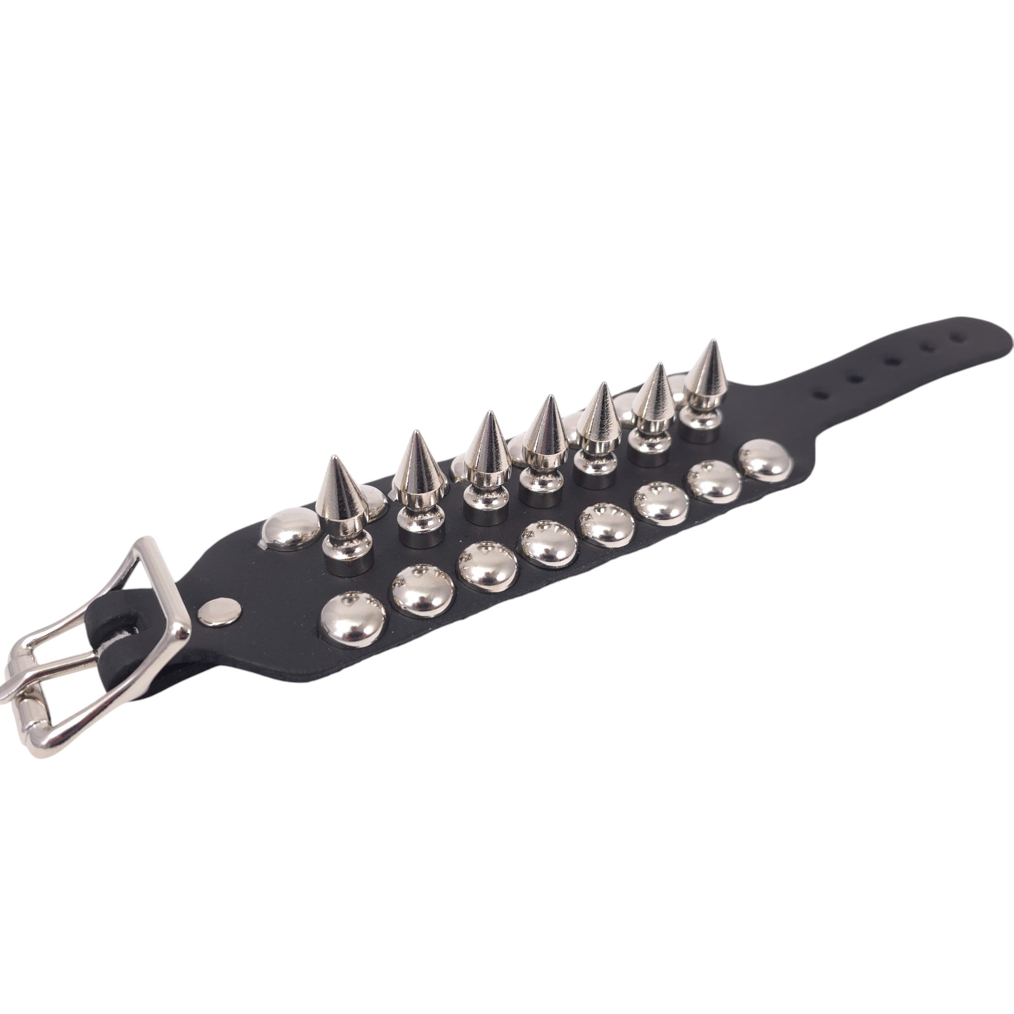 BC186 1" SPIKE 1/2" ROUND STUDDED 1 1/4" WIDE BUCKLE BRACELET
