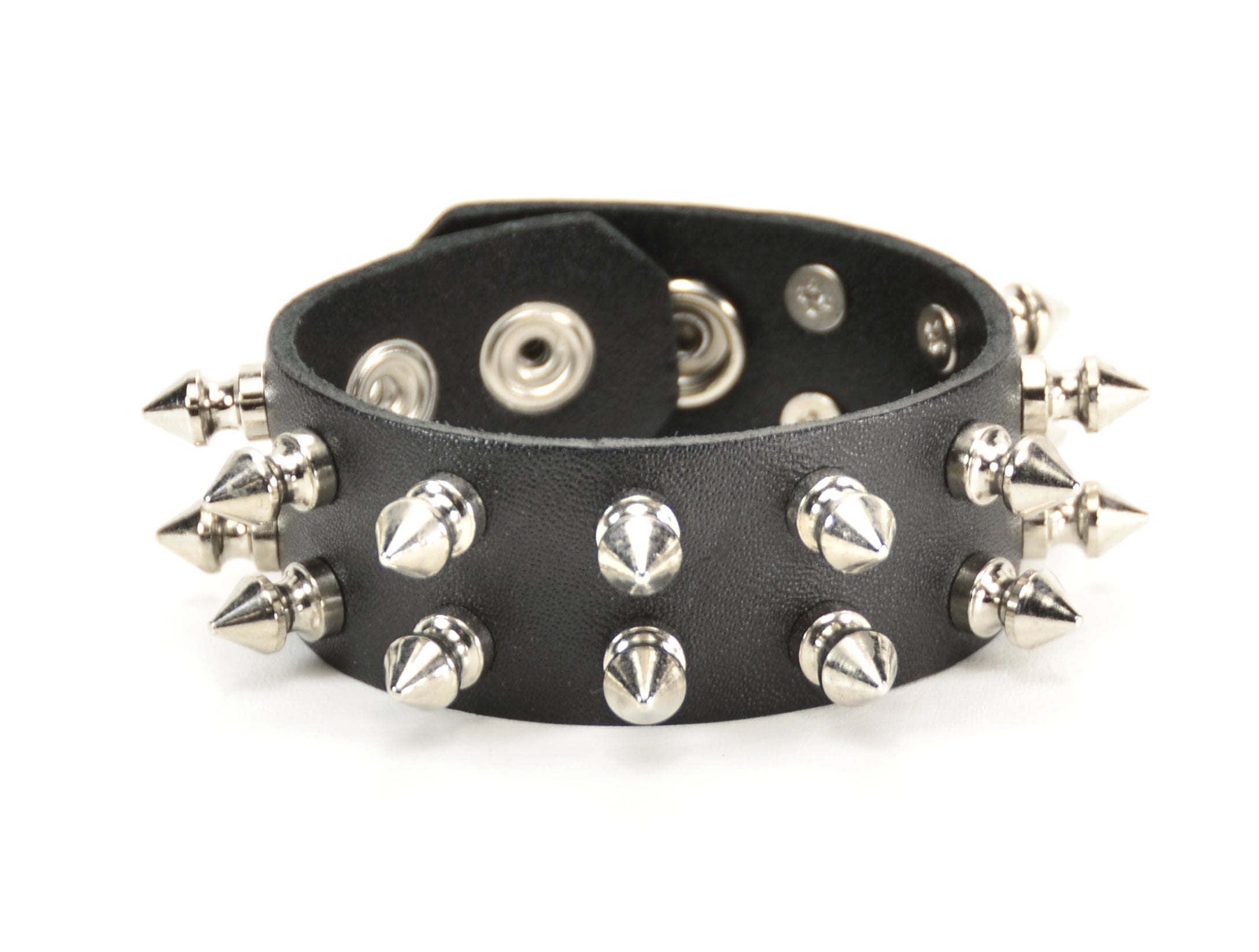 SNAP BRACELET WITH 2 ROW 1/2" SPIKES, 1" WIDE Read more