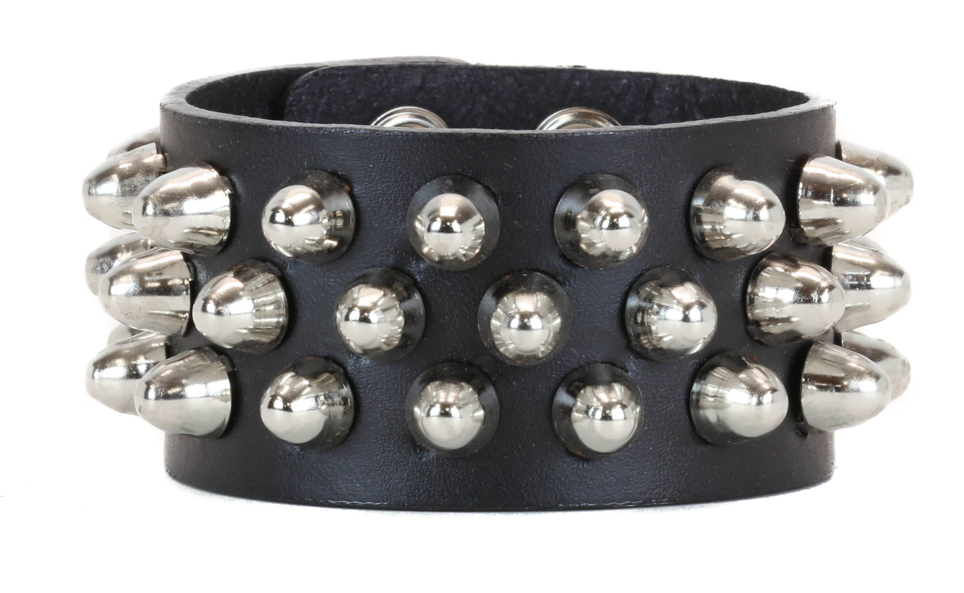3 ROW CONEHEAD STUD BRACELET, 1 1/2" WIDE Read more