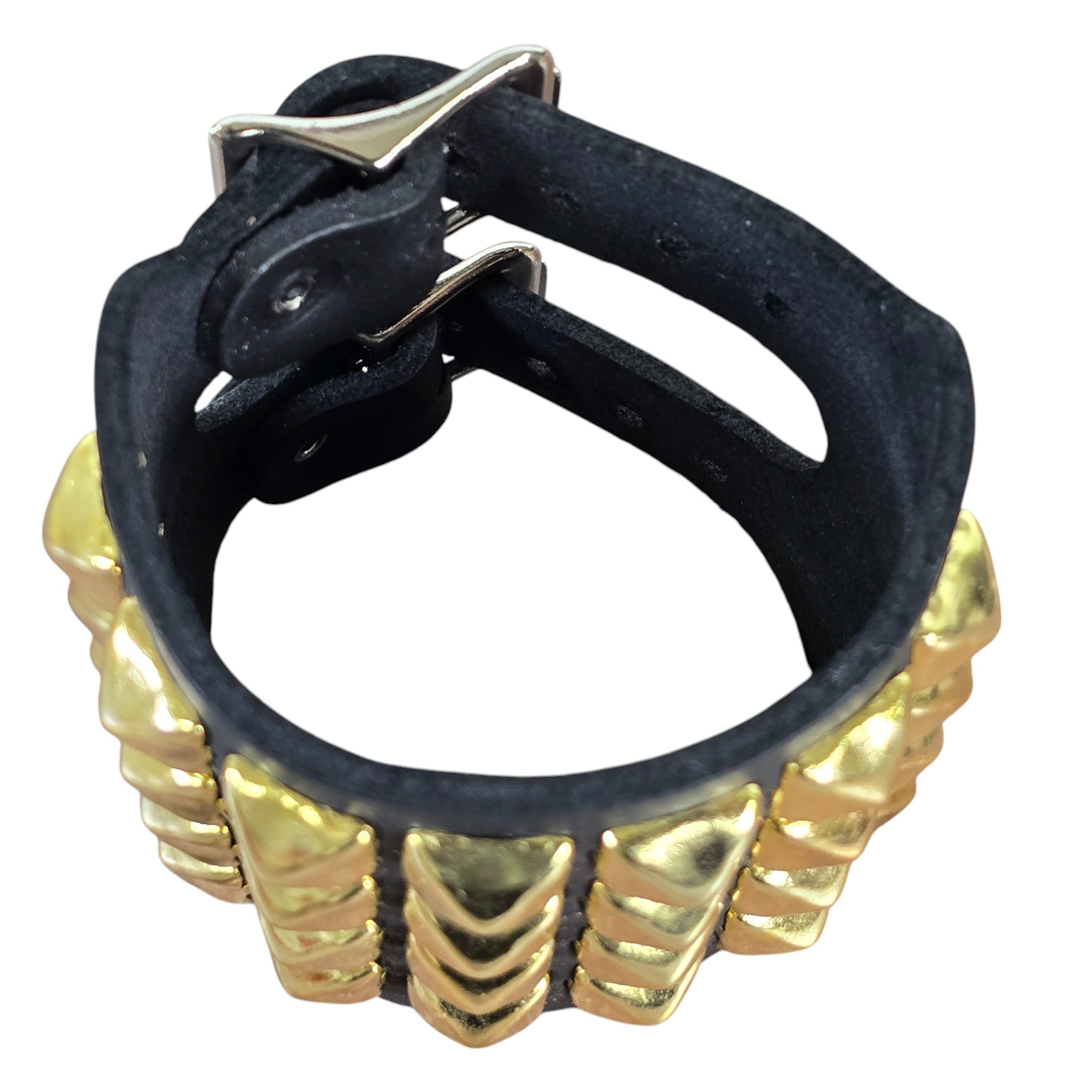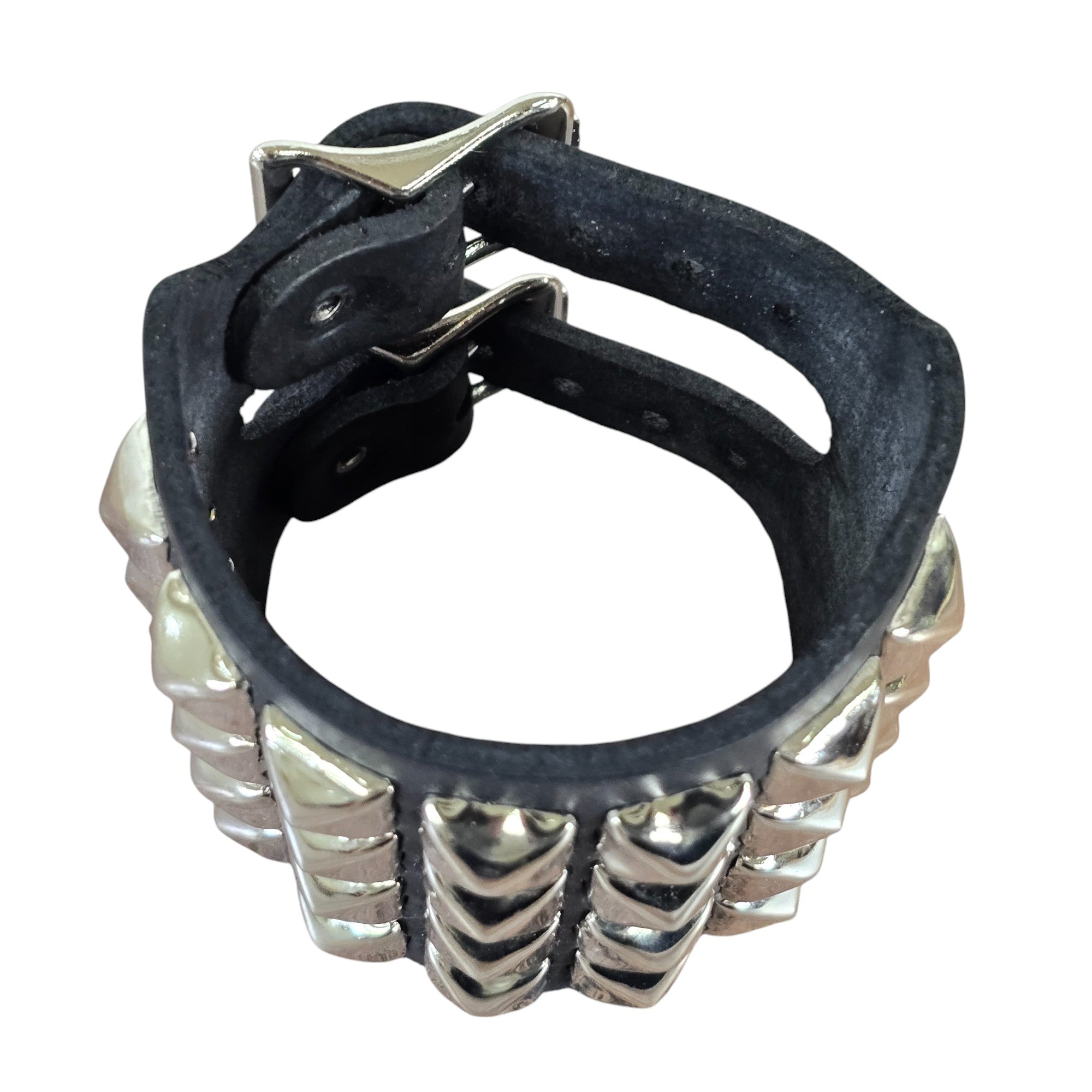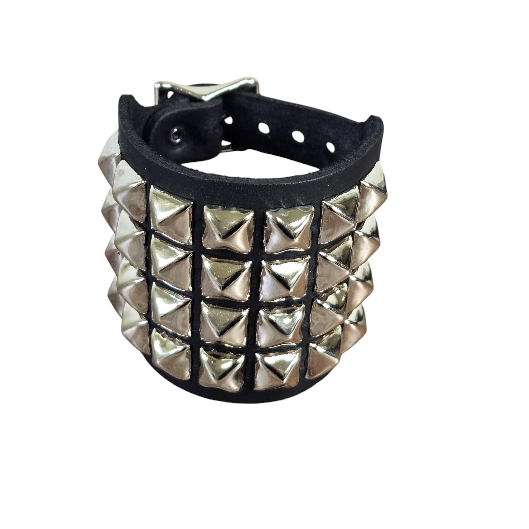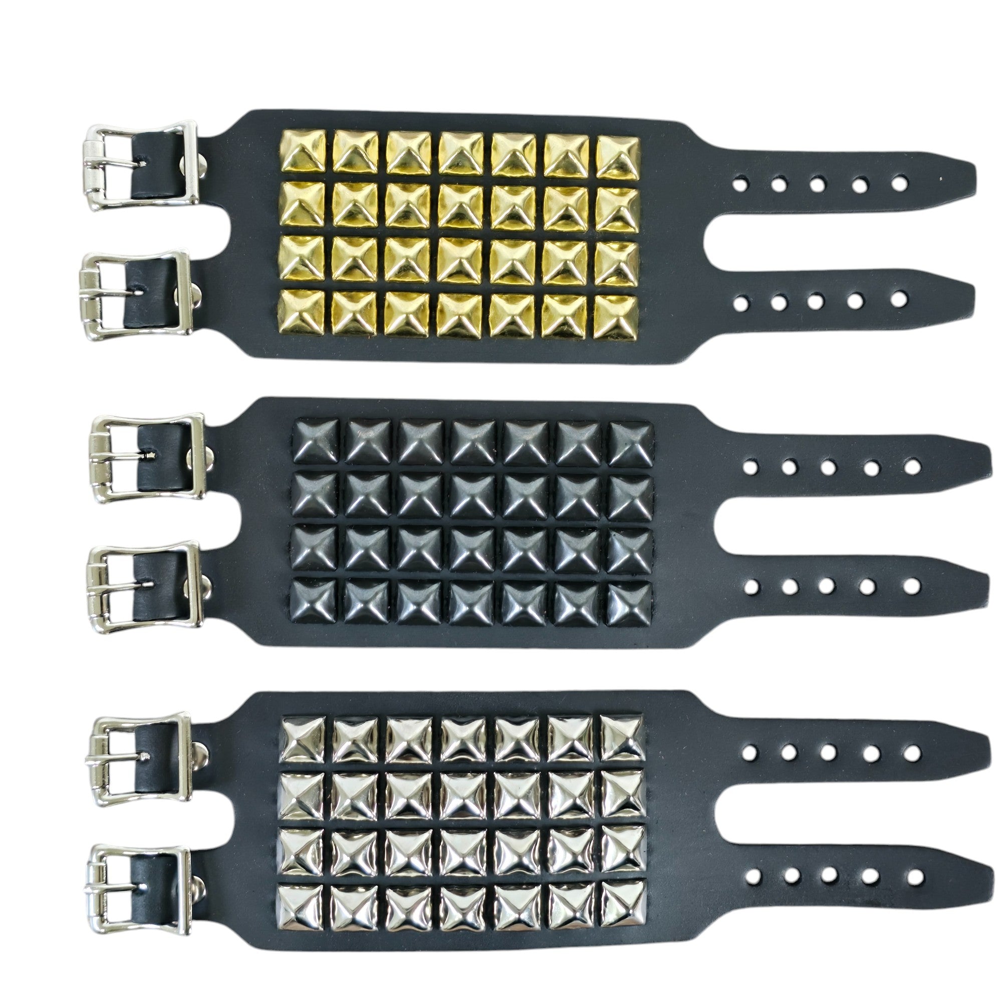 BC412 4 ROW PYRAMID STUDDED DOUBLE BUCKE CUFF BRACELET