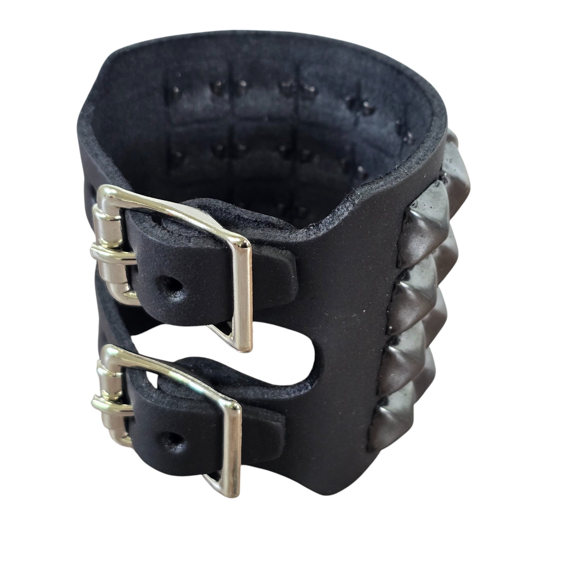 4 ROW STUDDED DOUBLE BUCKE CUFF BRACELET 4" WIDE , DOUBLE 5/8" BUCKLE GENUINE LEATHER Read more