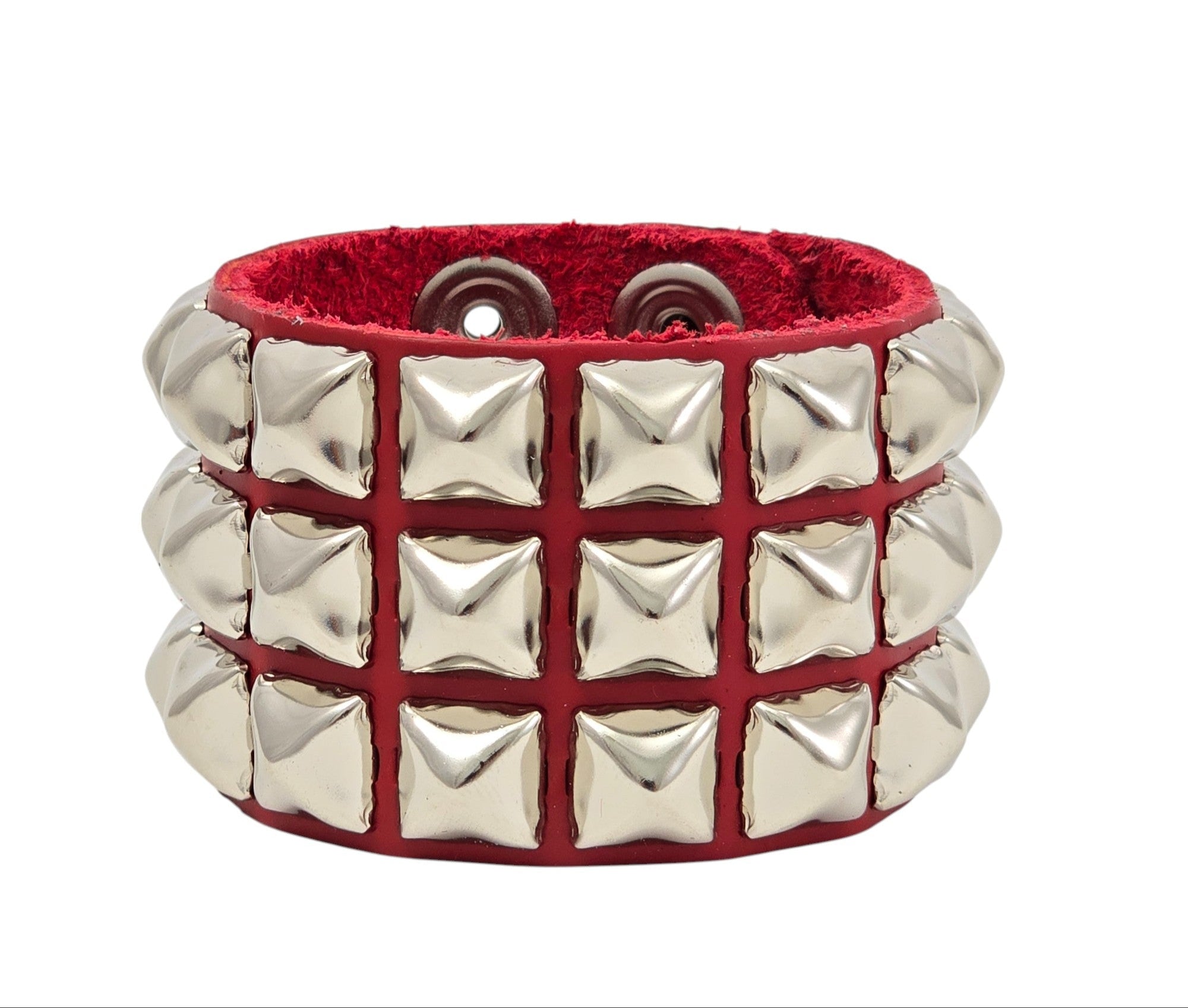 BC127IT-RED ITALIAN RED GENUINE LEATHER STUDDED BRACELET
