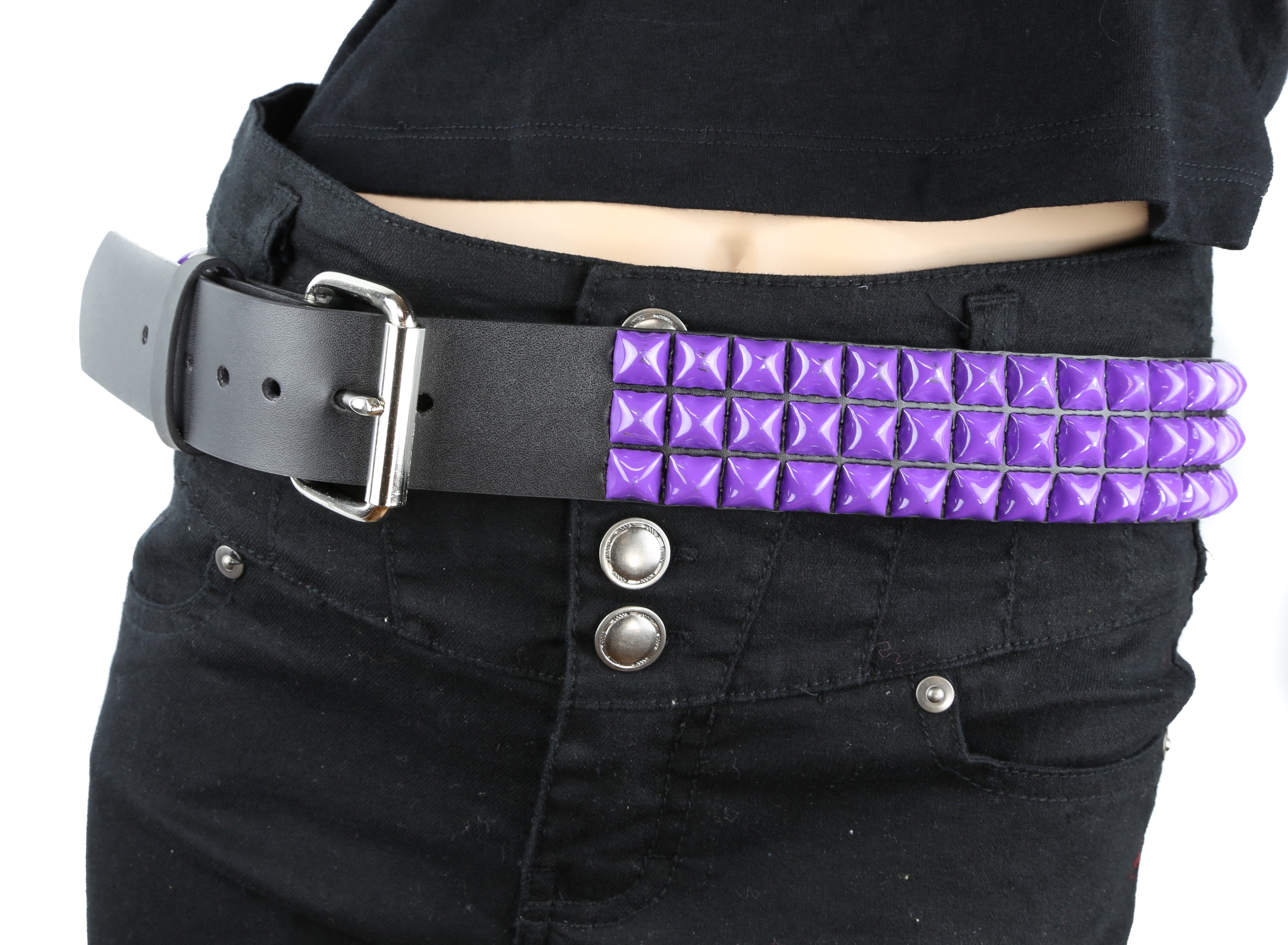BT104-PR PURPLE PYRAMID STUDDED BELT, 1 3/4" WIDE
