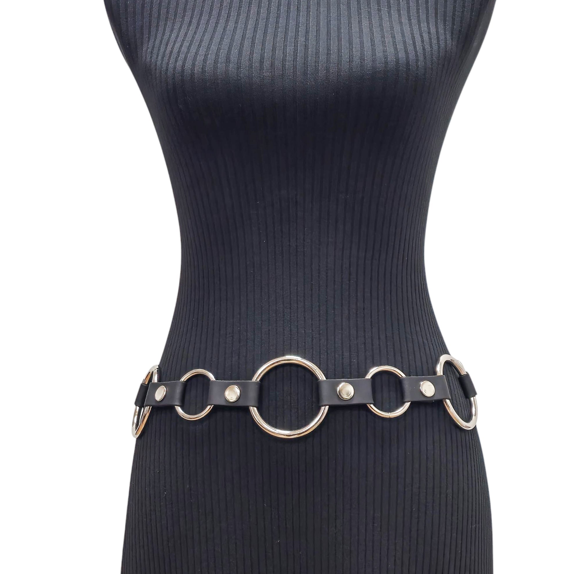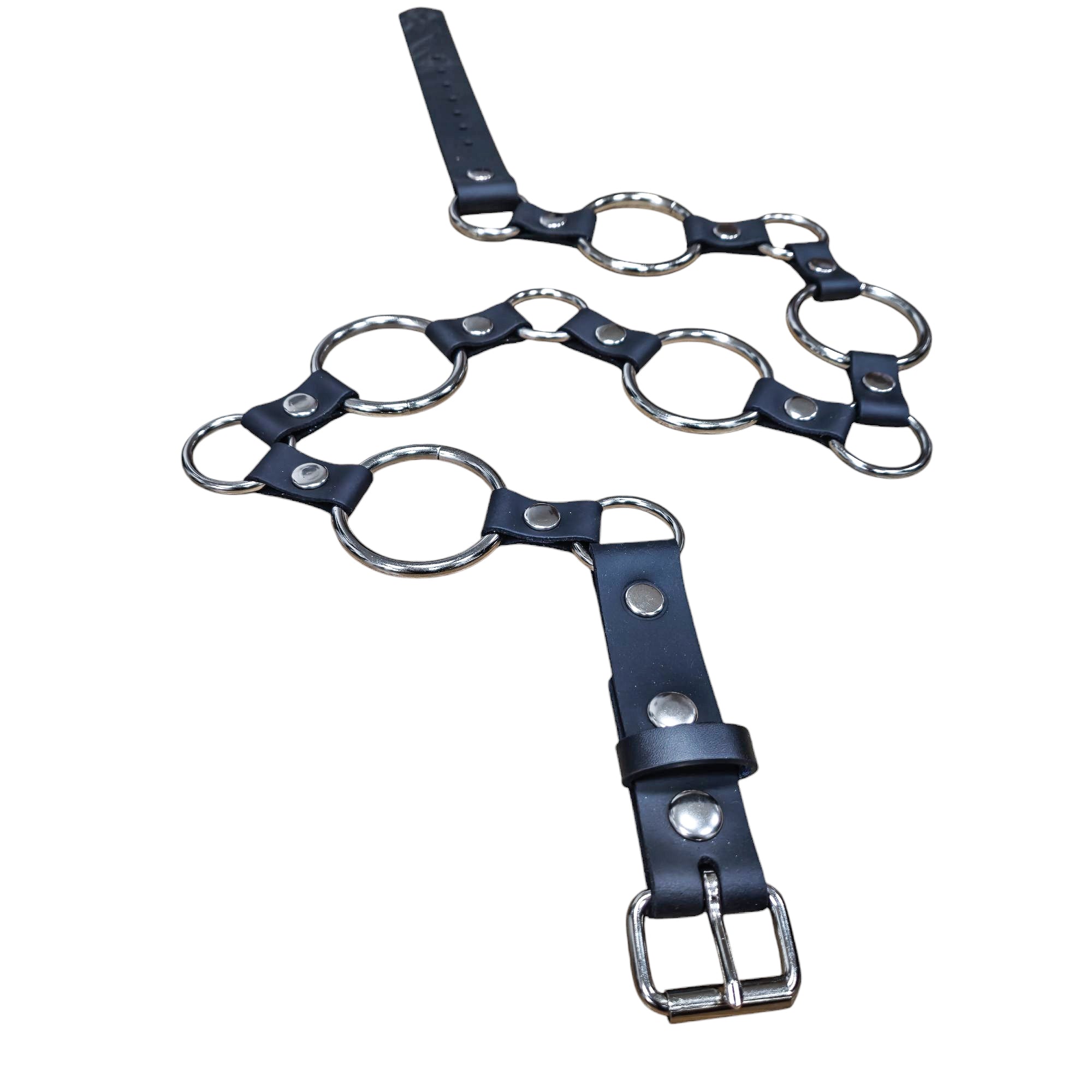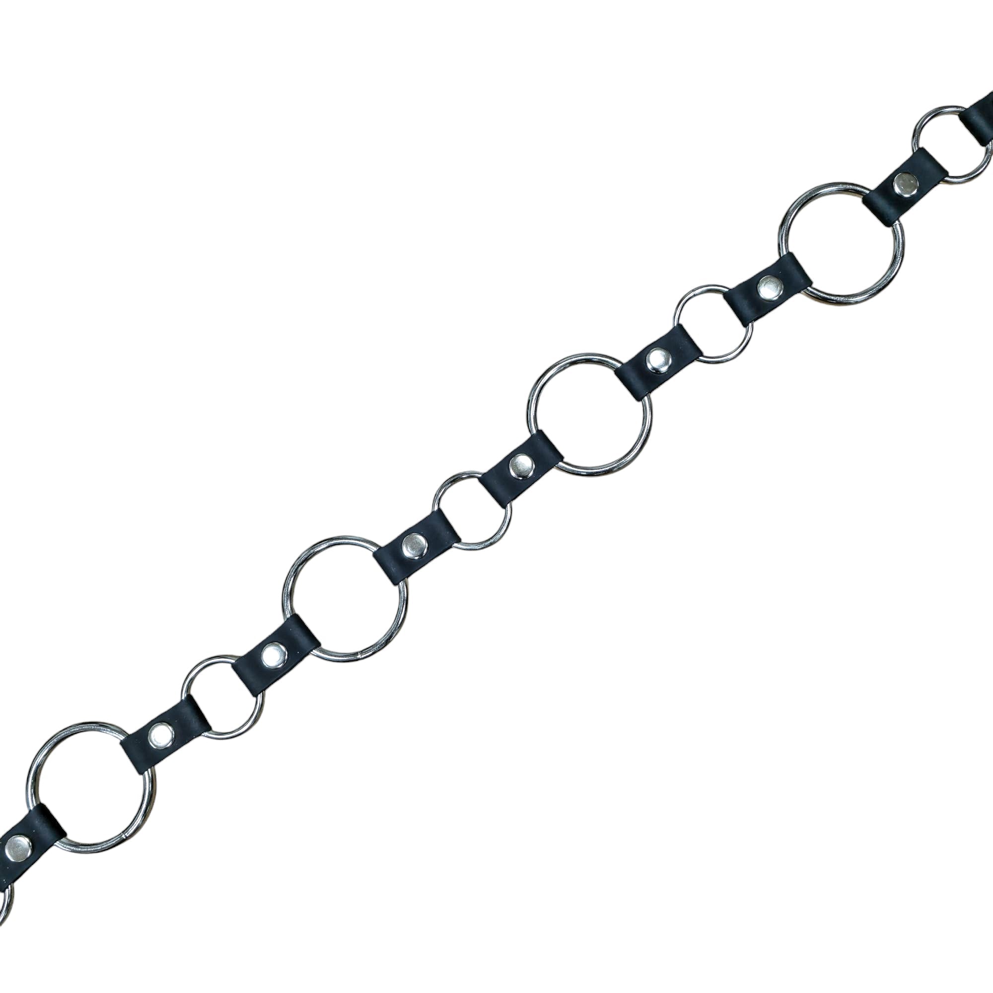 BLACK LEATHER 1 1/4" AND 2" NICKEL RING LINK BELT GENUINE LEATHER LINKS ROLLER BUCKLE Read more