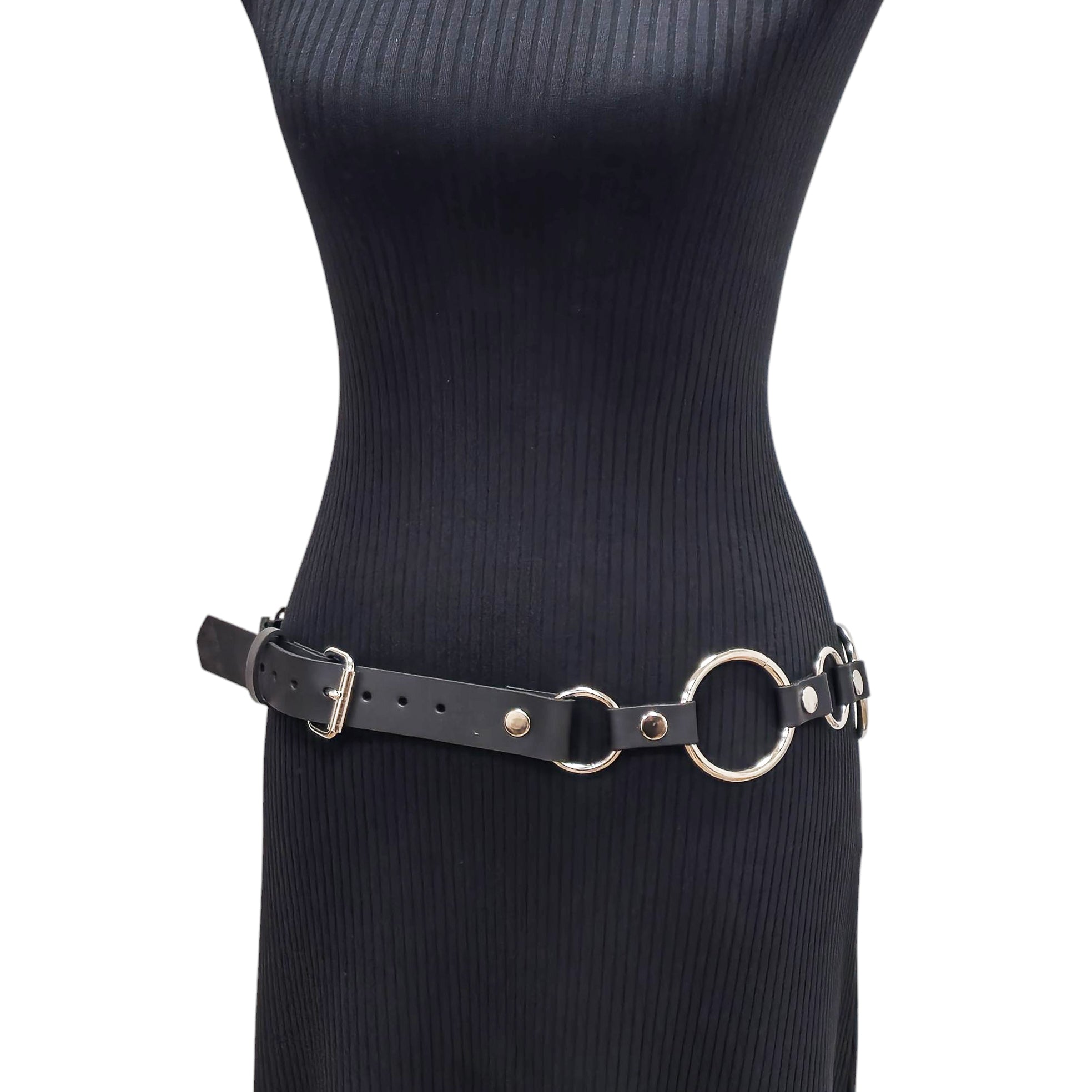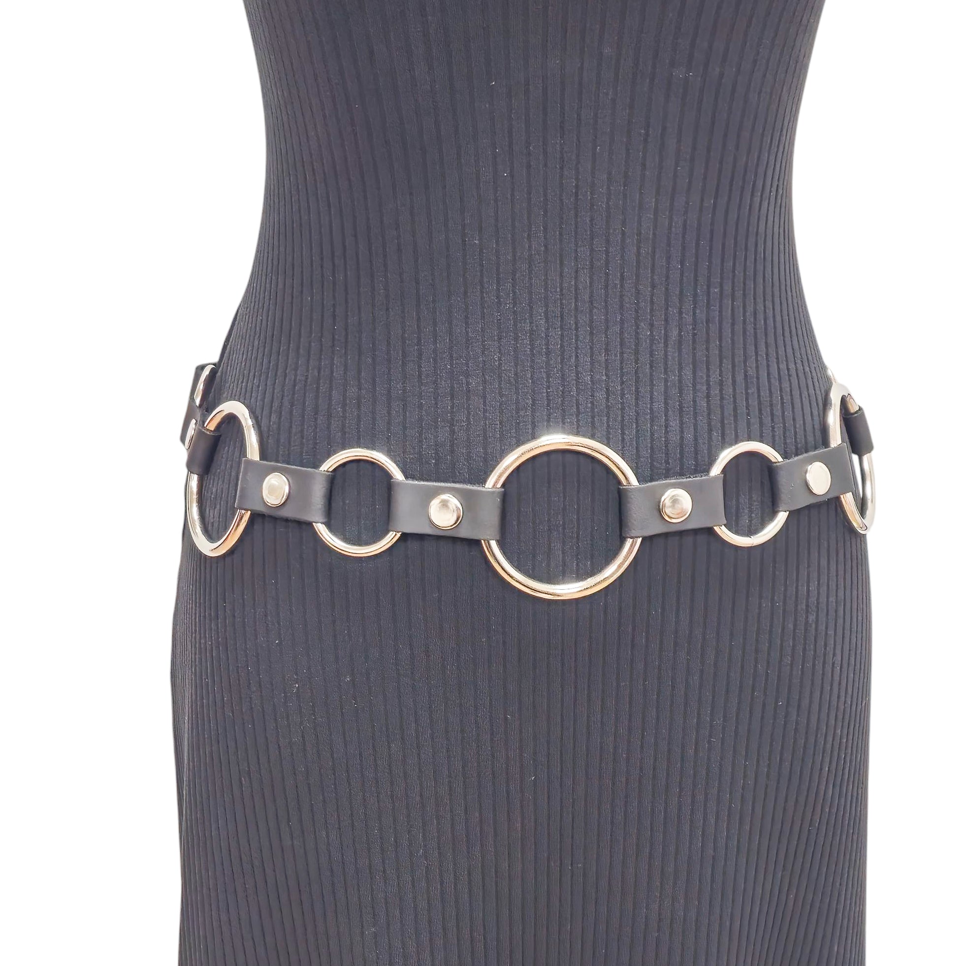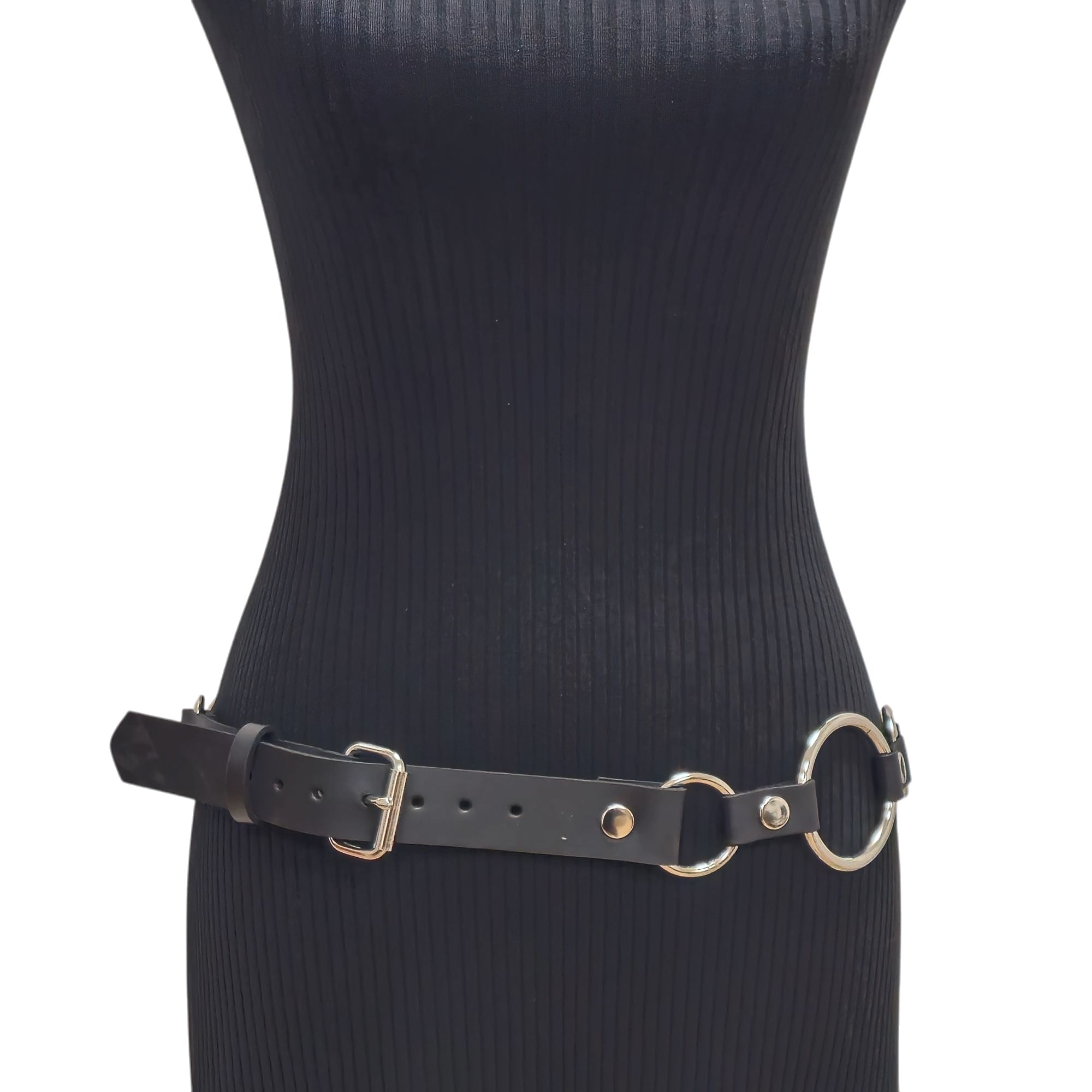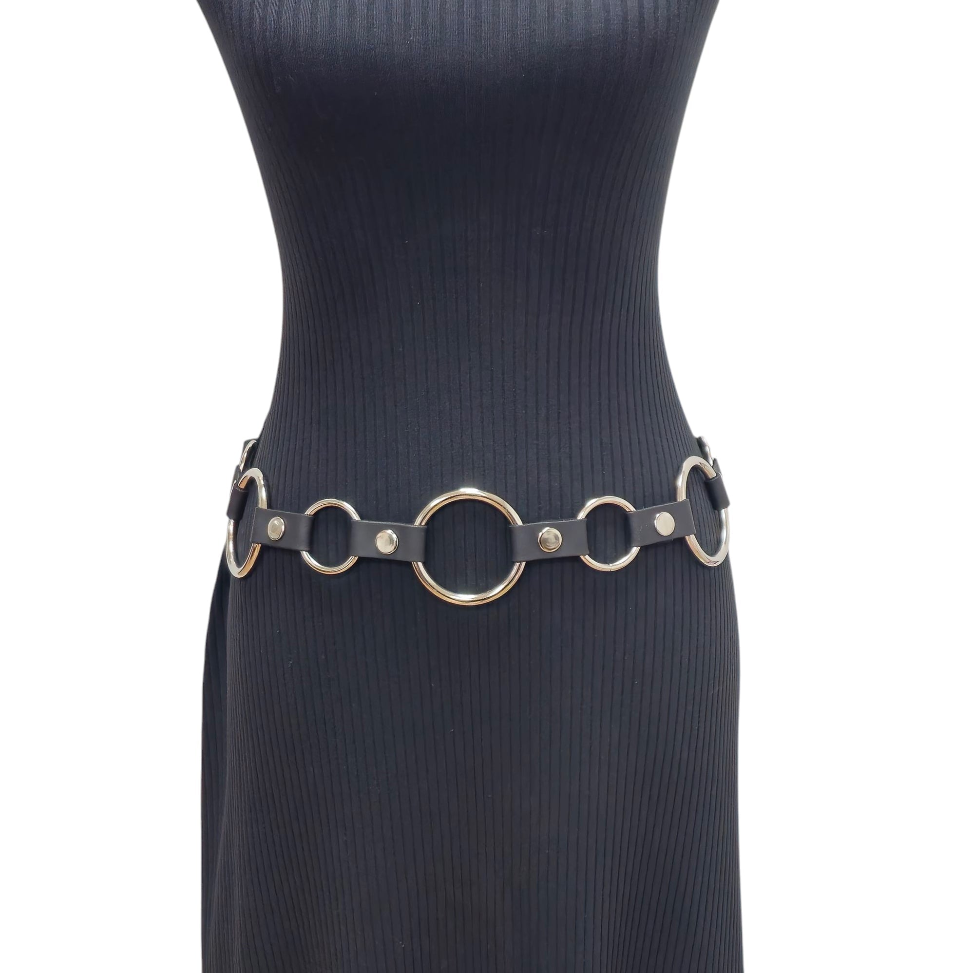 BLACK LEATHER 1 1/4" AND 2" NICKEL RING LINK BELT GENUINE LEATHER LINKS ROLLER BUCKLE Read more