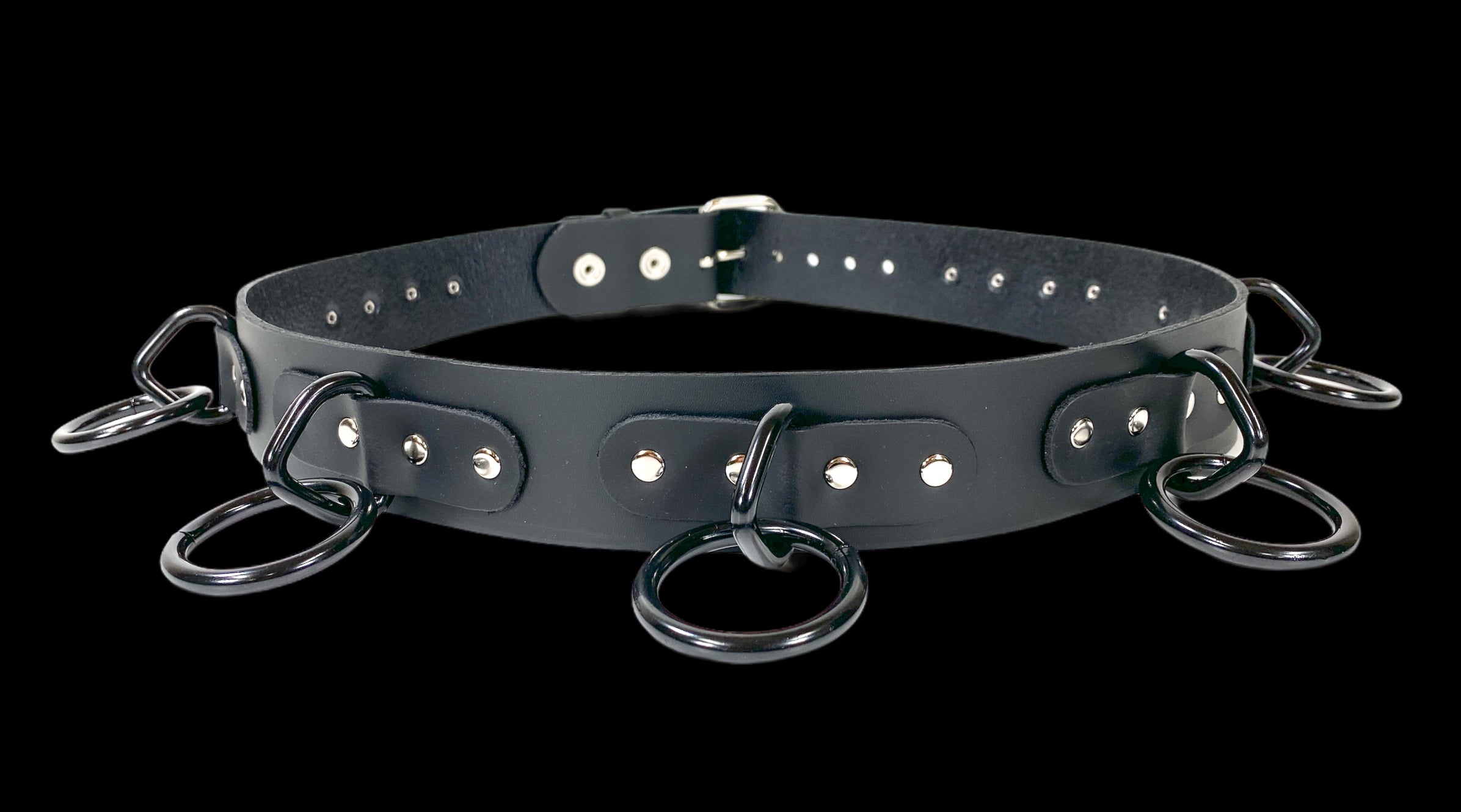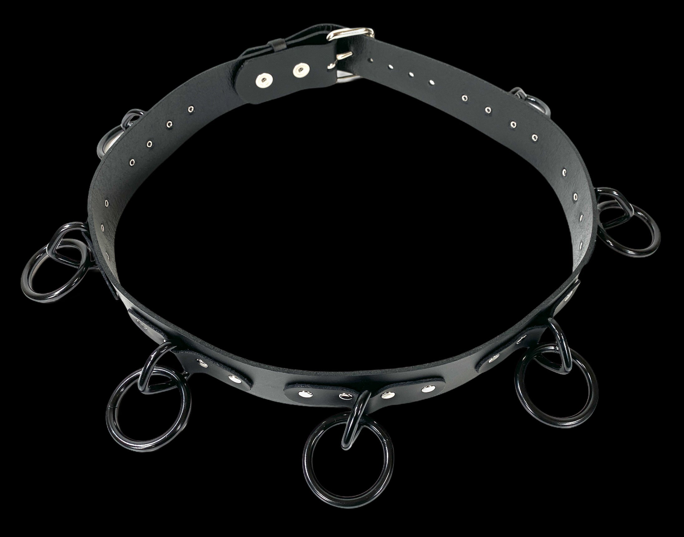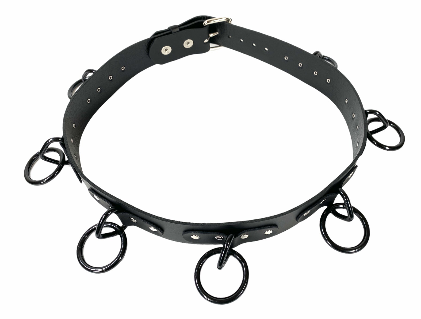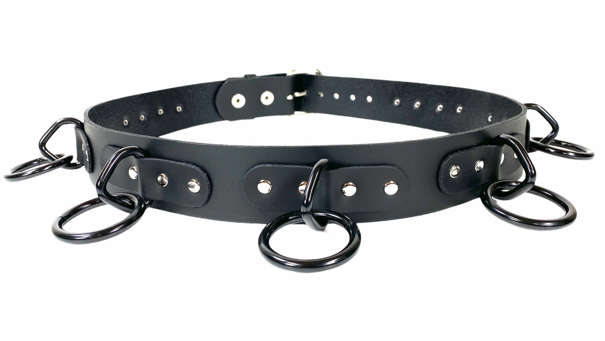 BLUE LEATHER BONDAGE BELT, LARGE BLACK LOOPS & RINGS, 1 3/4" WIDE Read more