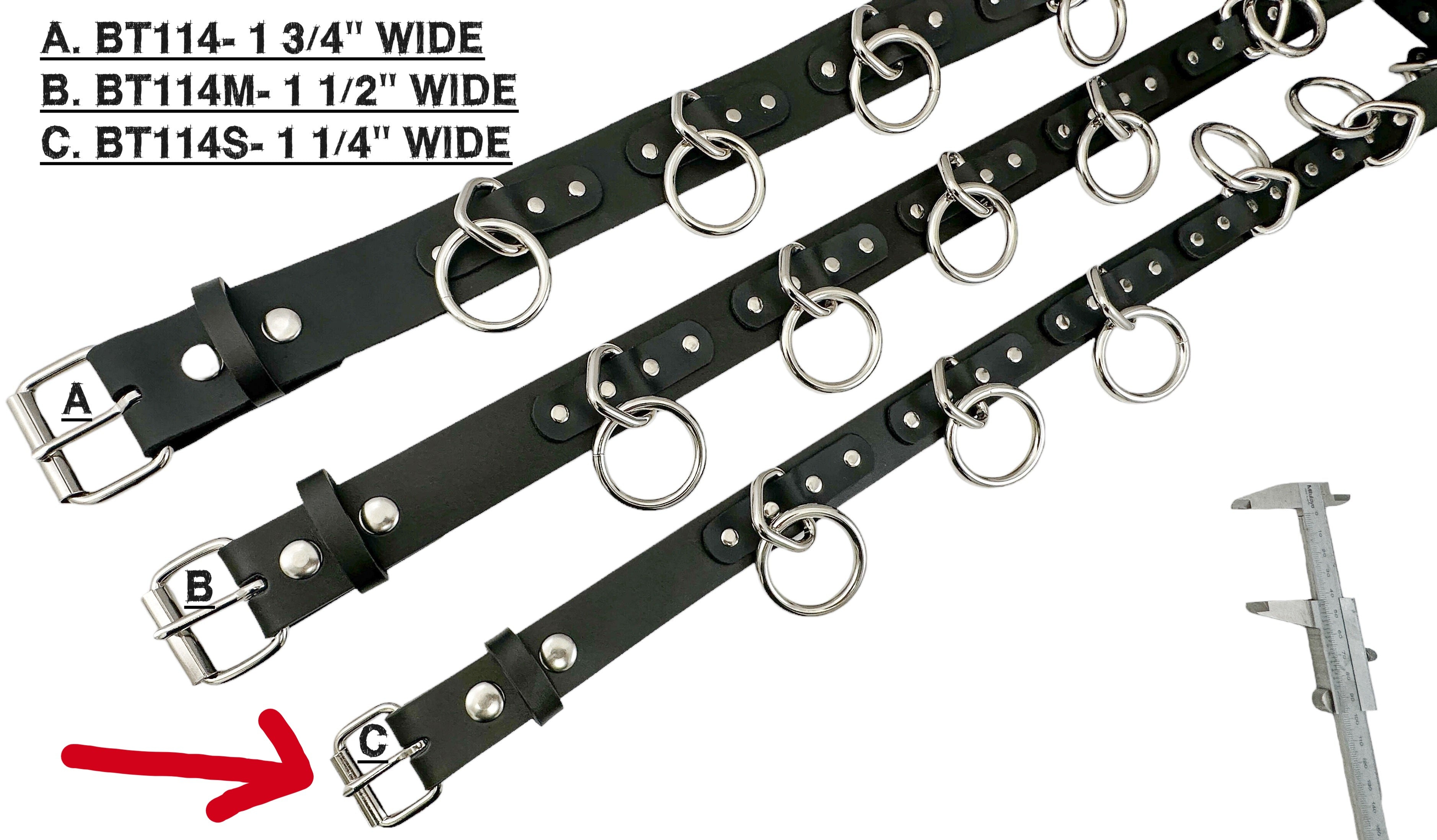 BT114S- NEW 1 1/4" WIDE LARGE BONDAGE 1 1/2" RING BELT