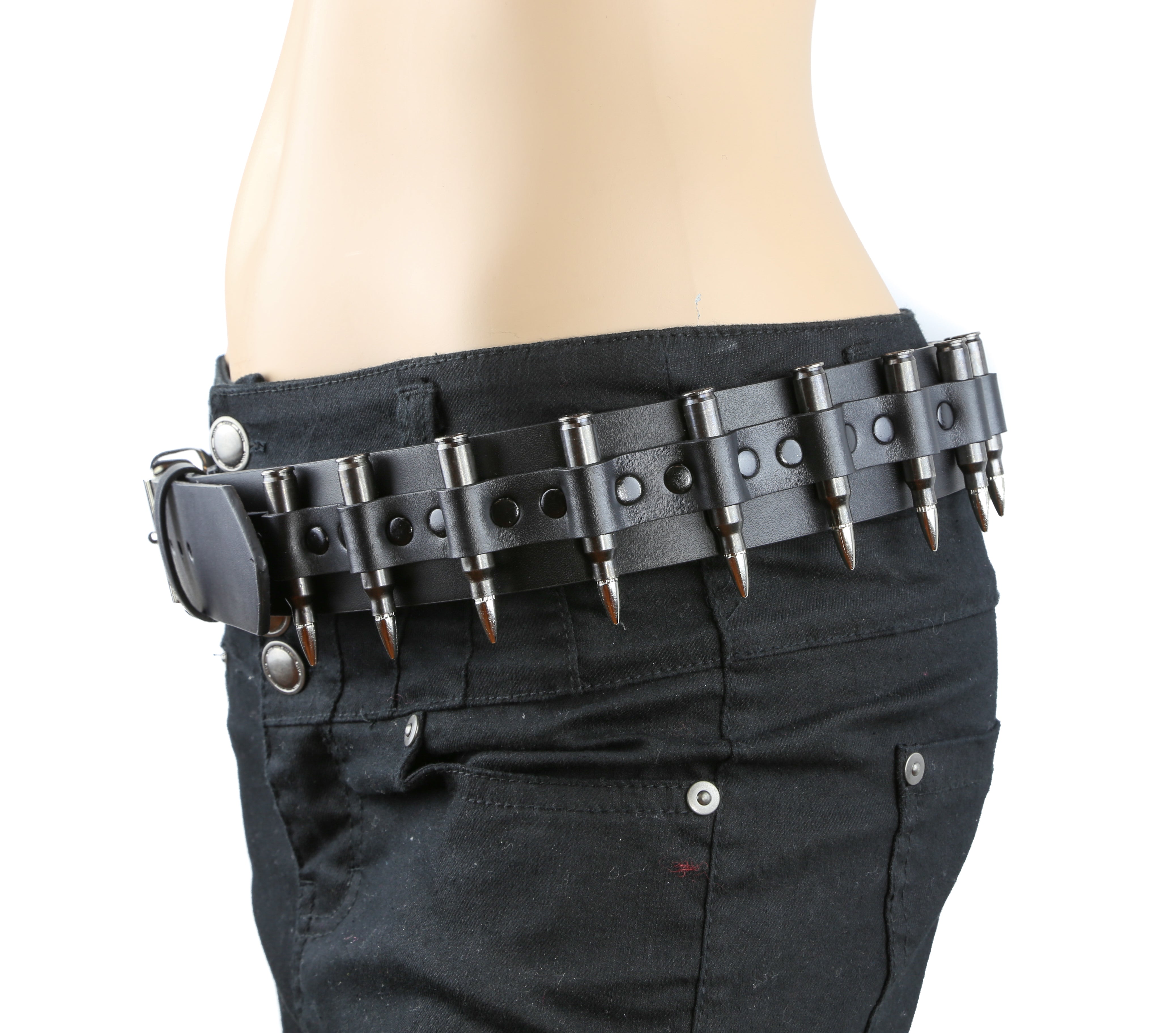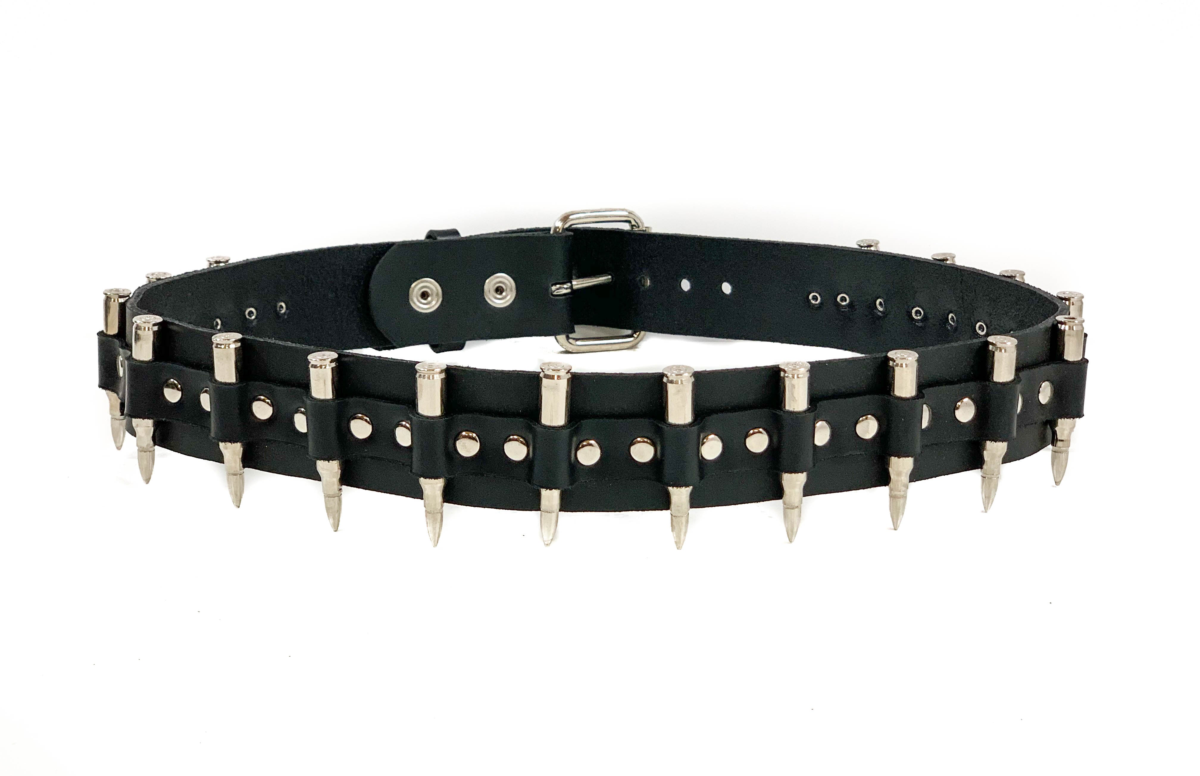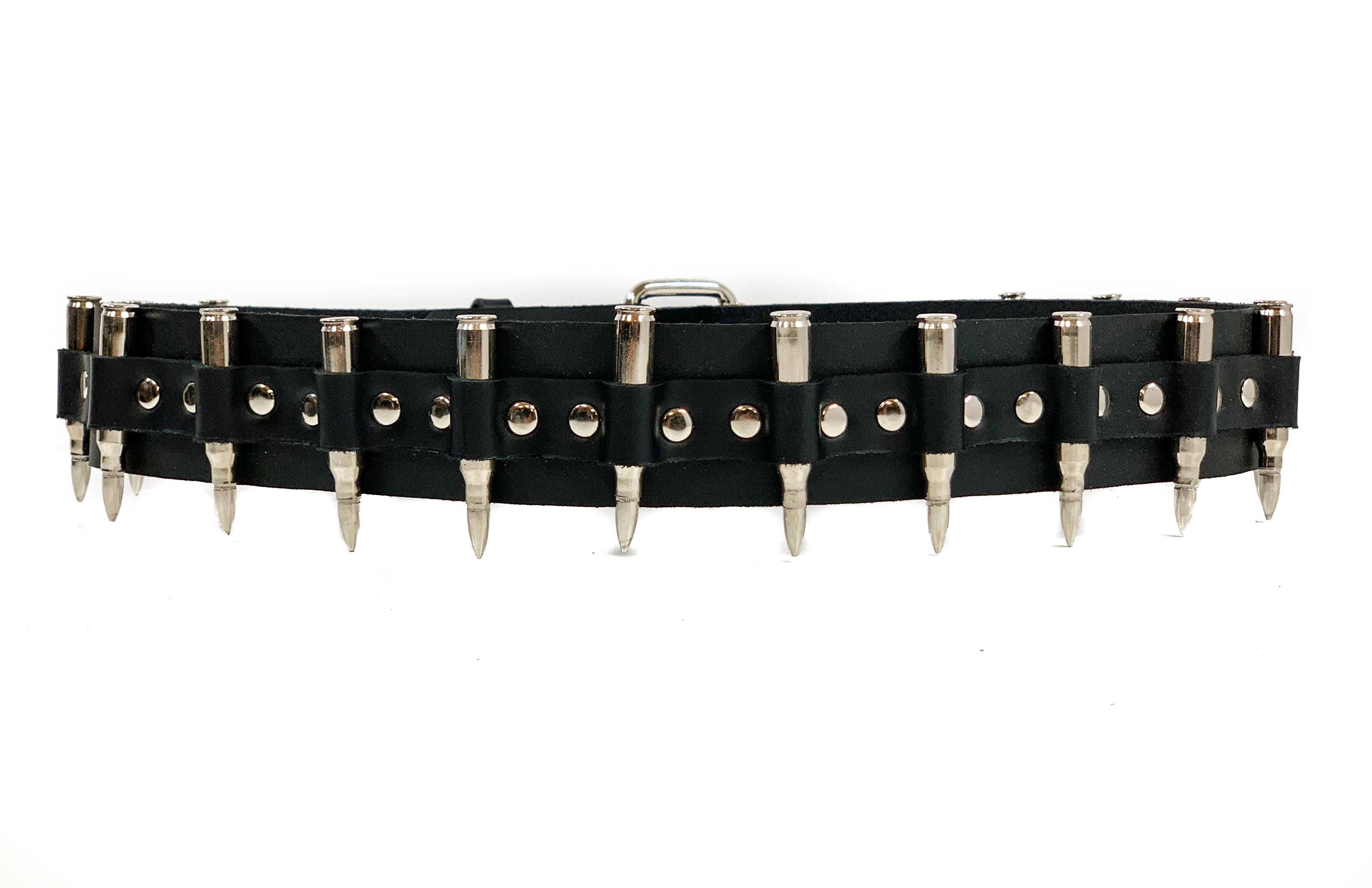 BLACK GENUINE COWHIDE LEATHER BELT 1 3/4" WIDE .223 CALIBAR 2.23" LONG BRASS SHELL -NICKLE PLATED REAL BULLETS COPPER TIPS-PLATED... Read more