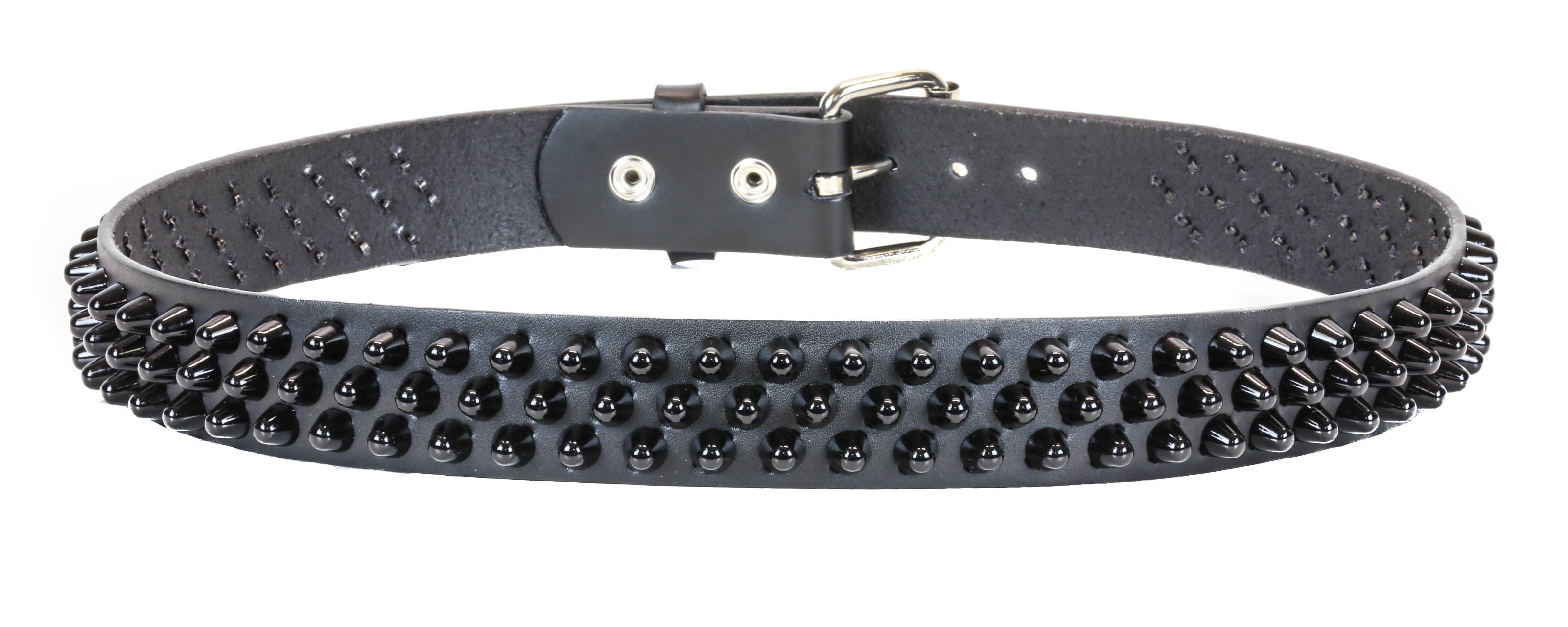 BLACK LEATHER BELT, 3 ROW BLACK CONEHEAD STUDS, 1 1/2" WIDE Read more