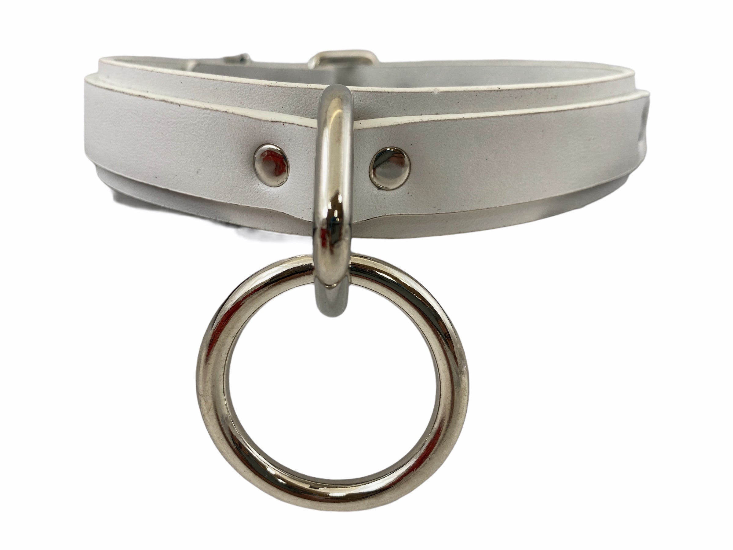 1 1/8" WHITE VEGAN LEATHER CHOKER WITH ONE 1 1/4" LOOP & RING Read more