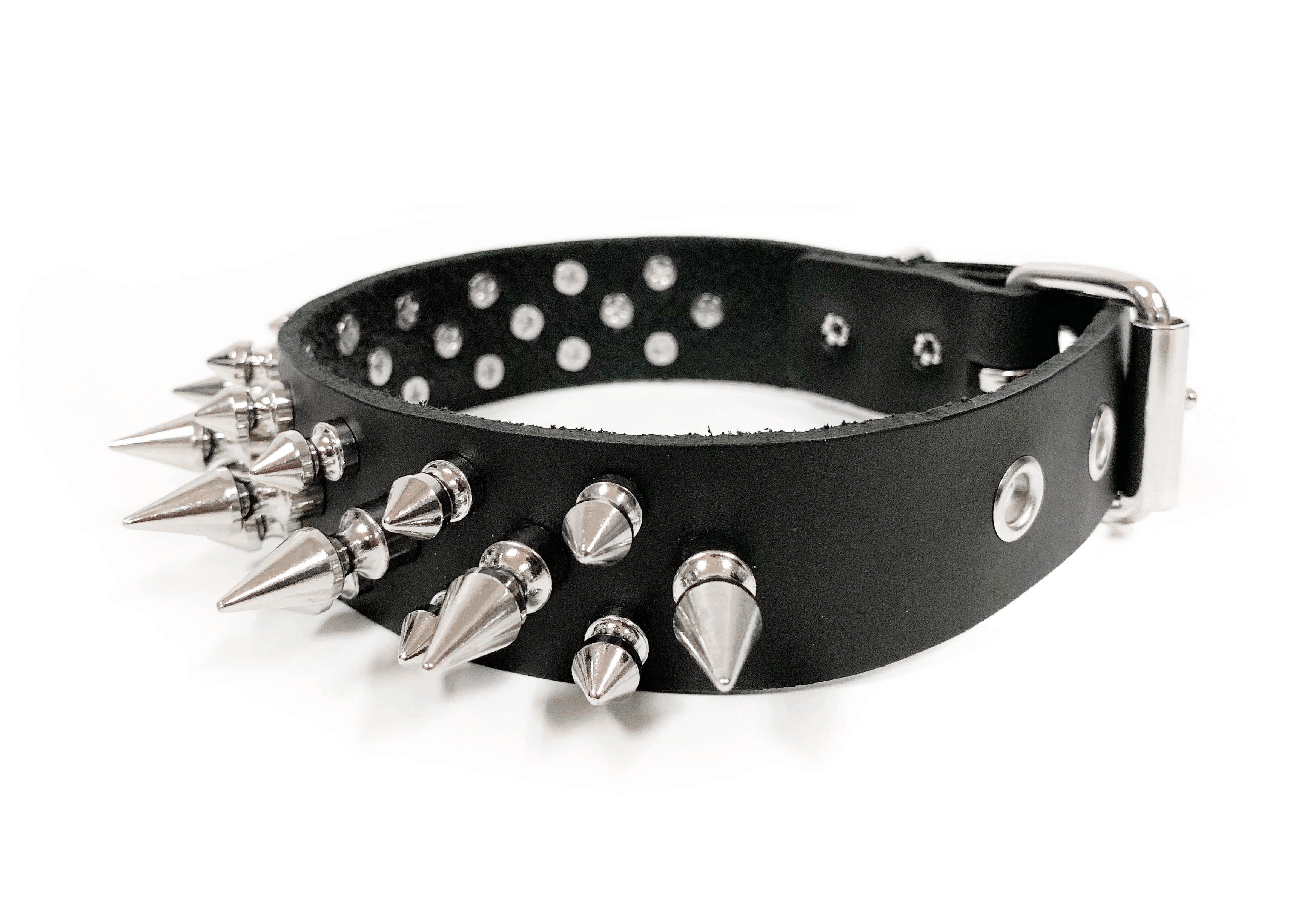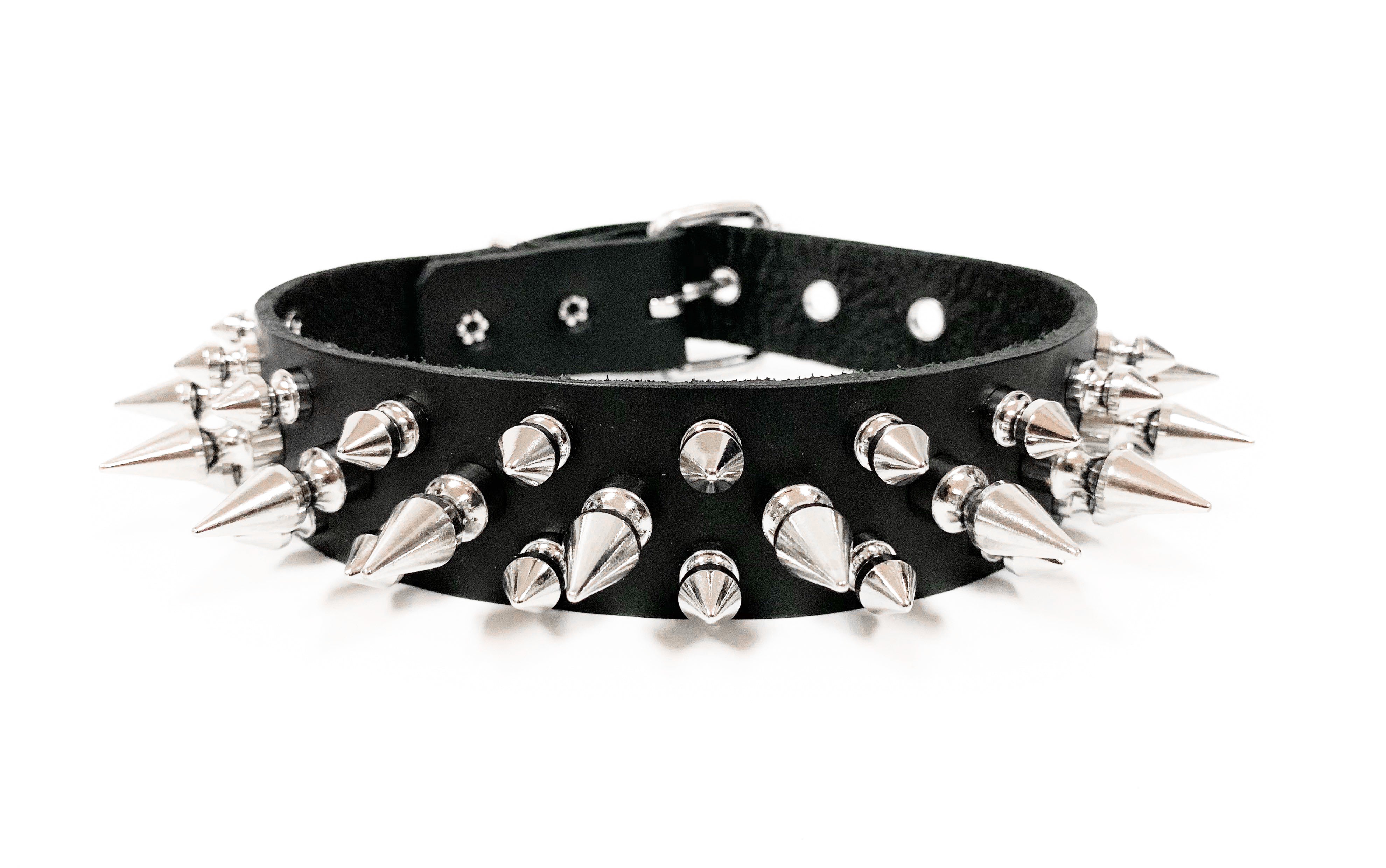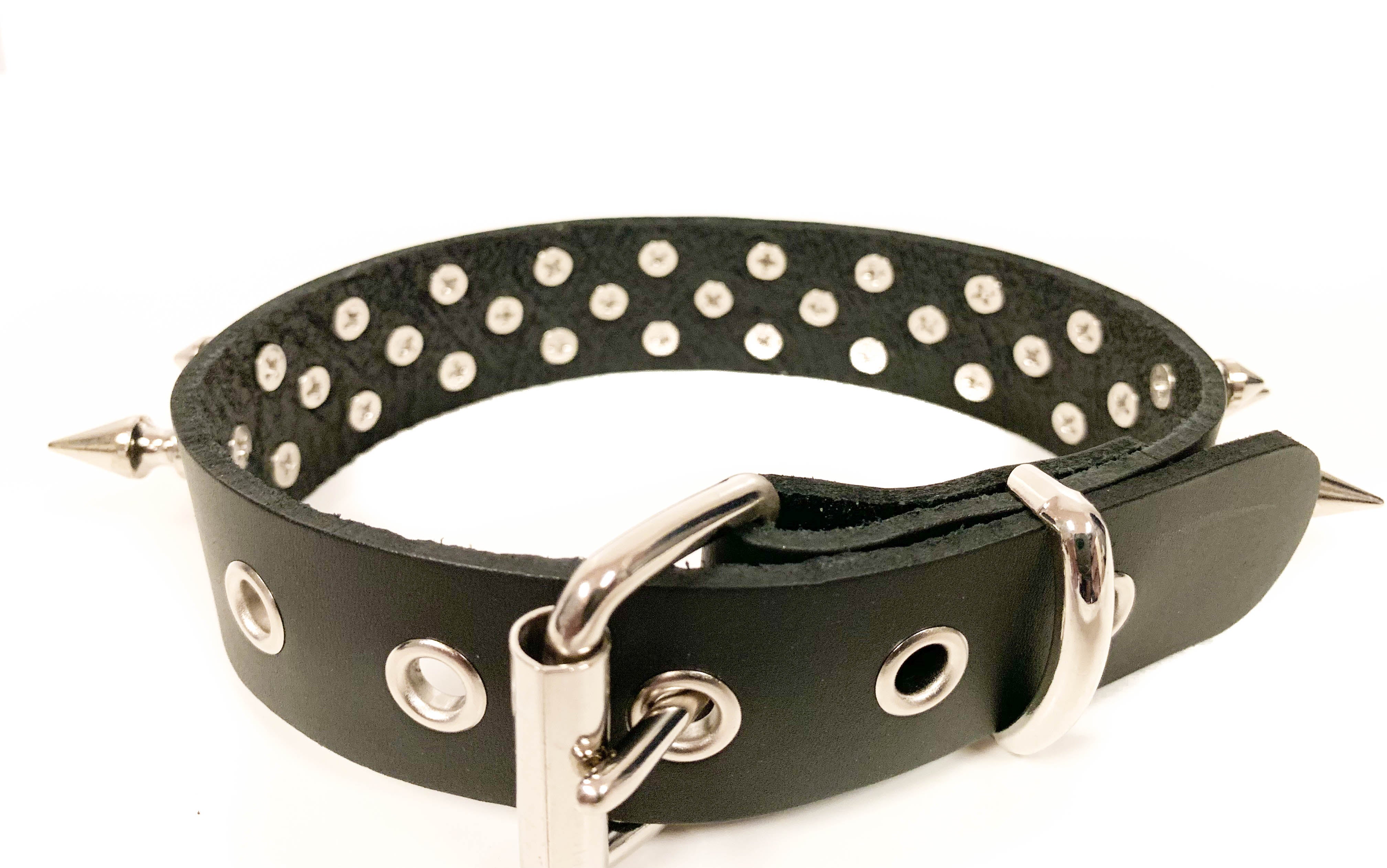 1 1/8" BLACK LEATHER CHOKER WITH 1/2" & 1" SPIKES Read more