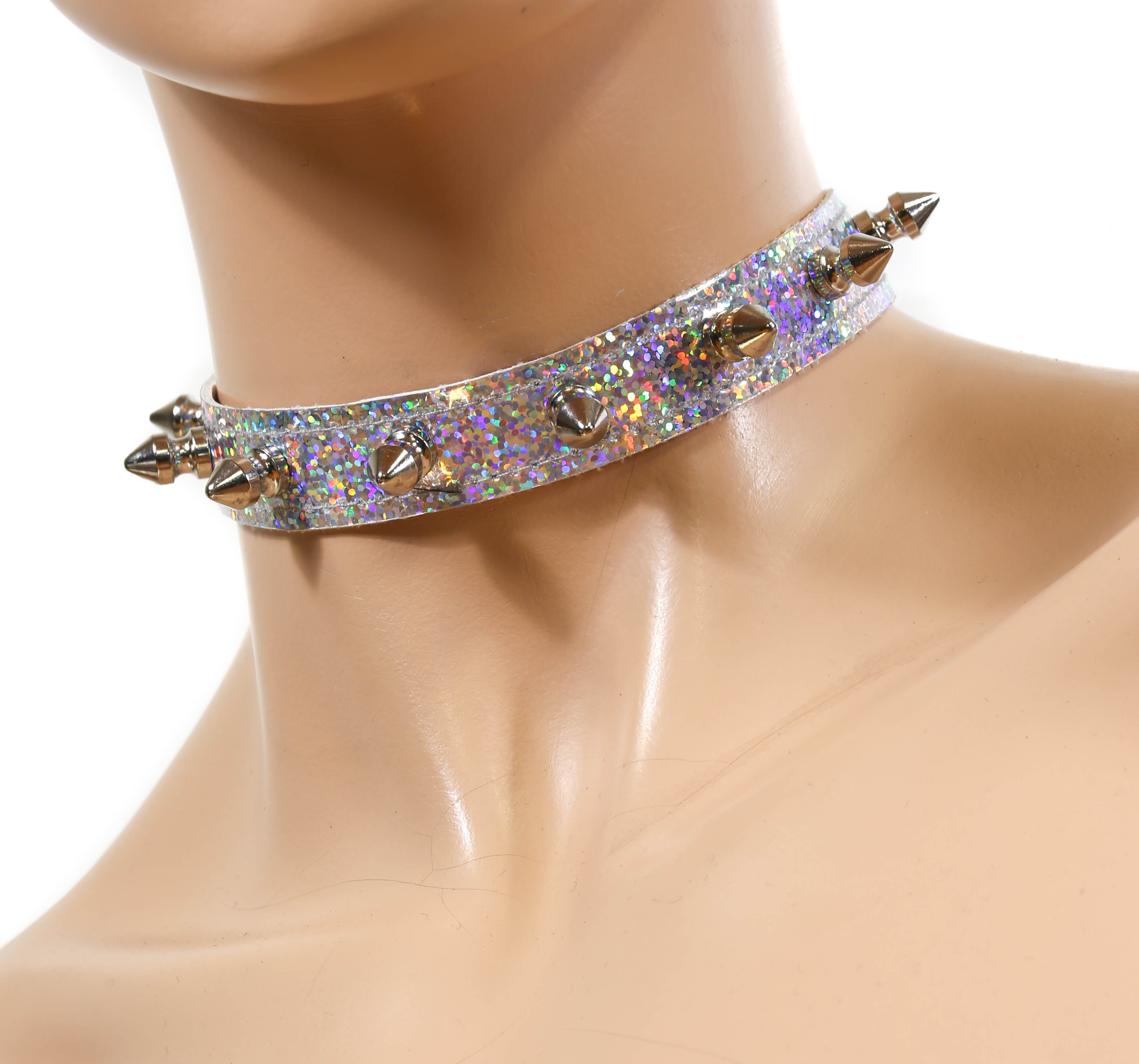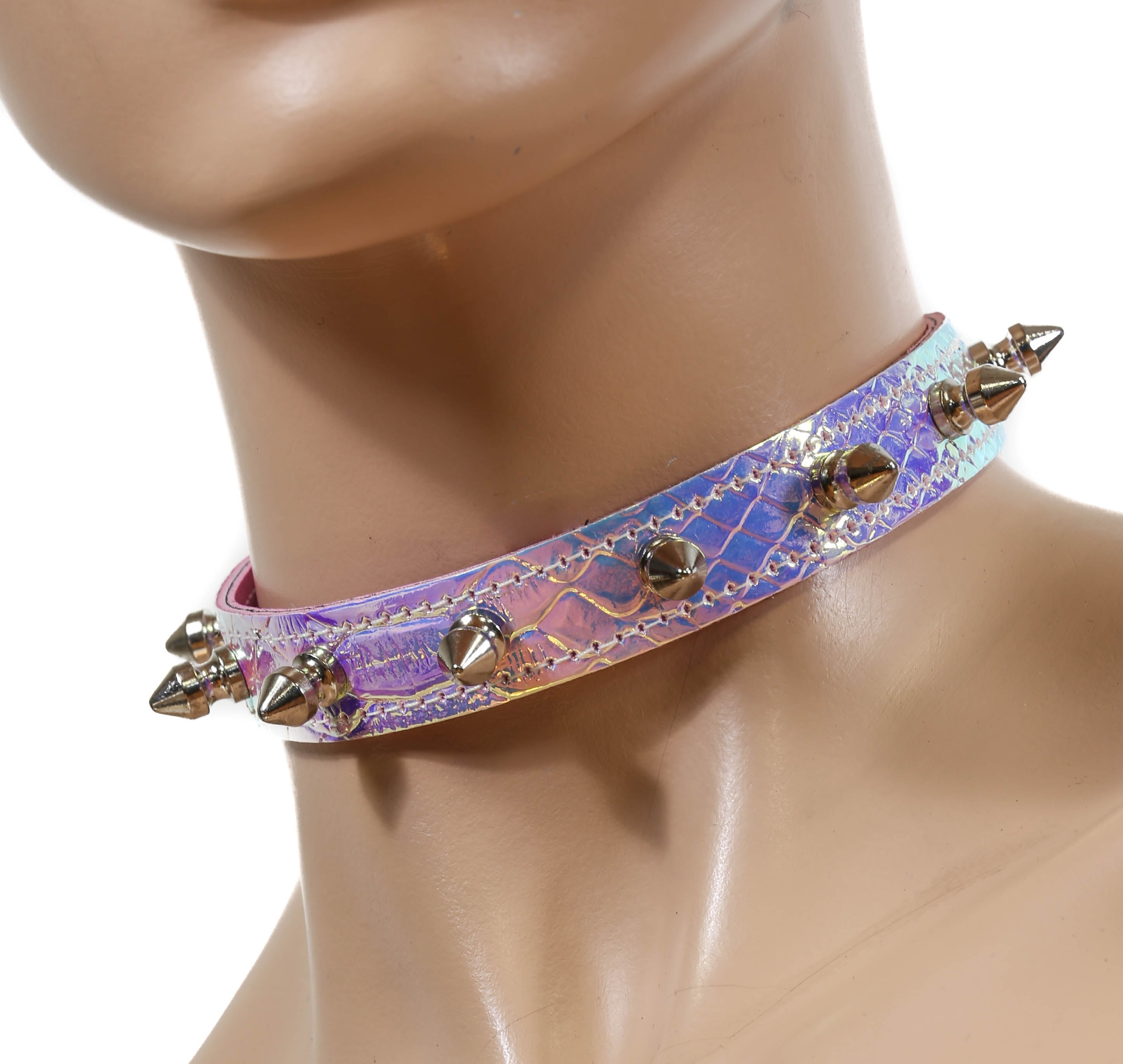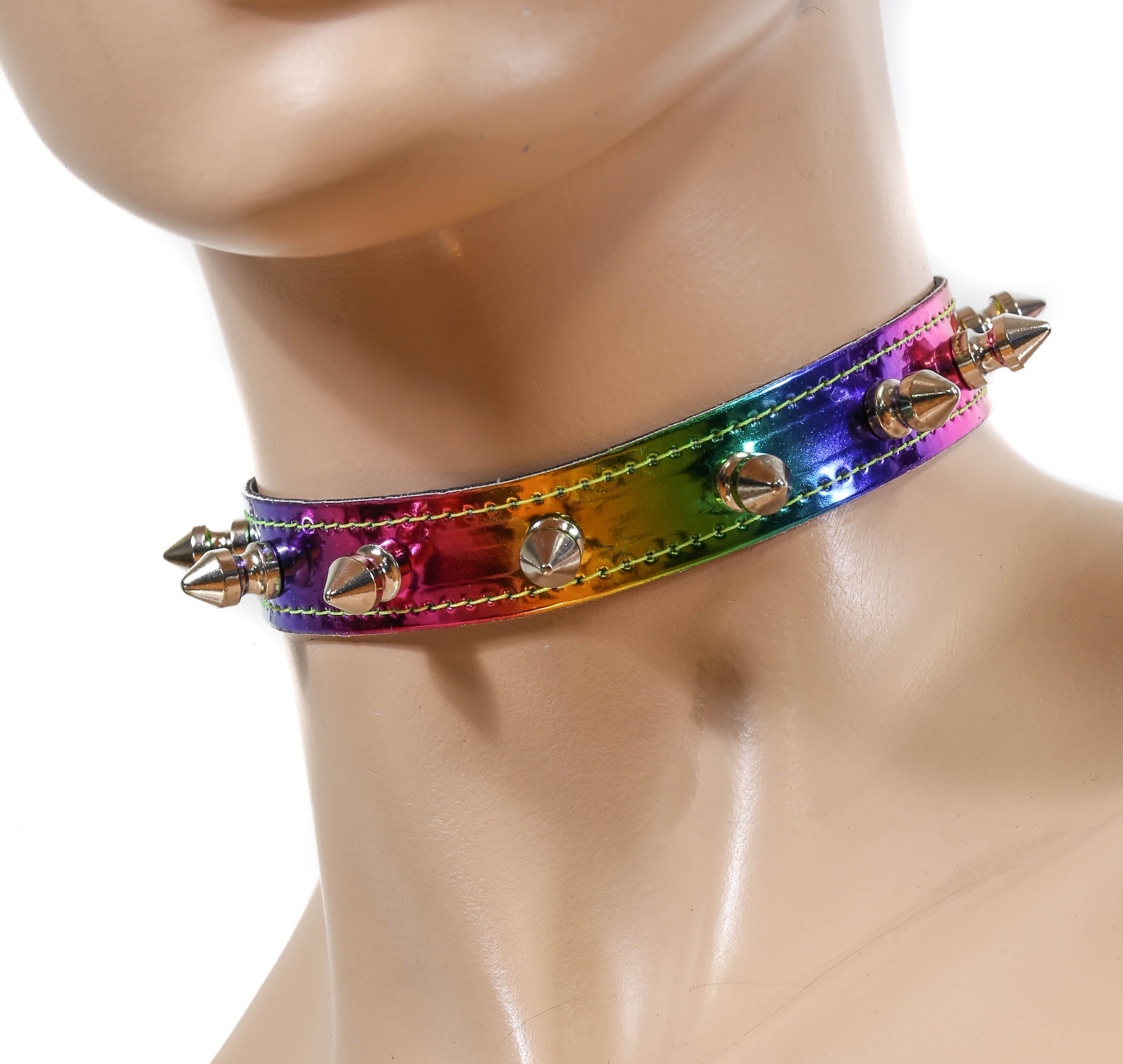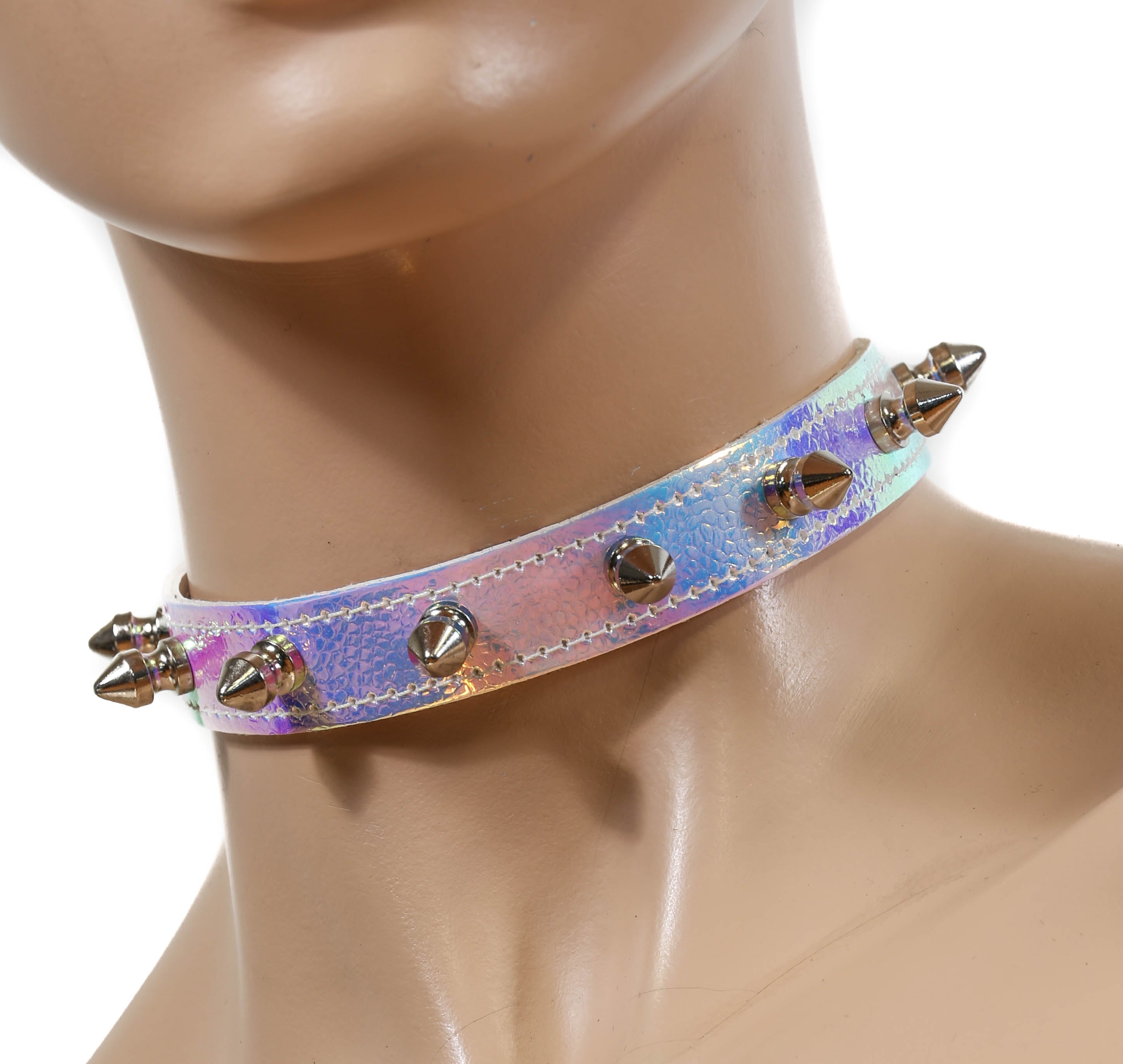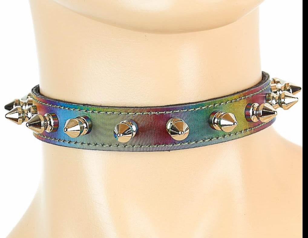 CK134RAINBOW HOLOGRAPHIC SPIKE CHOKER
