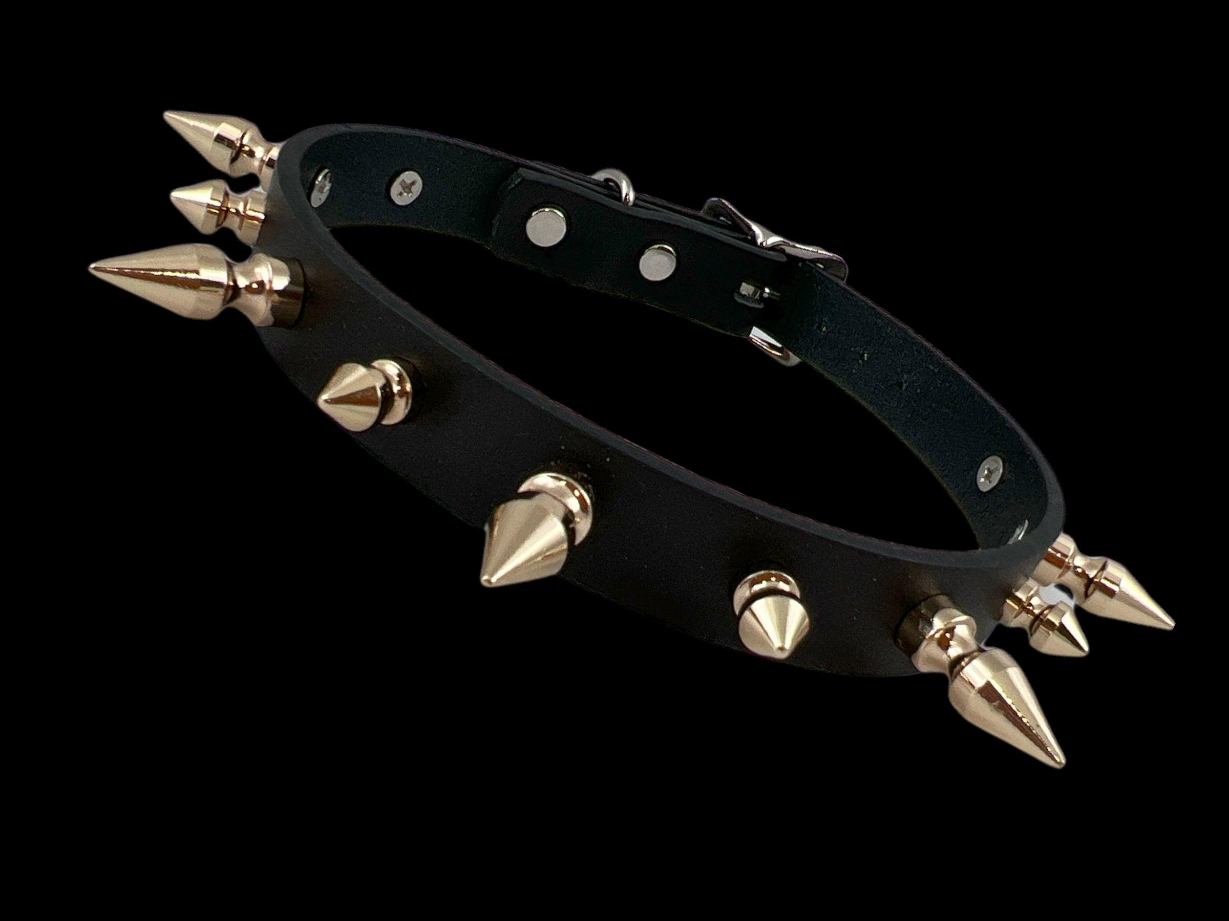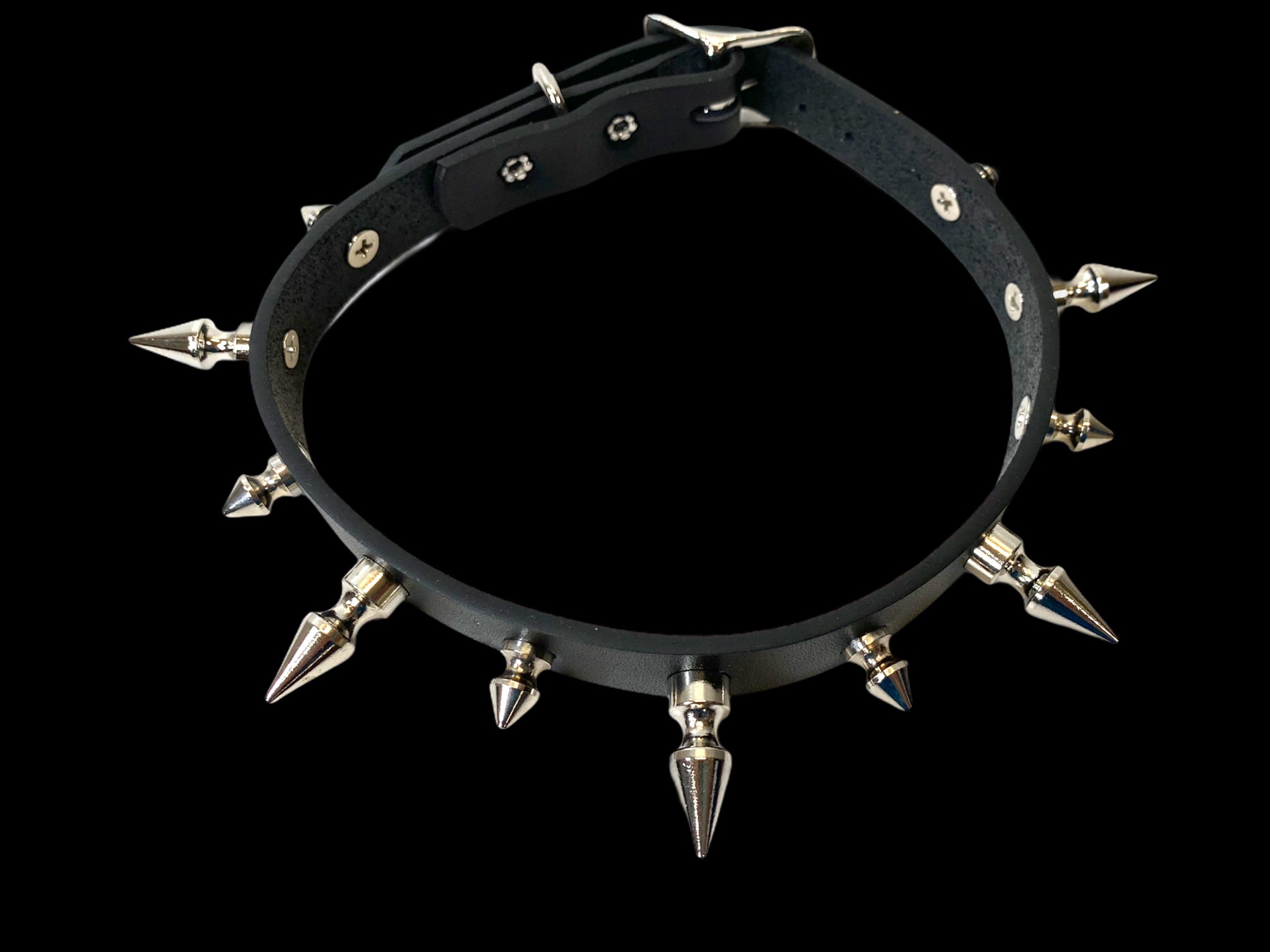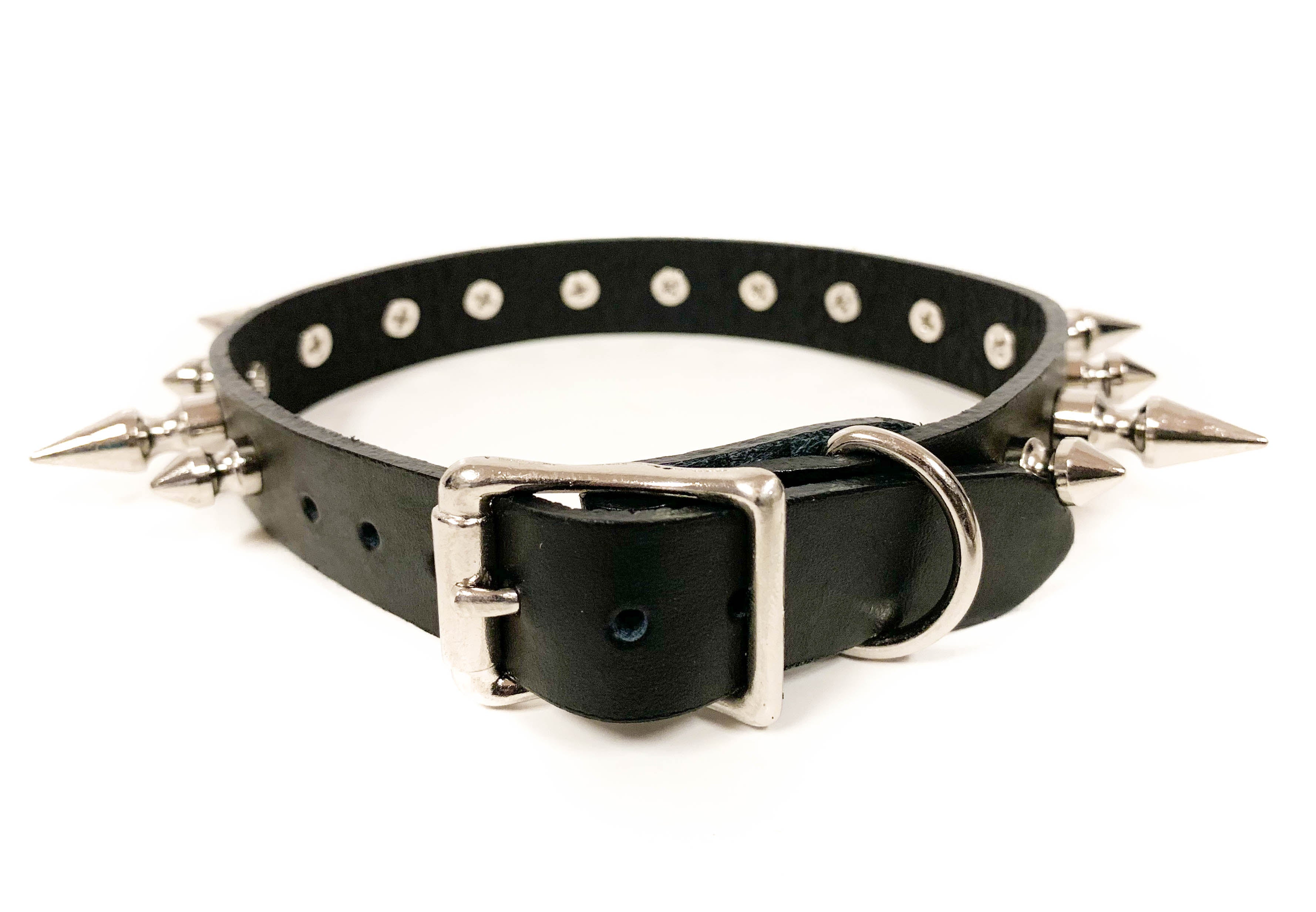 CK136 3/4" BLACK LEATHER CHOKER WITH 1/2" AND 1" SPIKES