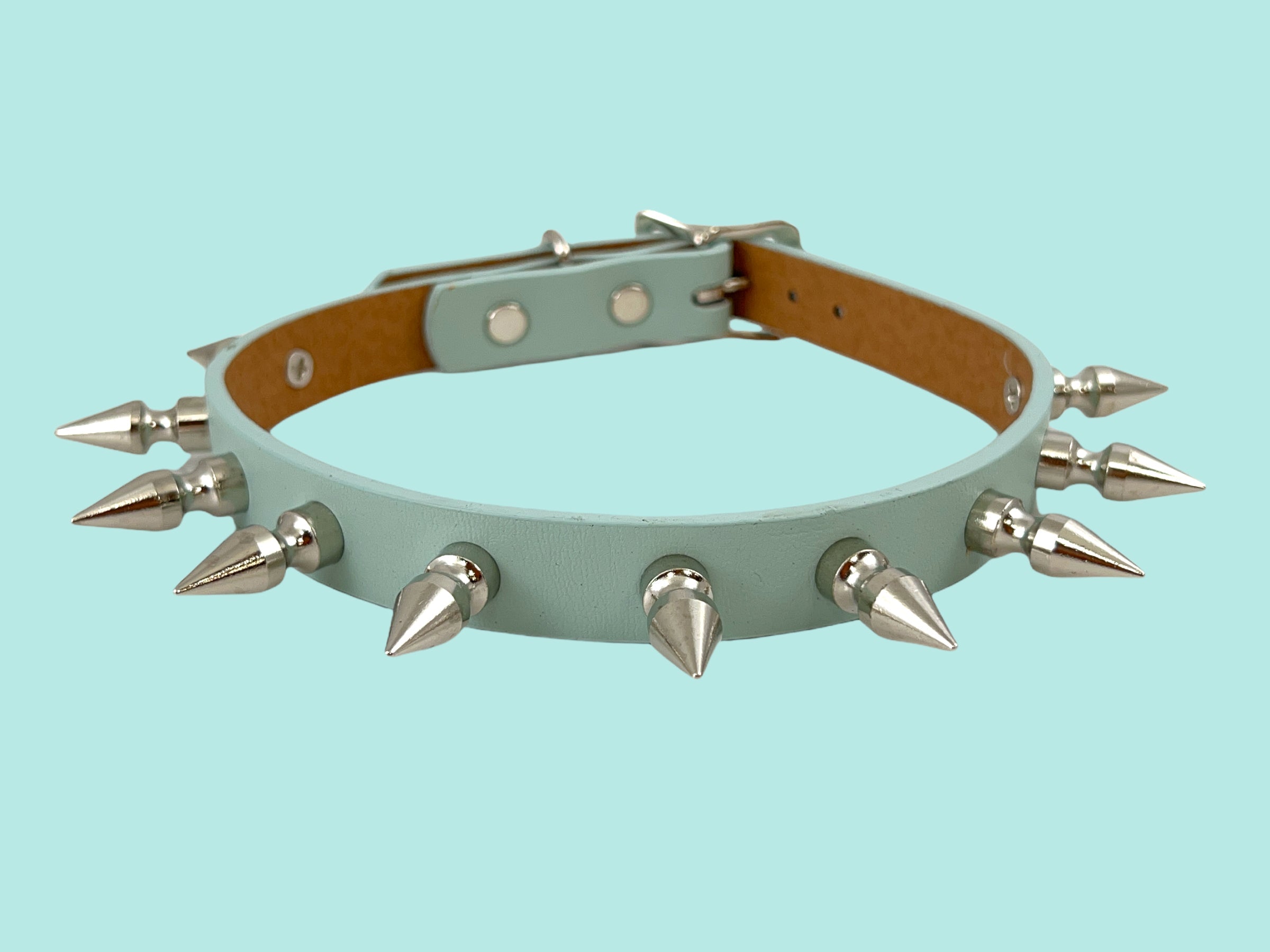 3/4" WIDE VEGAN 1" SPIKE CHOKER MATT BASE 11PCS 1" SPIKES BRASS BASE SILVER PLATED Read more