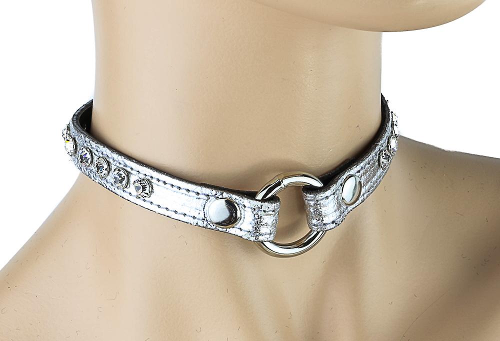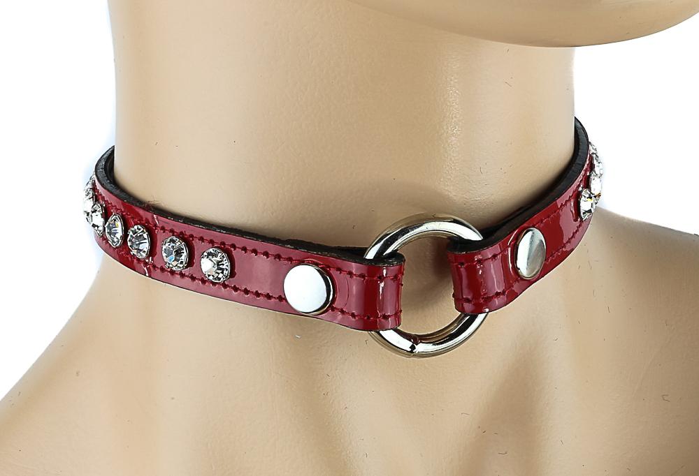 1/2" PATENT LEATHER CHOKER WITH ONE 3/4" -O- RING & RHINESTONES SWAROVOSKY RHINESTONE Read more