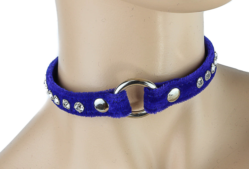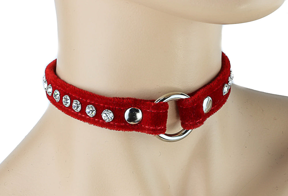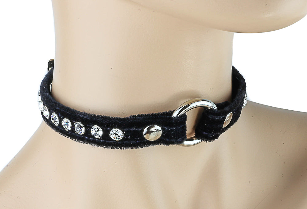 1/2" VELVET CHOKER WITH ONE 3/4" -O- RING AND RHINESTONES Swarovski Rhinestone Read more