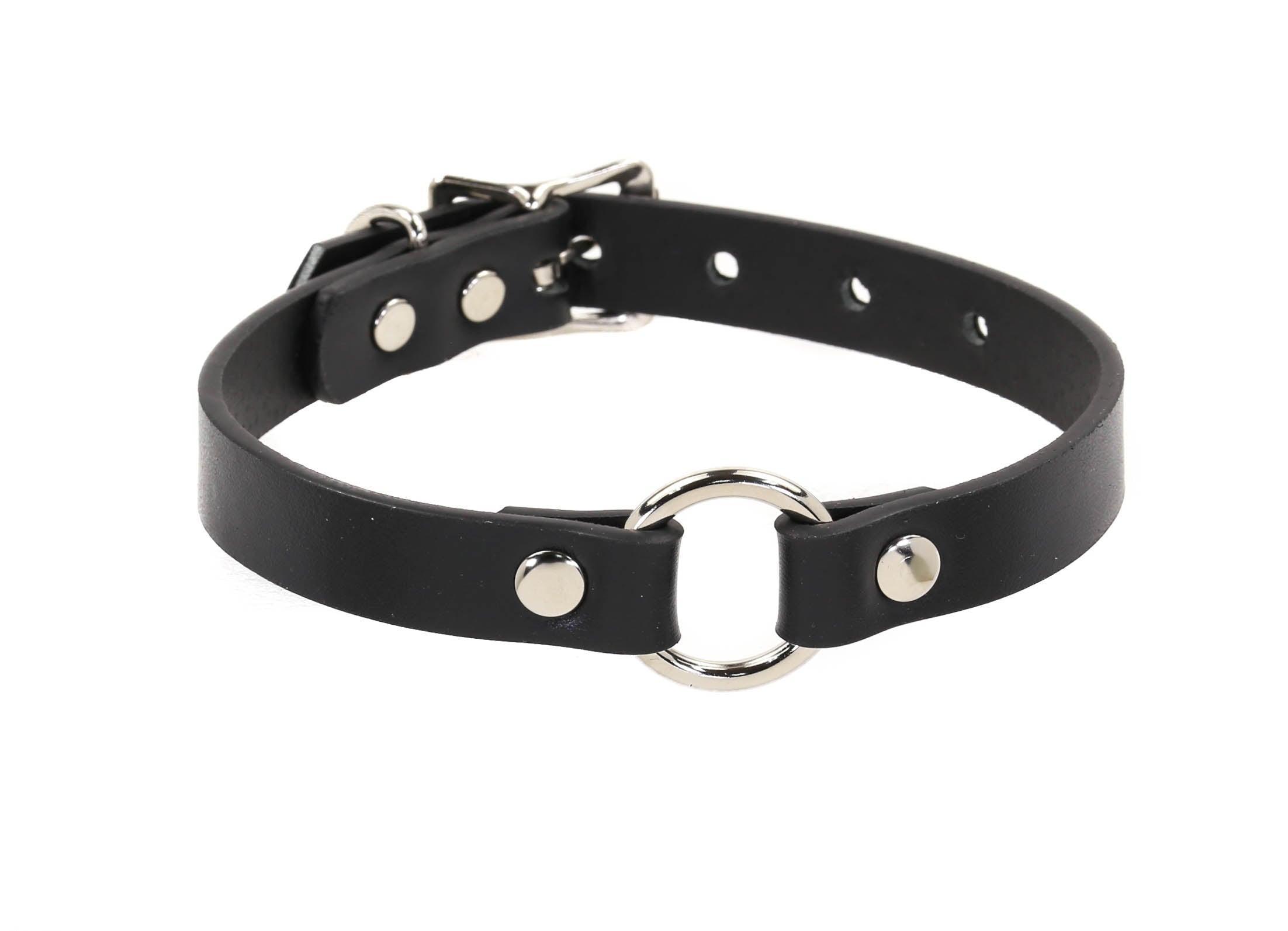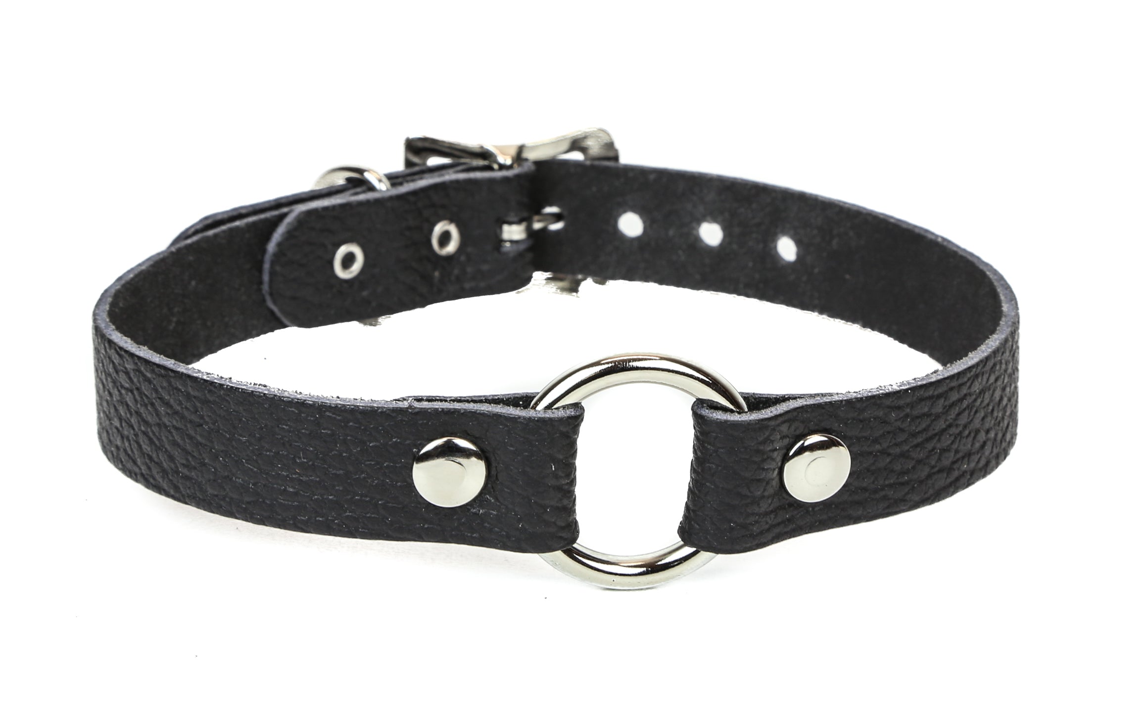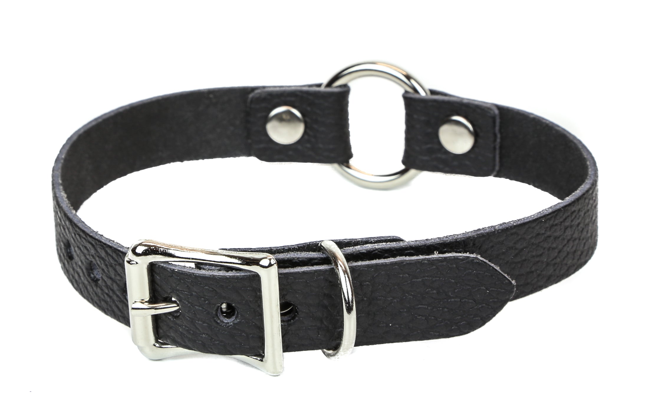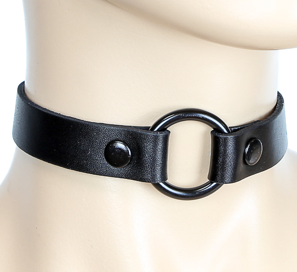 3/4" BLACK LEATHER CHOKER WITH ONE 1" -O- RING Read more