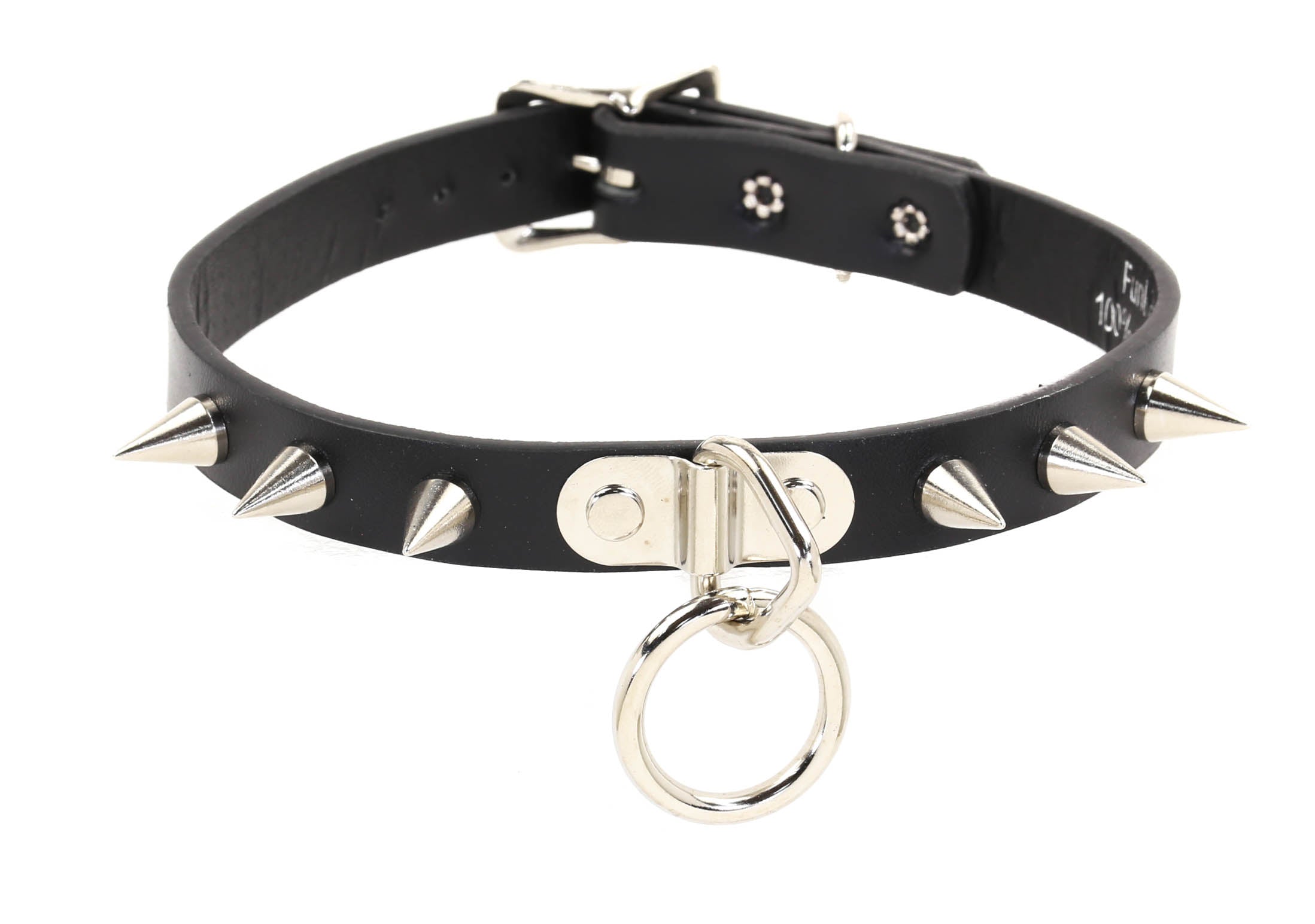 3/4" BLACK LEATHER CHOKER WITH SMALL CONE SPIKES AND 1" LOOP & RING Read more