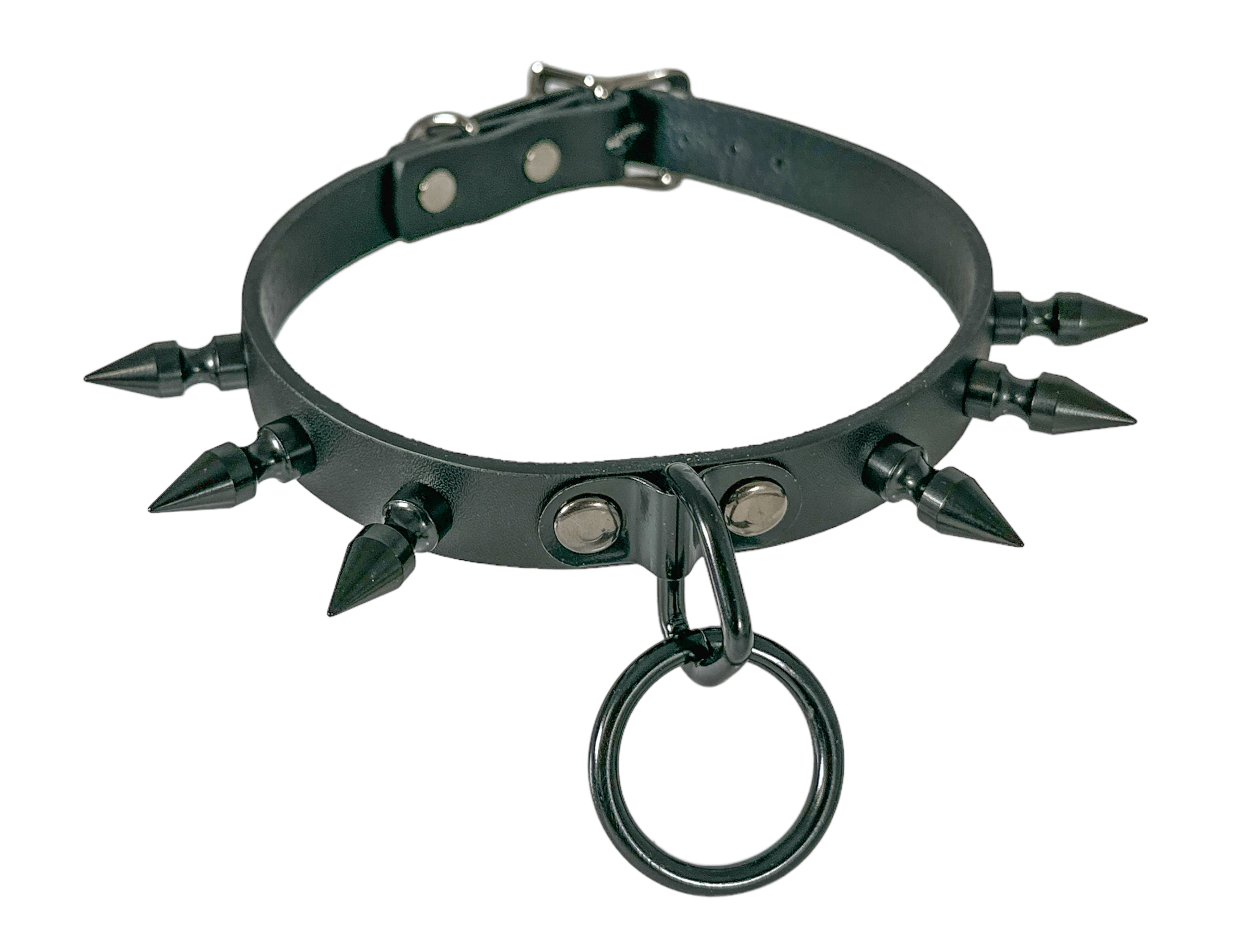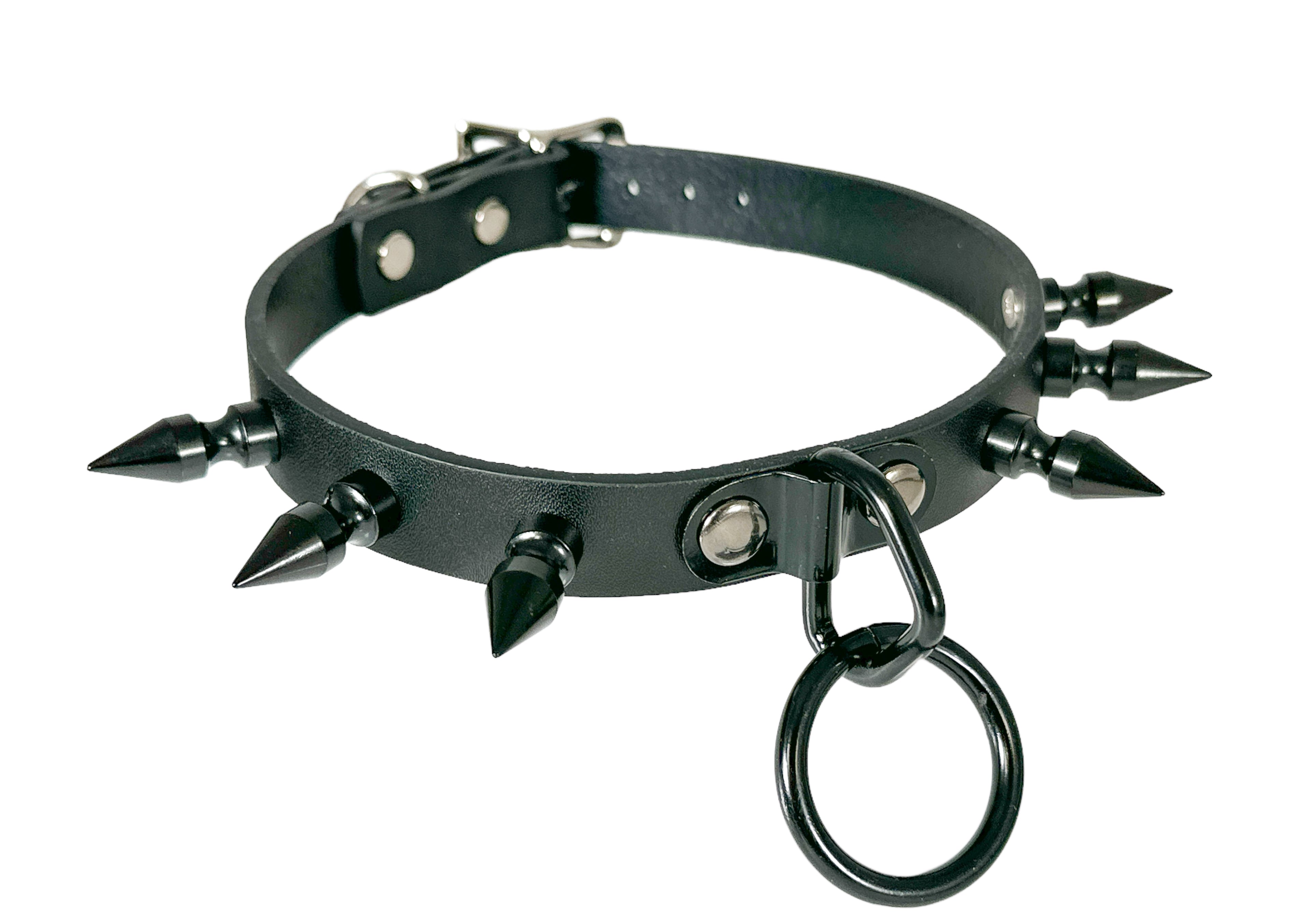 3/4" BLACK LEATHER CHOKER WITH SMALL 1" SPIKES AND 1" LOOP & RING Read more