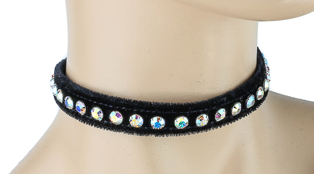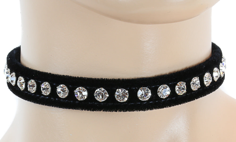 1/2" BLACK VELVET CHOKER WITH ONE ROW RHINESTONES Read more