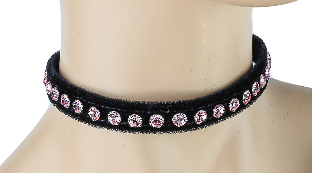 CK247 VELVET BLACK RHINESTONE CHOKER