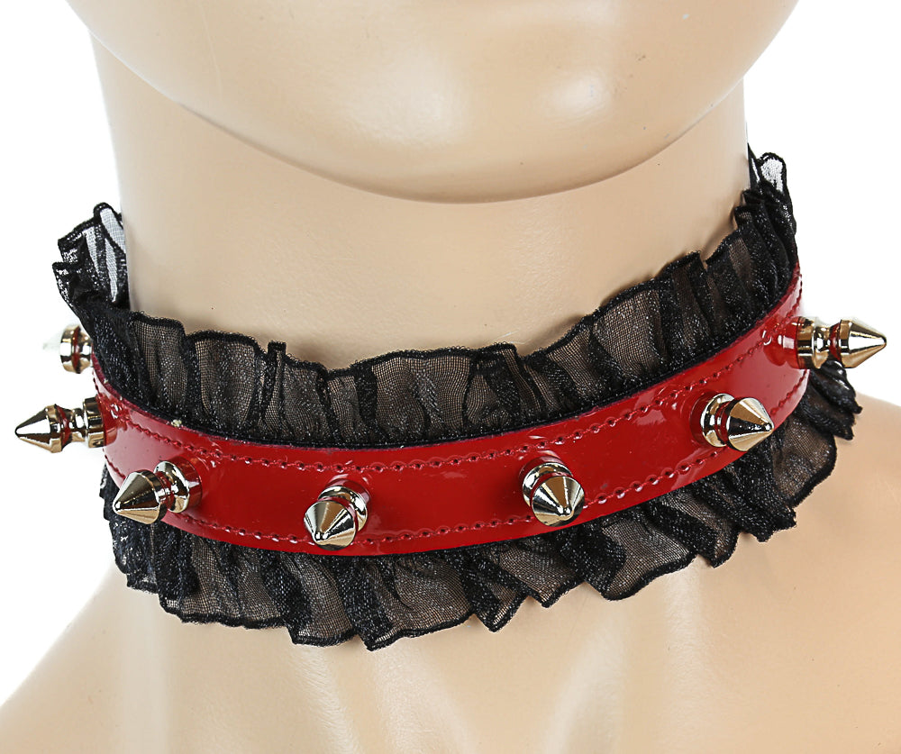 5/8" PATENT LEATHER 1/2" SPIKE CHOKER WITH BLACK LACE TRIMMING Read more