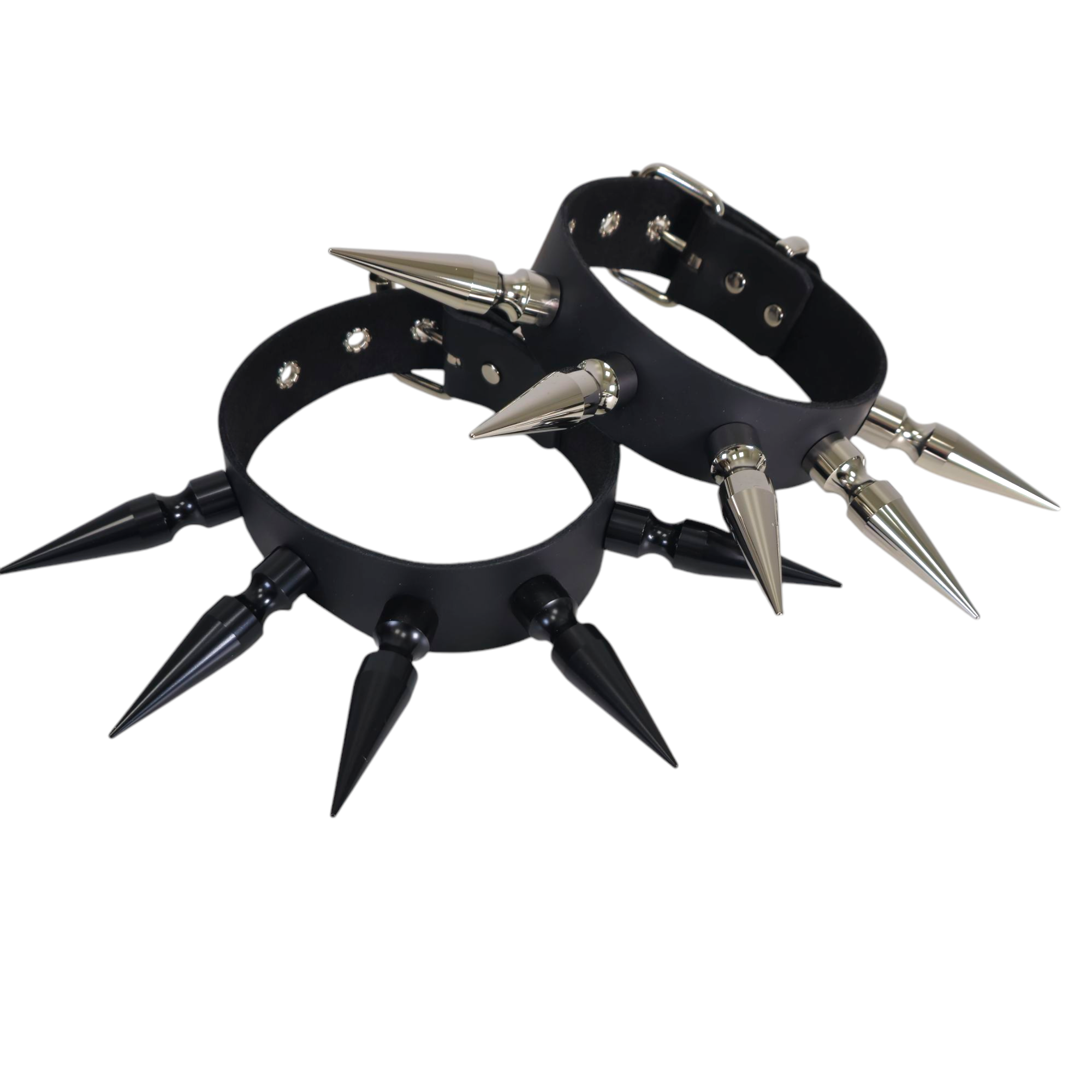 Leather Spike Collar – 5pcs 3" Spikes Handmade in the USA Material: Premium genuine cowhide leather Collar Width: 1 1/2"... Read more