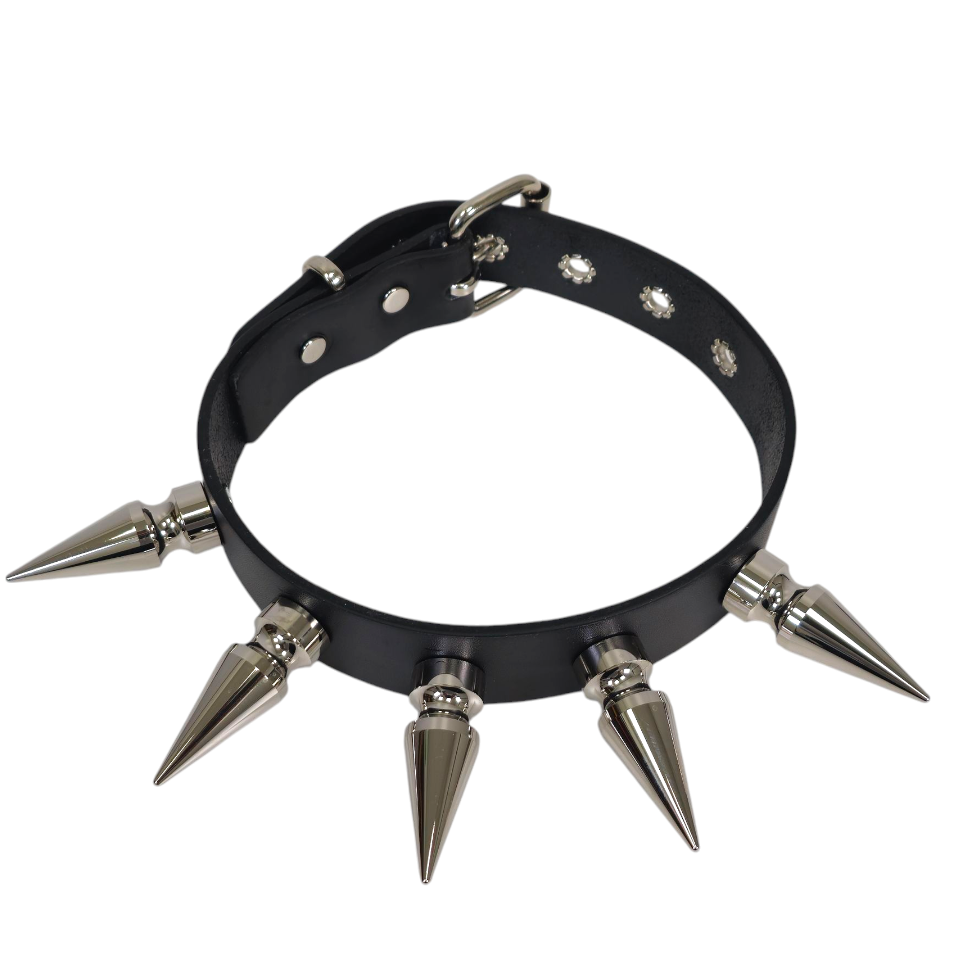 Leather Spike Collar – 5pcs 2" Spikes Handmade in the USA Material: Premium genuine cowhide leather Collar Width: 1 1/4"... Read more