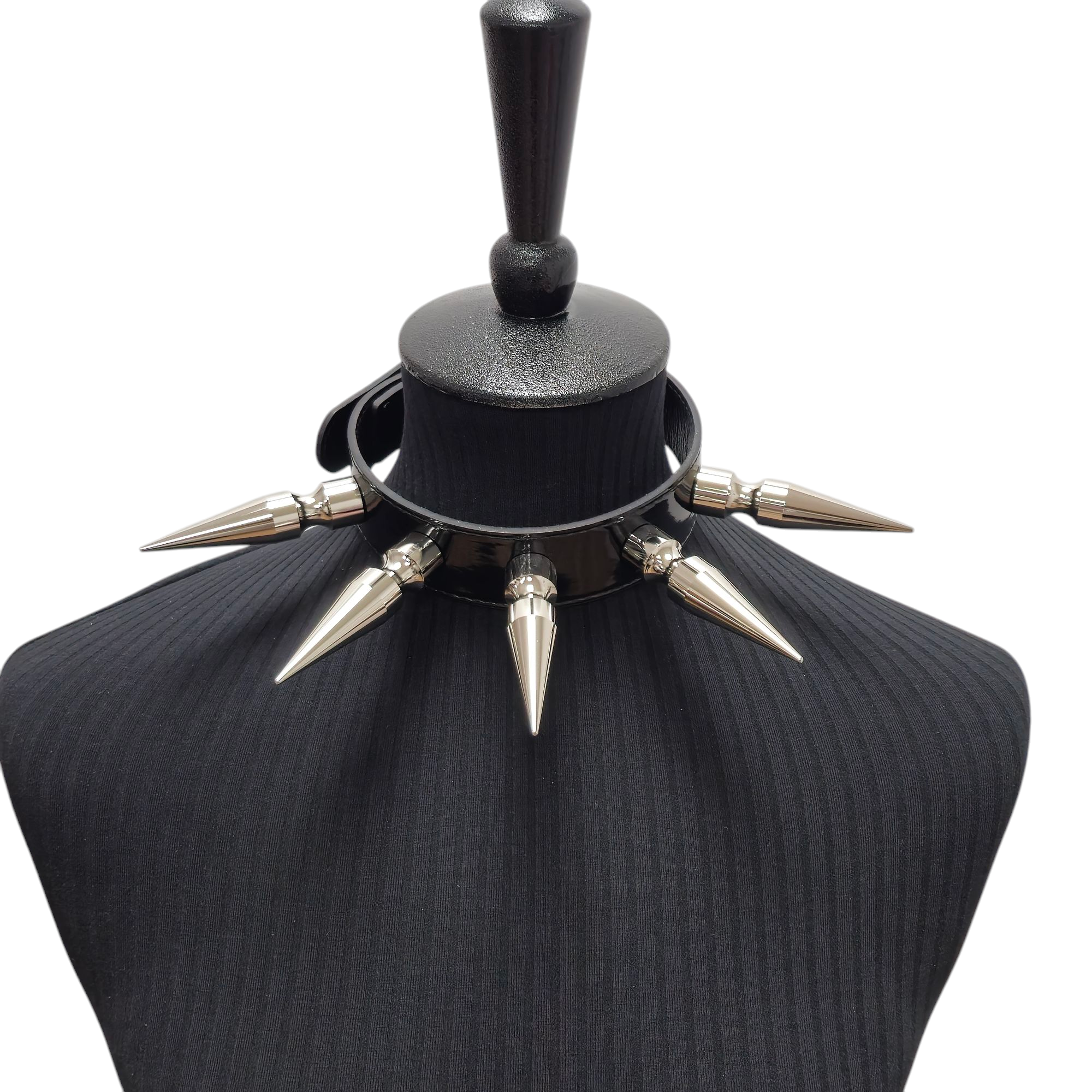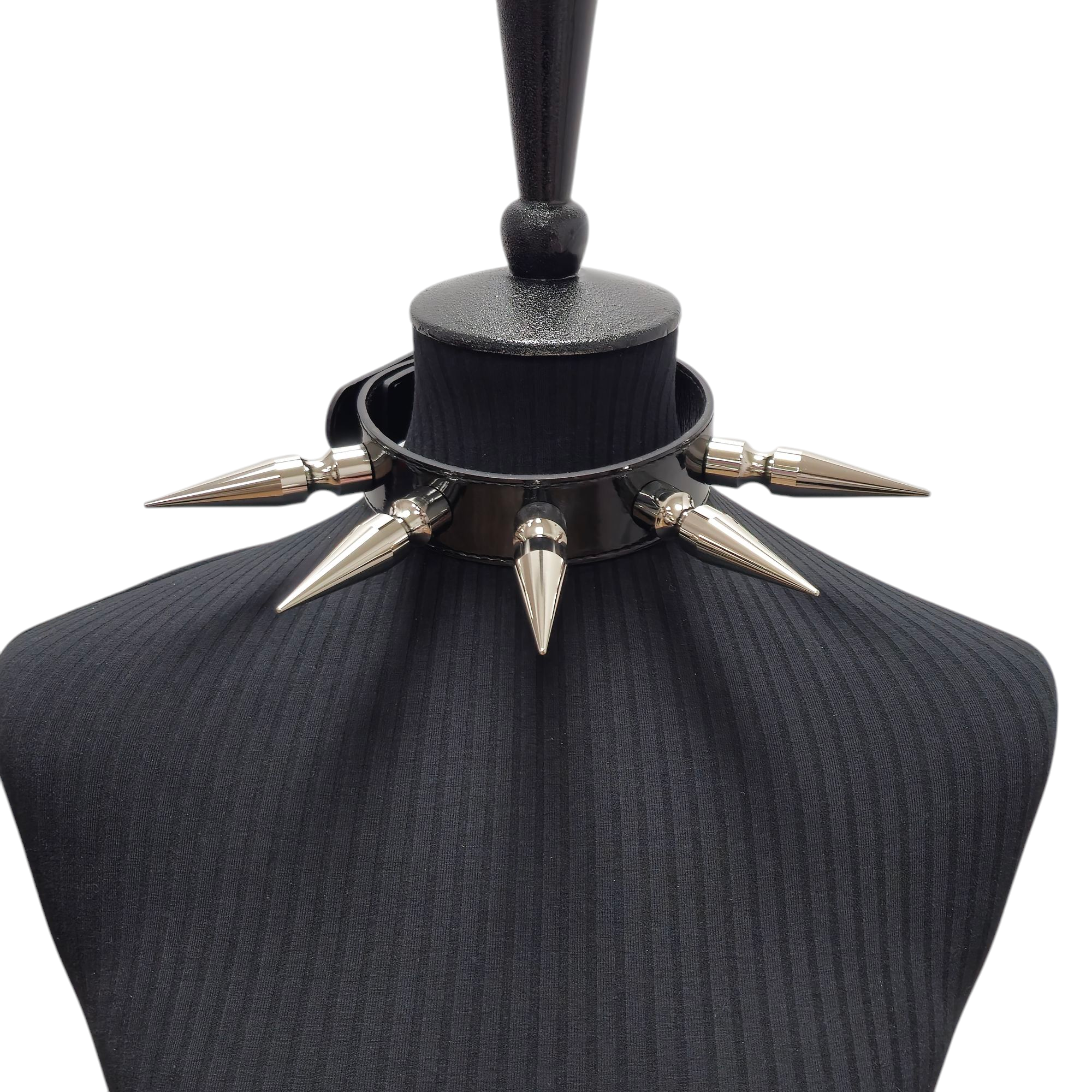 Patent Leather Spike Collar – 5pcs 3" MASSIVE Spikes Handmade in the USA Material: Premium Vegan Patent Leather Collar Width:... Read more