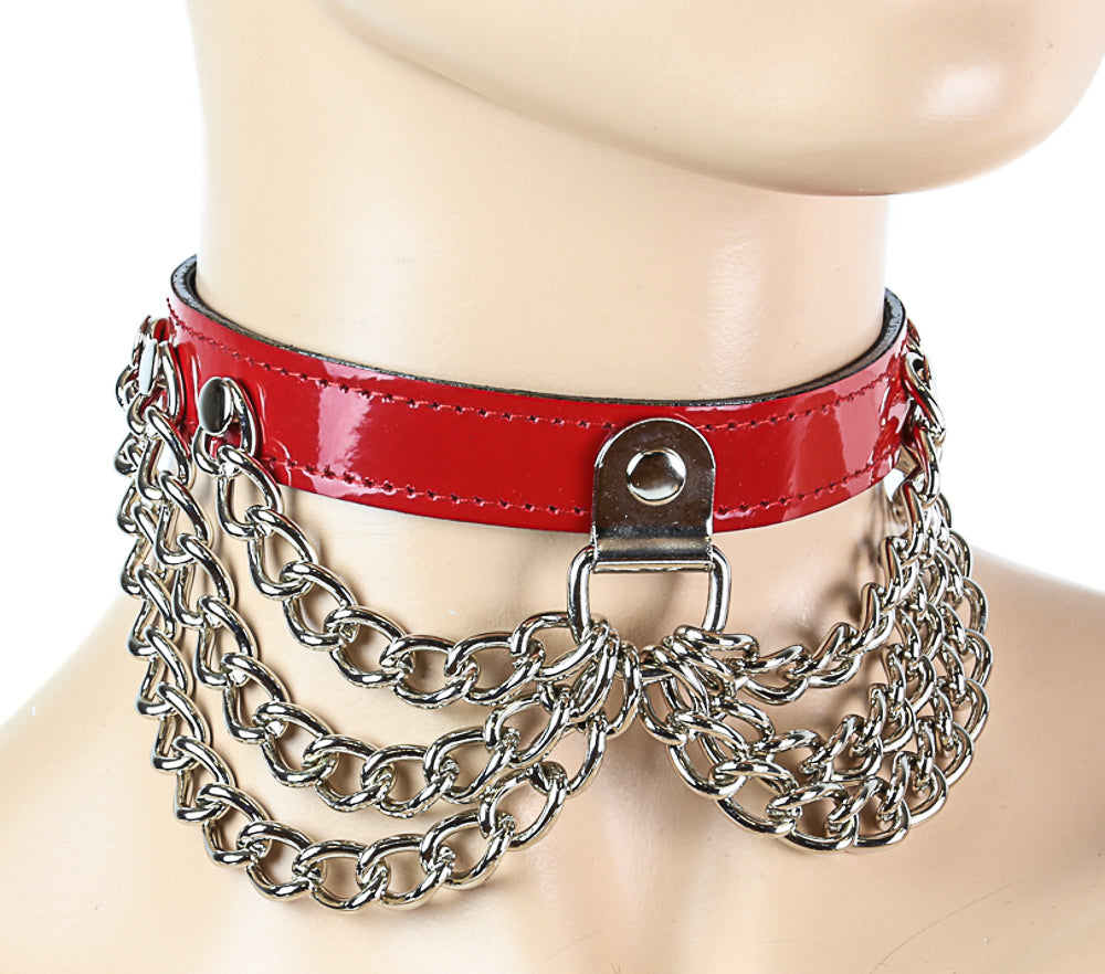 3/4" PATENT LEATHER CHOKER WITH 3 ROW HANGING CHAINS Read more