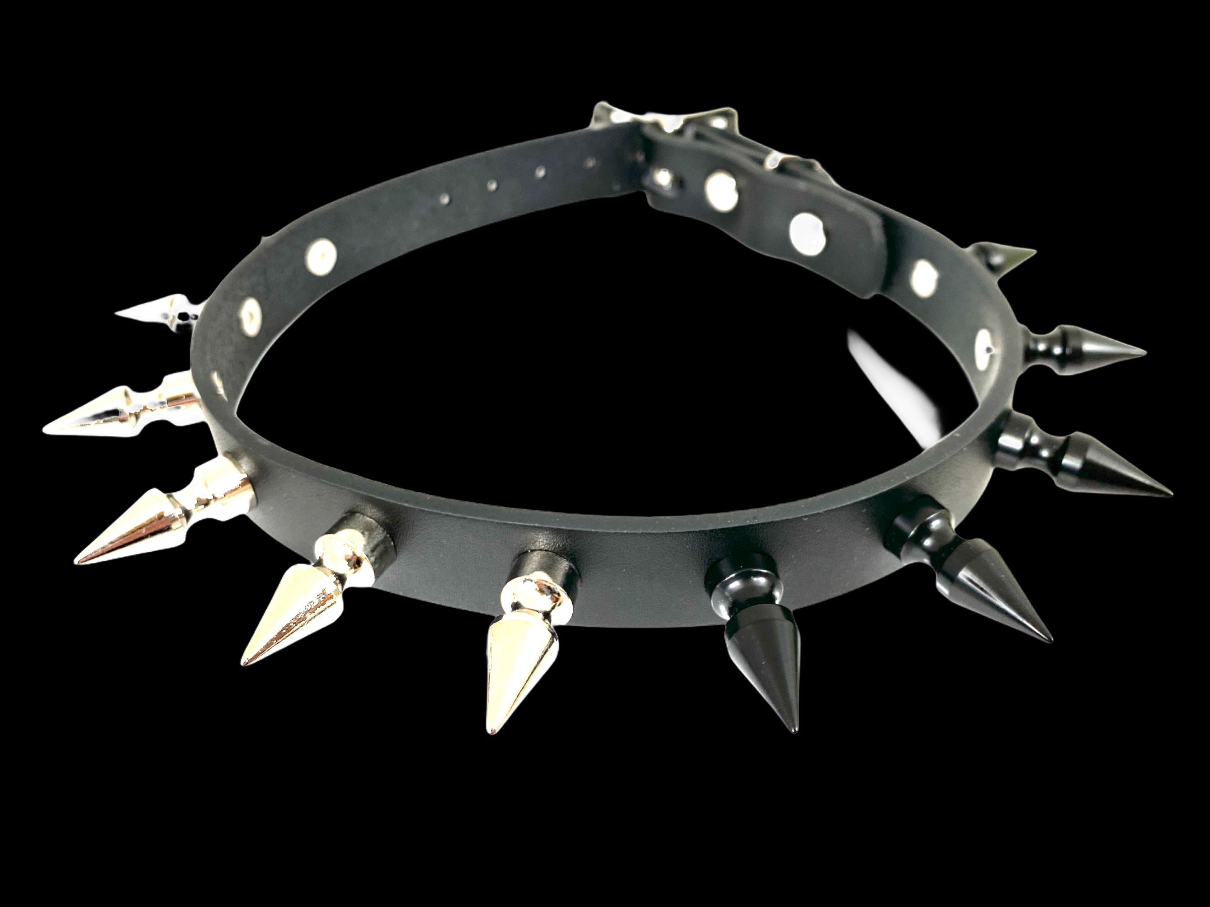 3/4" BLACK LEATHER CHOKER WITH 1" BLACK AND SILVER SPIKES Read more