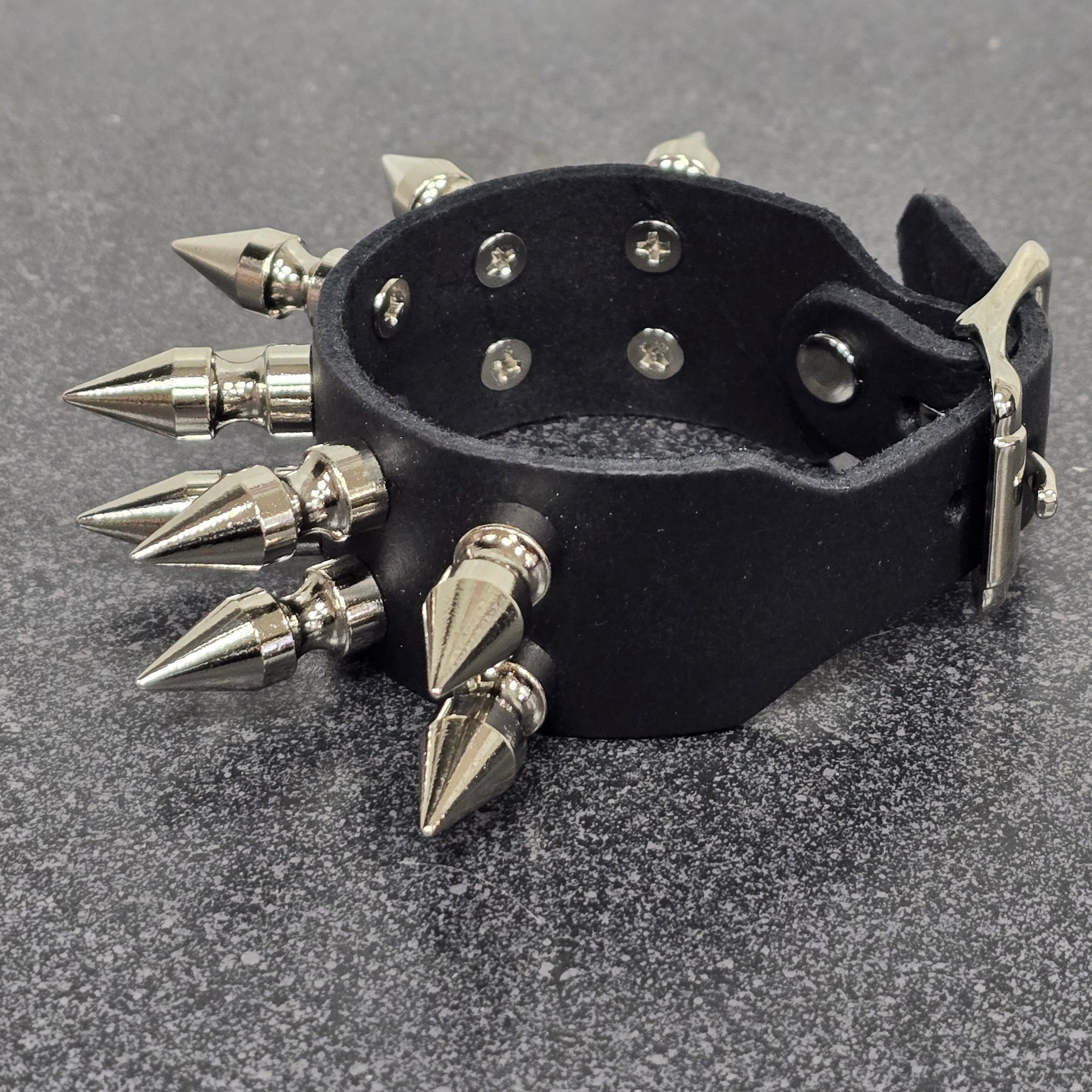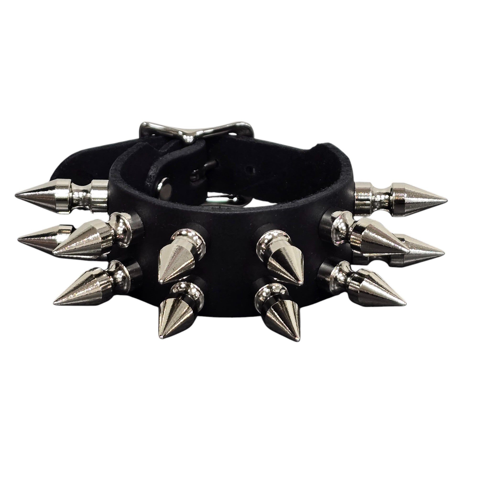 BUCKLE BRACELET WITH 2 ROW 1" SPIKES 1 1/4" WIDE WITH BUCKLE BACK GENUINE LEATHER Read more