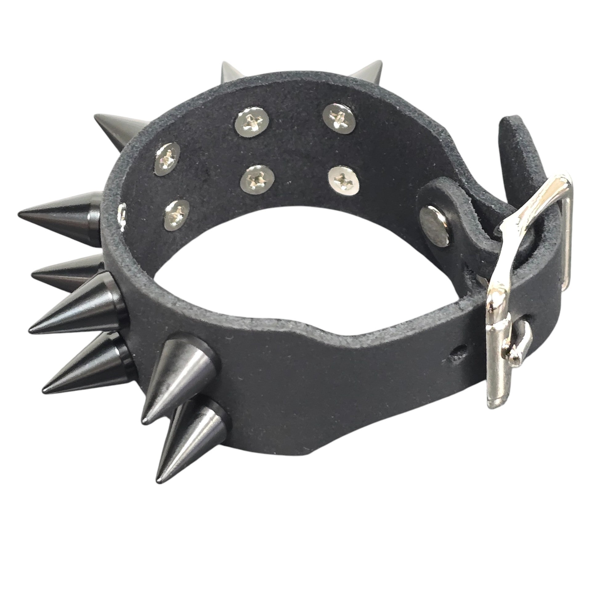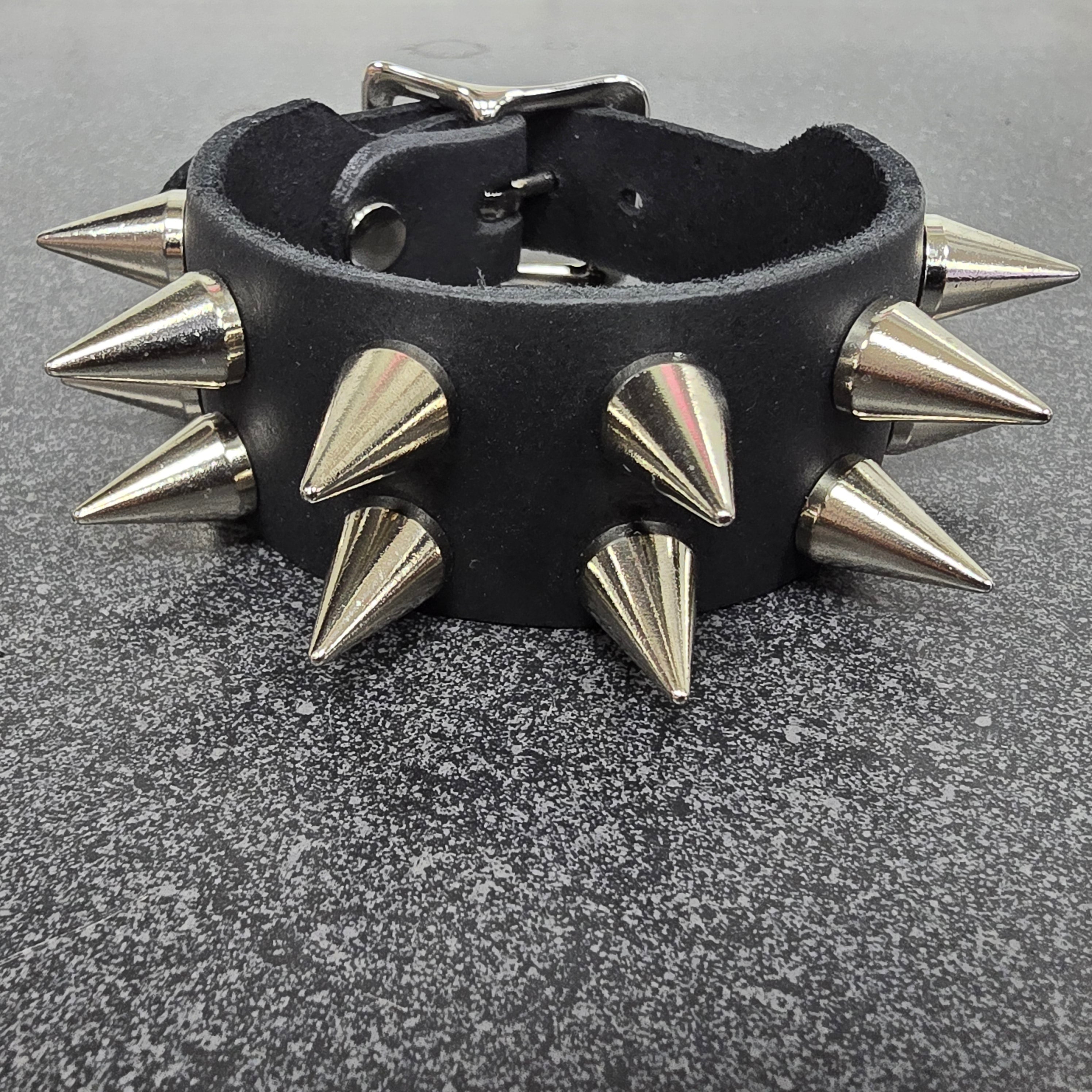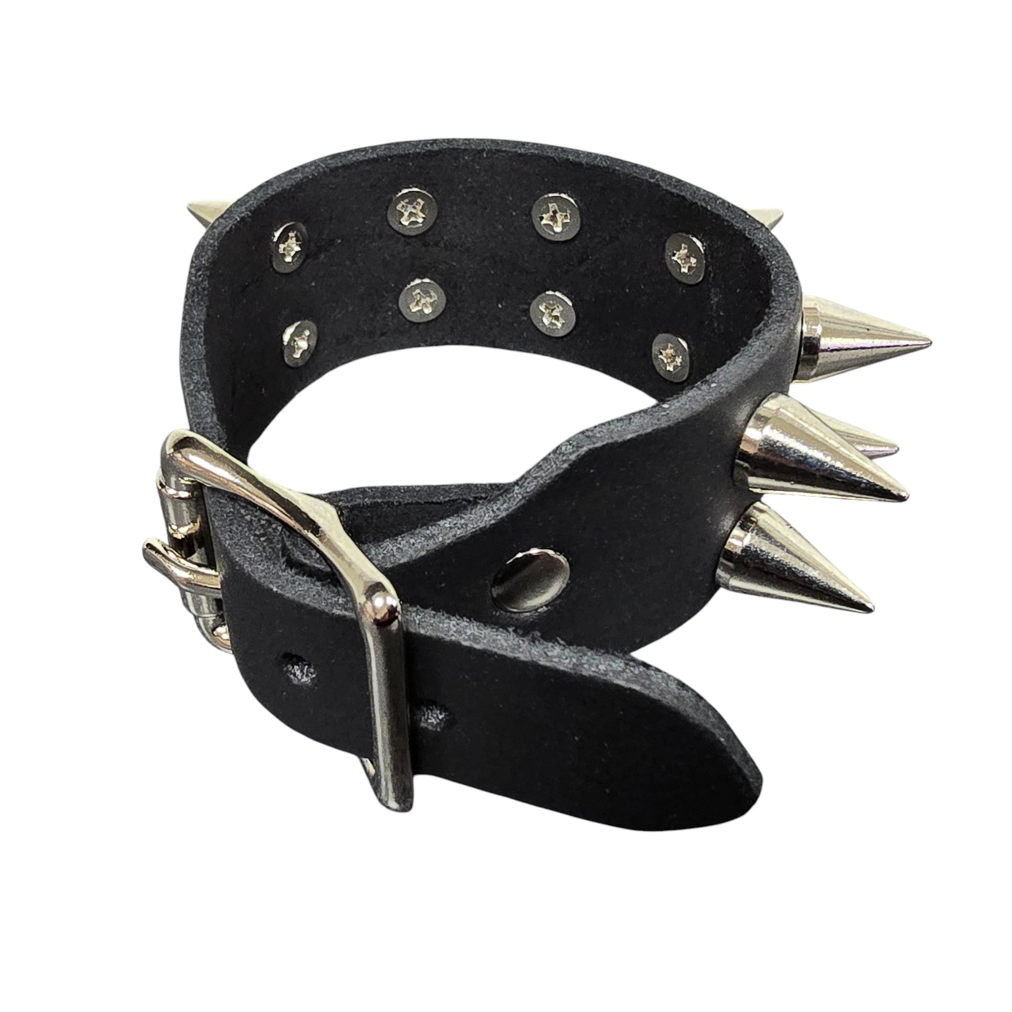 BUCKLE BRACELET WITH 2 ROW 1" SPIKES 1 1/4" WIDE WITH BUCKLE BACK GENUINE LEATHER Read more