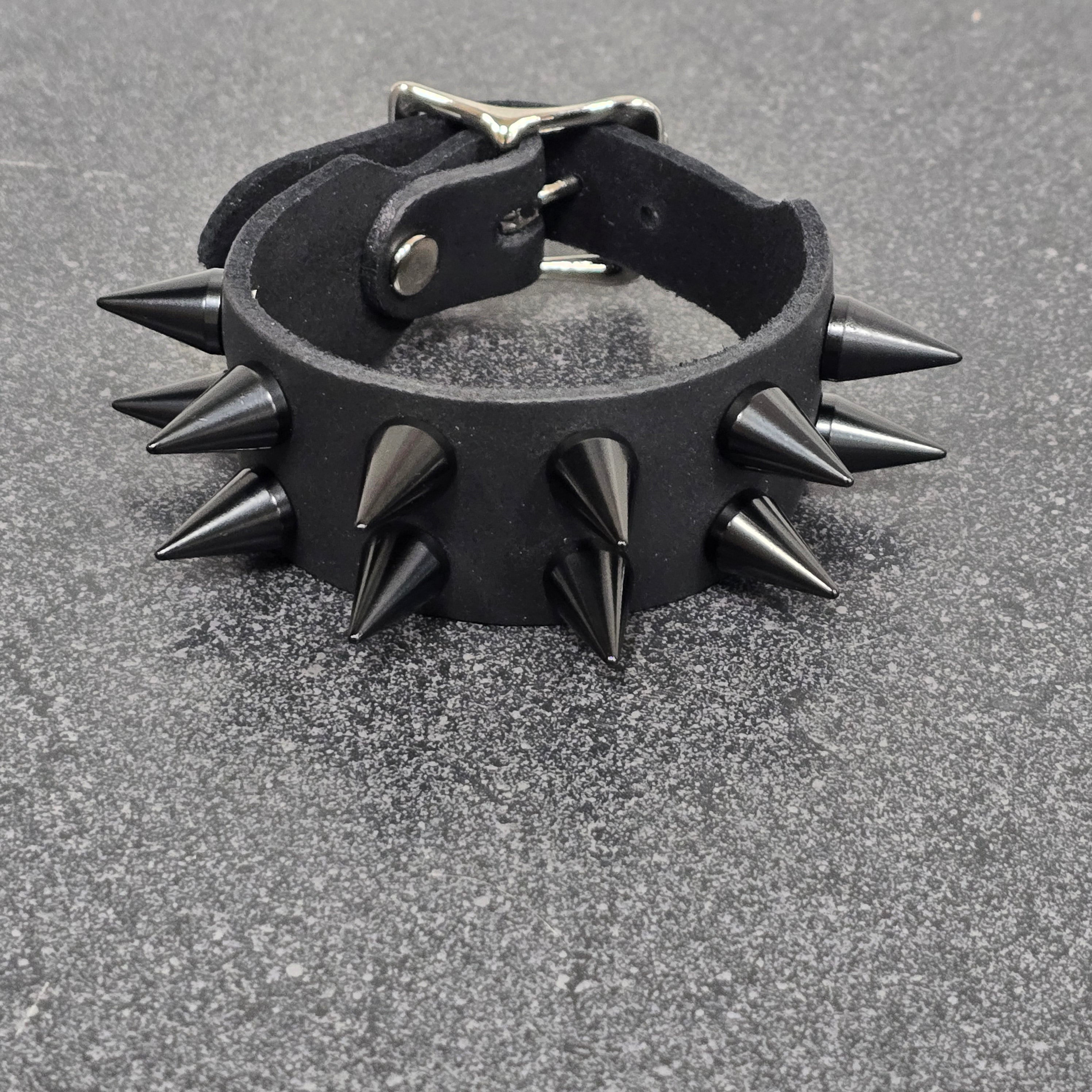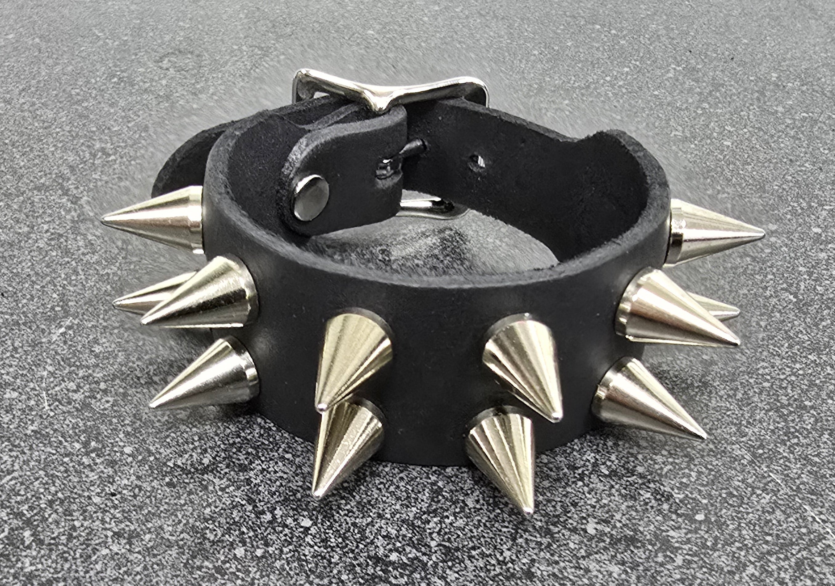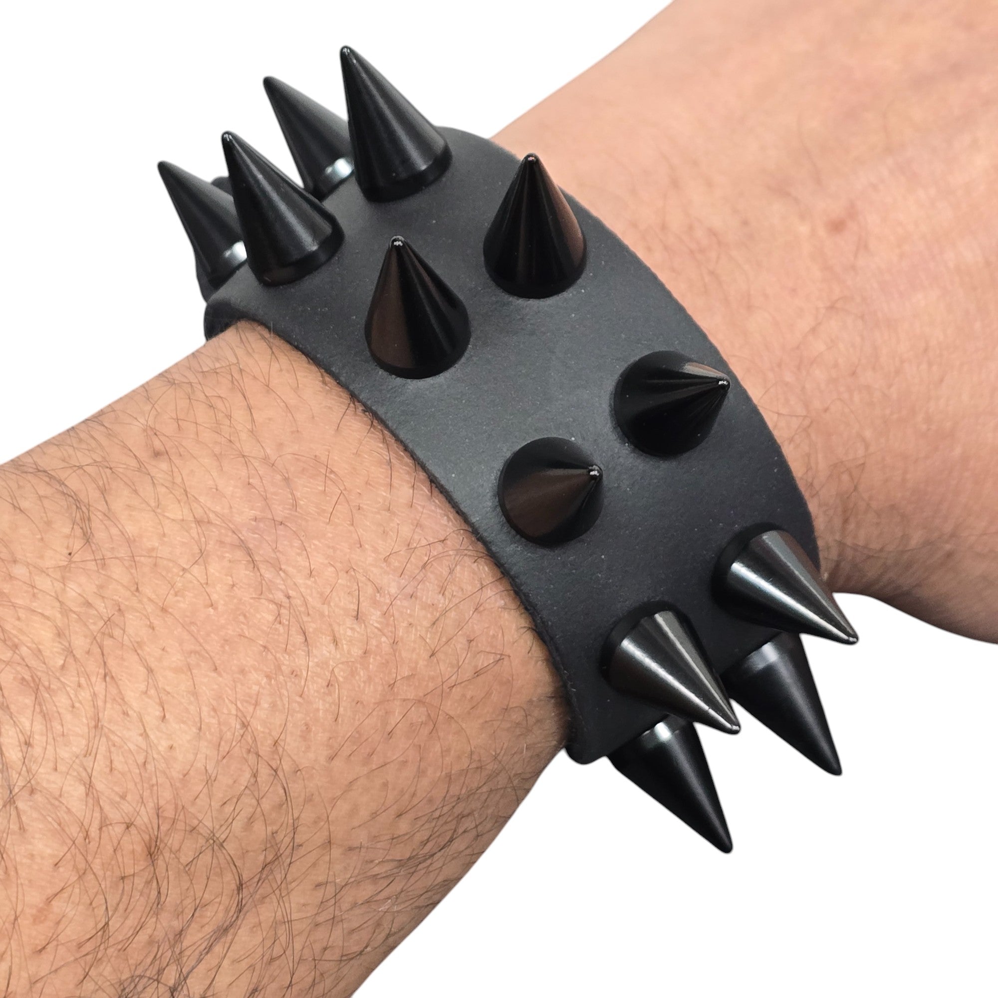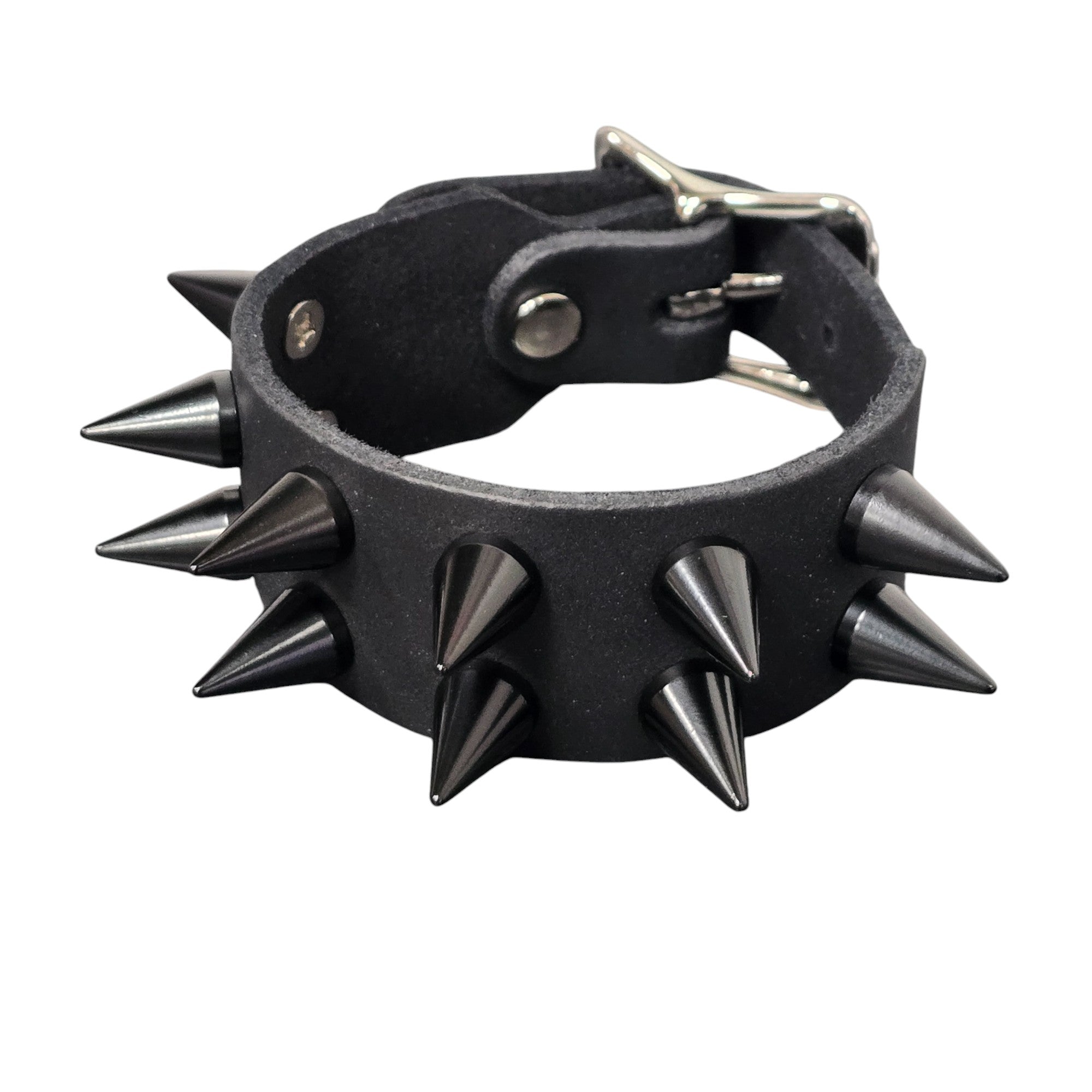 BUCKLE BRACELET WITH 2 ROW 1" SPIKES 1 1/4" WIDE WITH BUCKLE BACK GENUINE LEATHER Read more