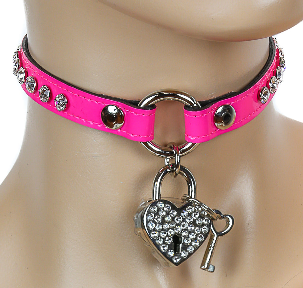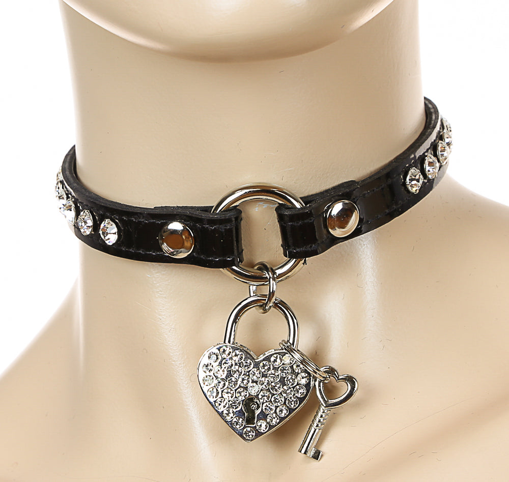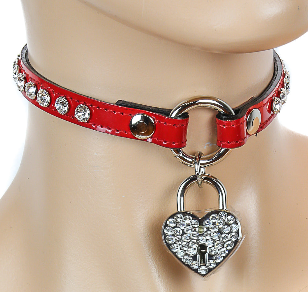 PATENT LEATHER -O- RING CHOKER WITH RHINESTONE/SILVER HEART LOCK Read more