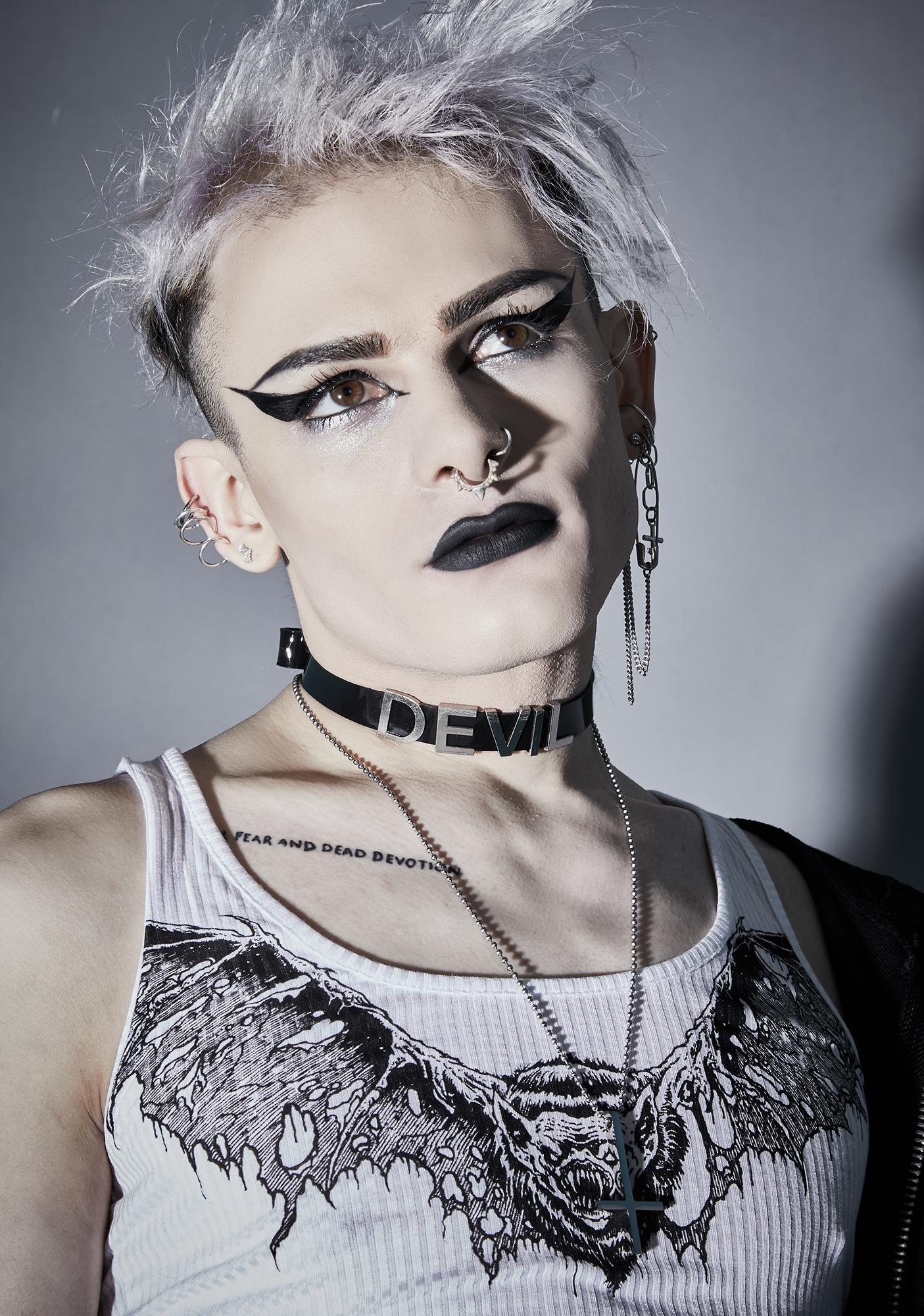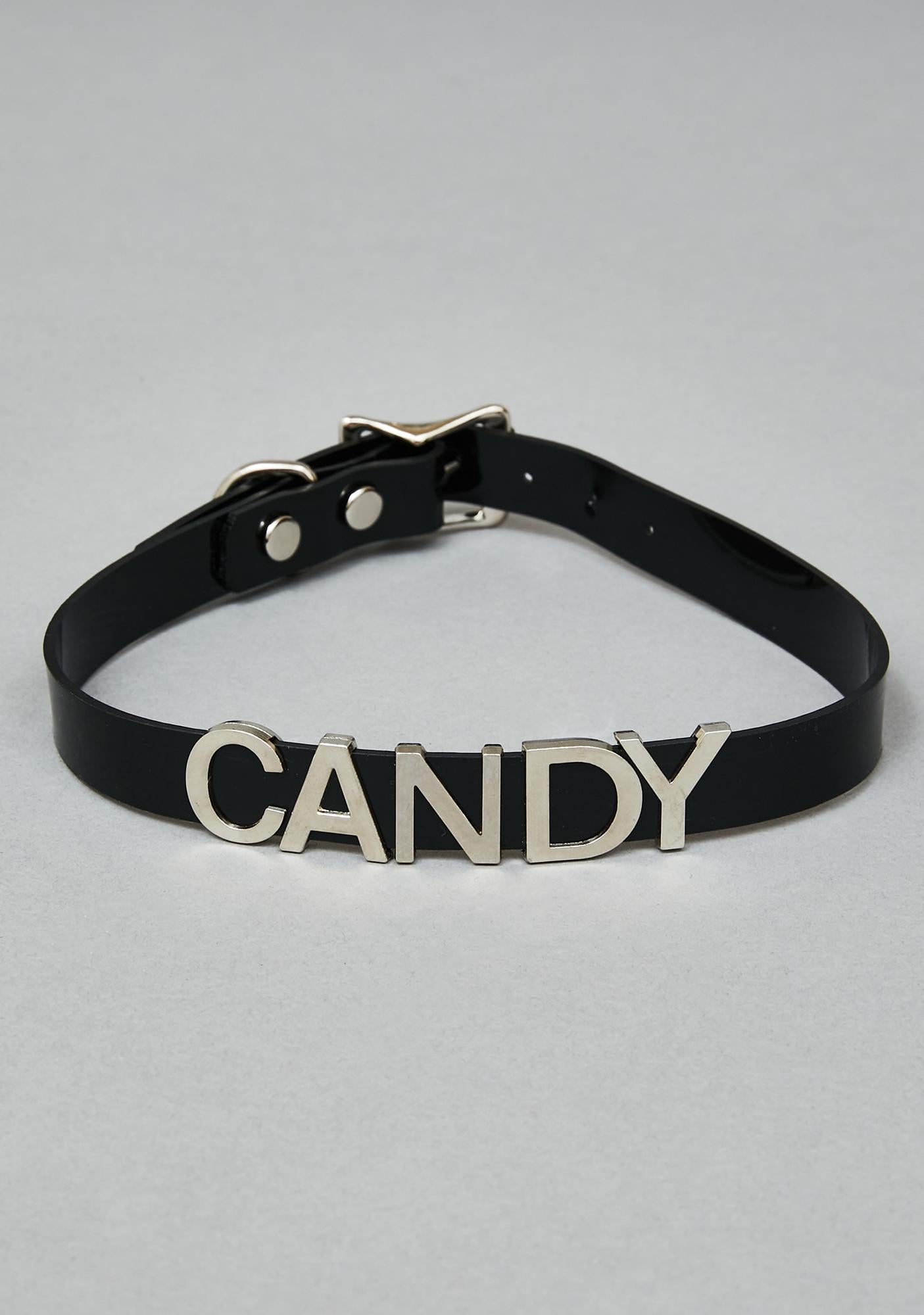 FC291 LEATHER STAINLESS STEEL LETTER NAME FETISH CHOKER
