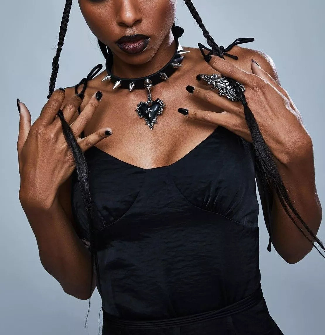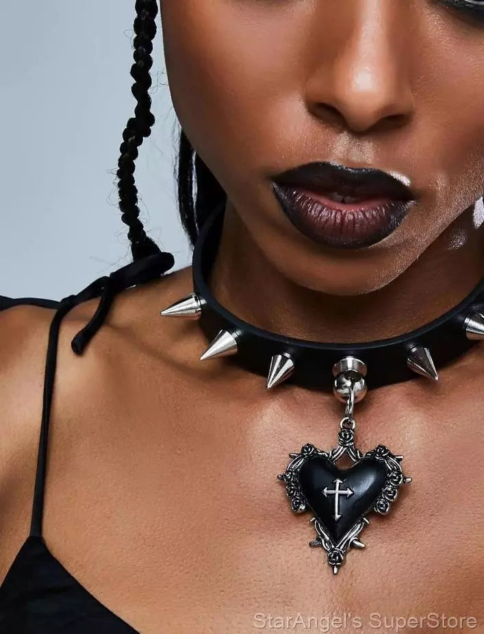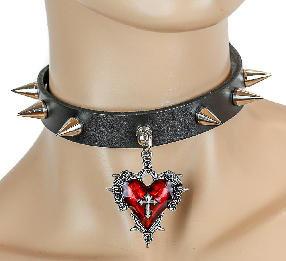 CONE SPIKE LEATHER CHOKER WITH CROSS HEART PENDANT Read more