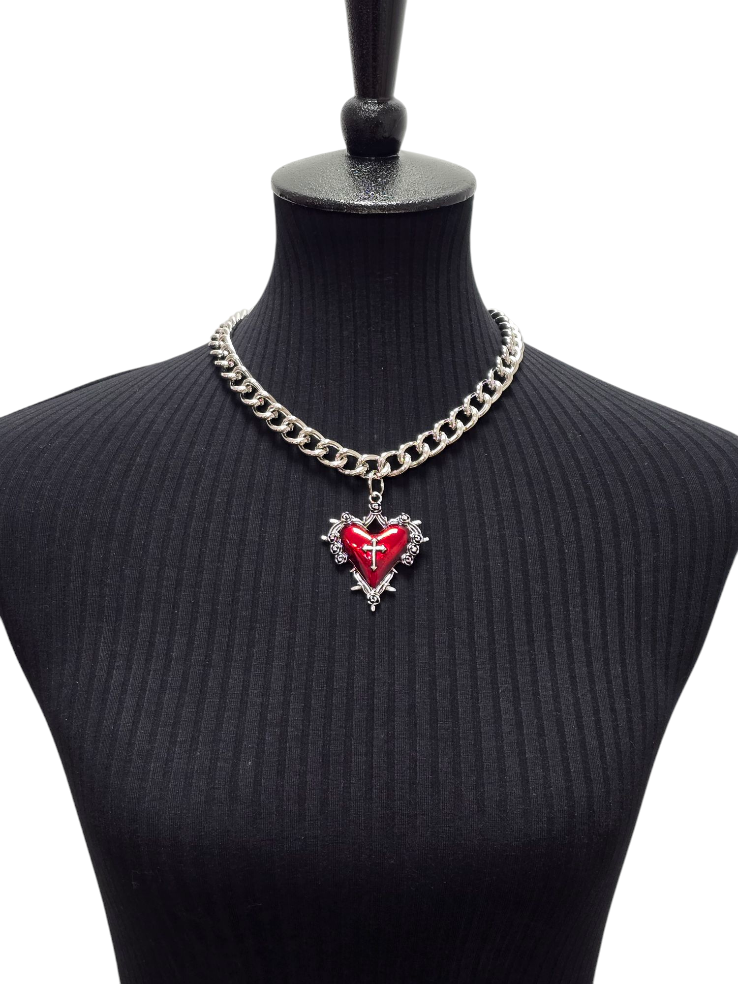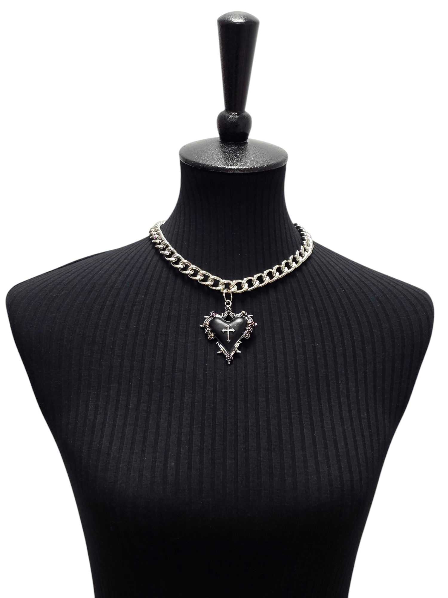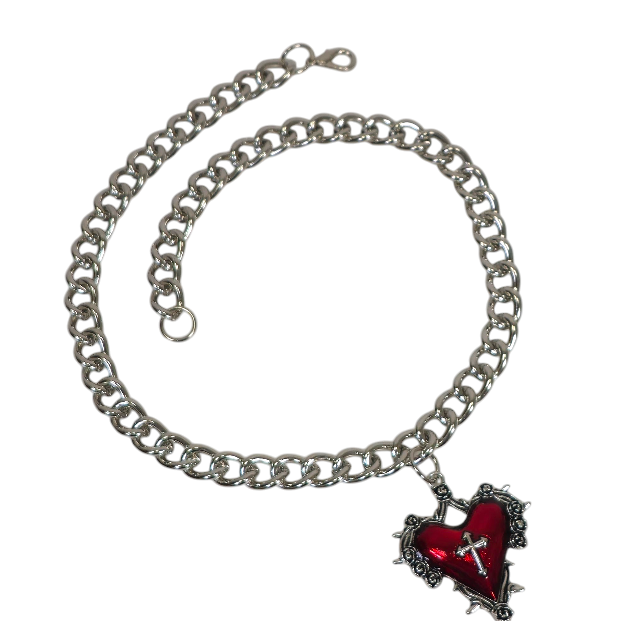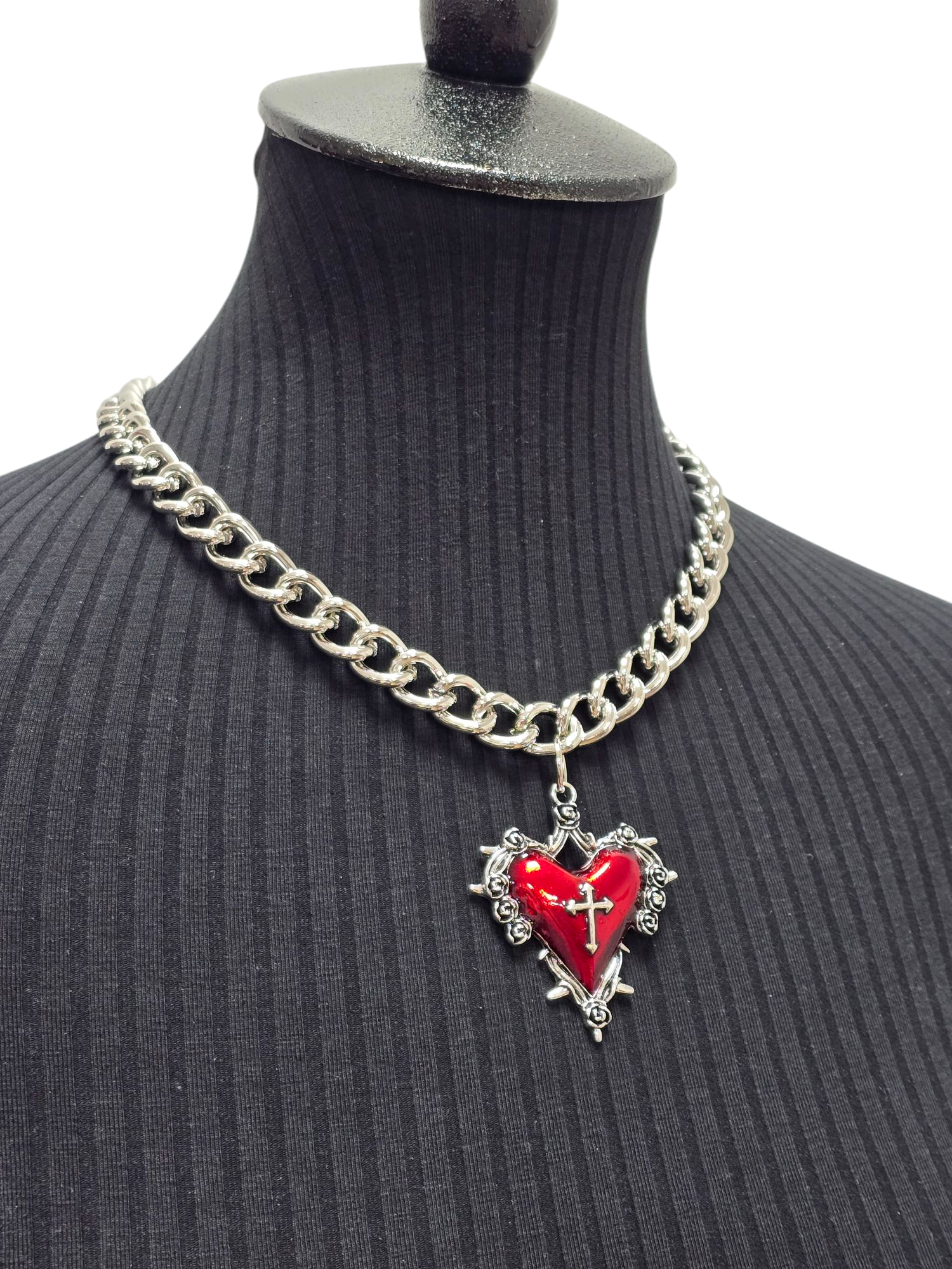 CROSS ROSE HEART THORNE PENDANT 3MM THINK HEAVY STEEL CHAIN 20" LONG Read more