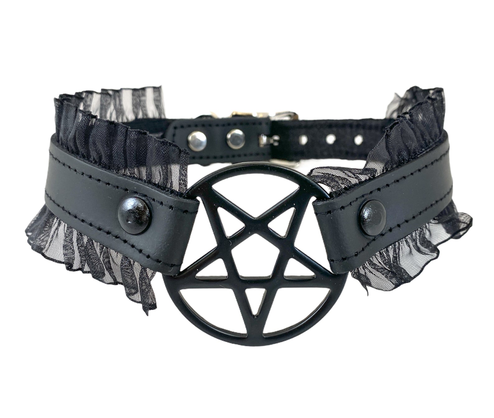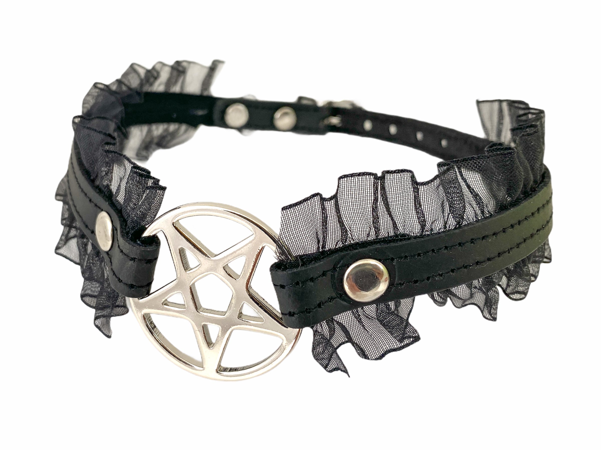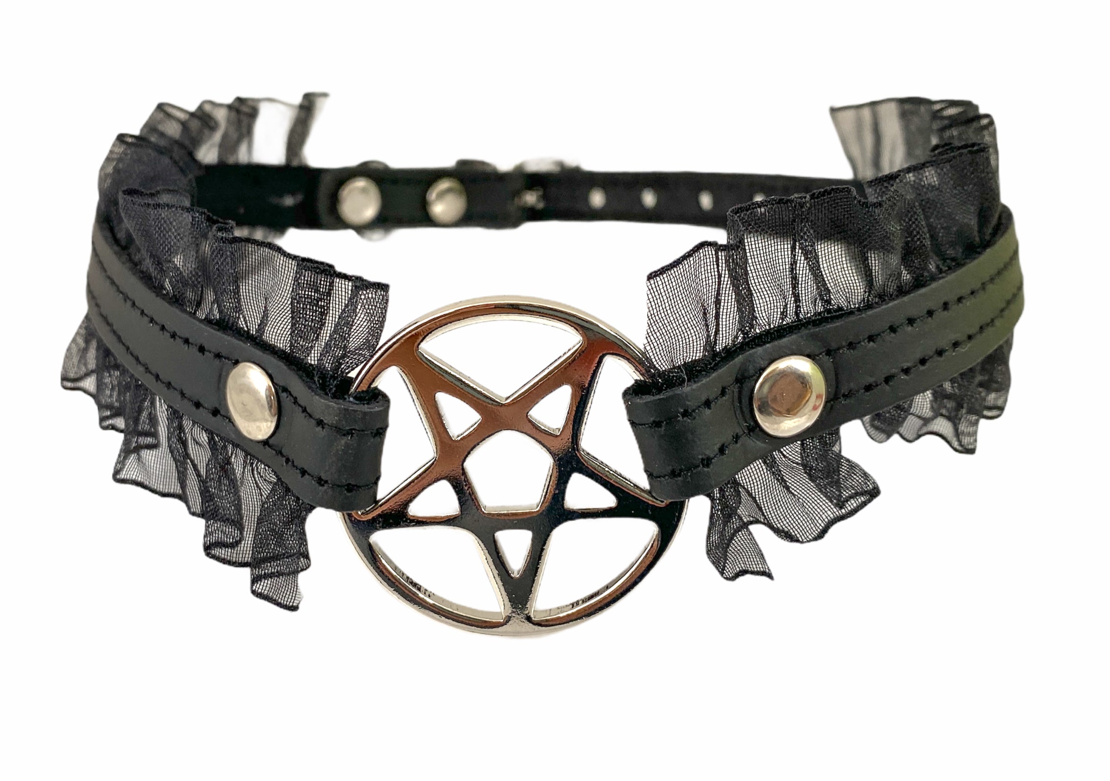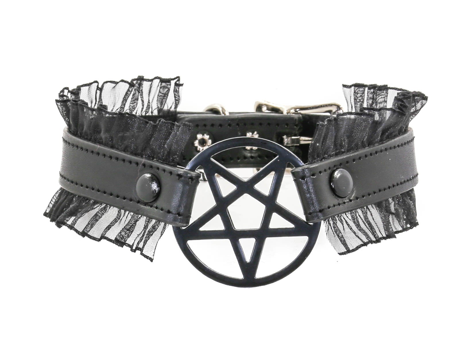 FCK130 PENTAGRAM LACE TRIM GOTH COLLAR