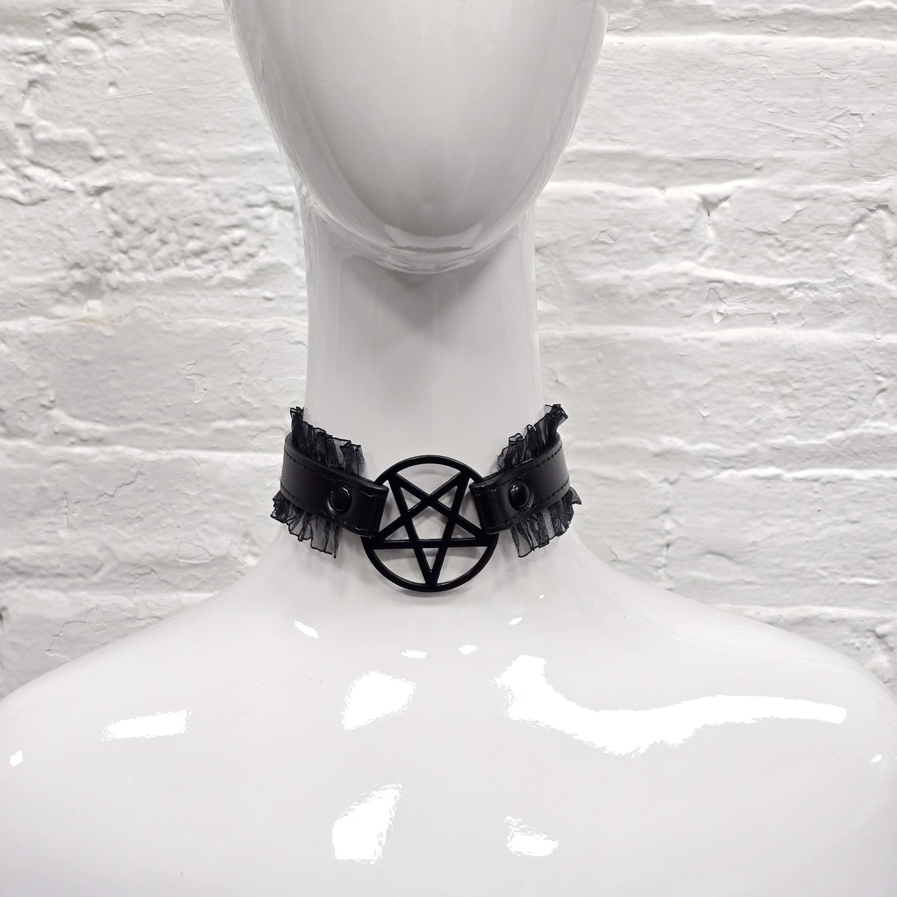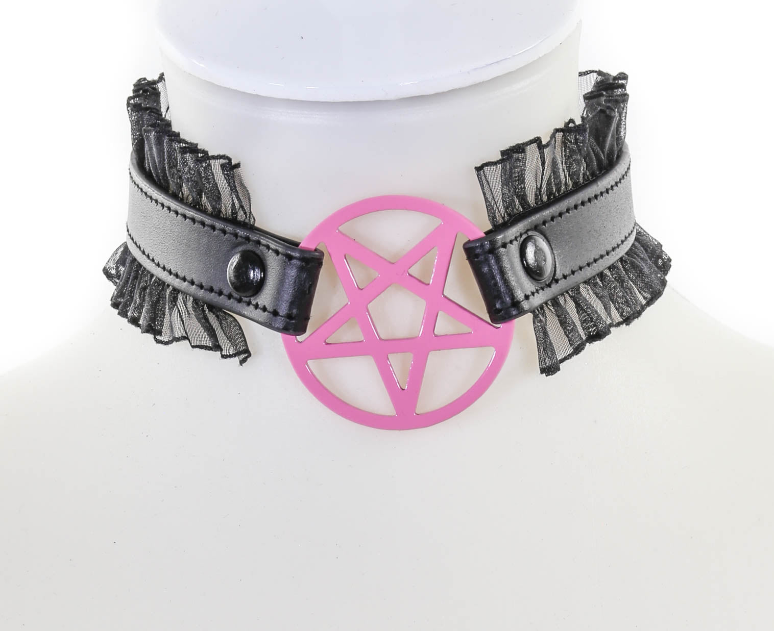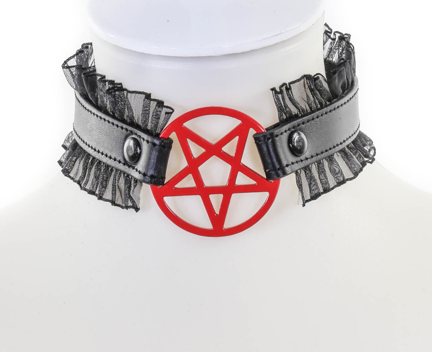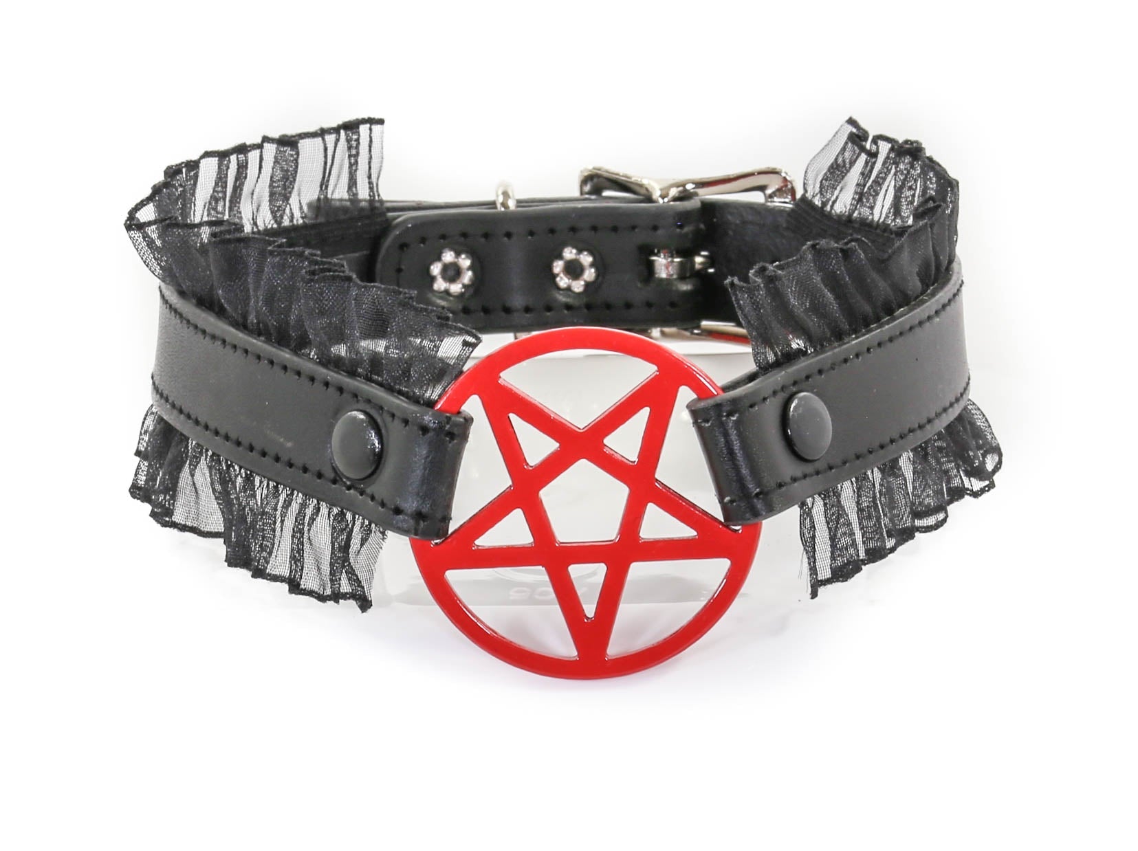 FCK130 PENTAGRAM LACE TRIM GOTH COLLAR