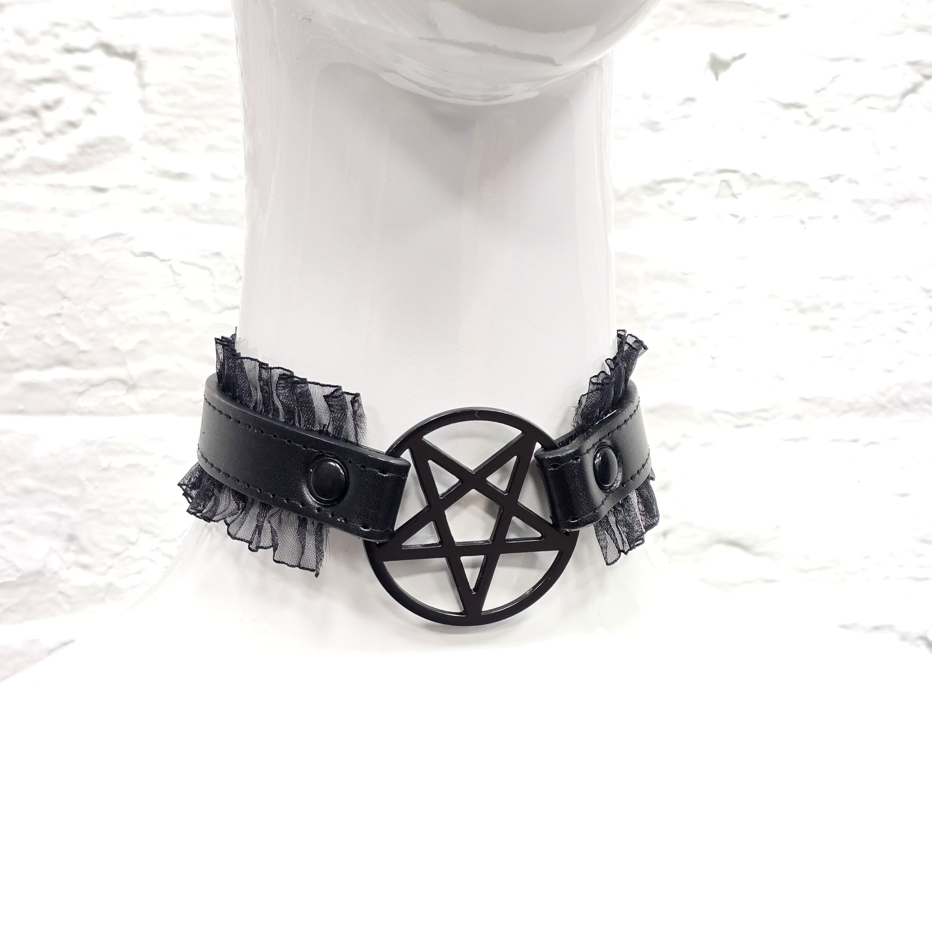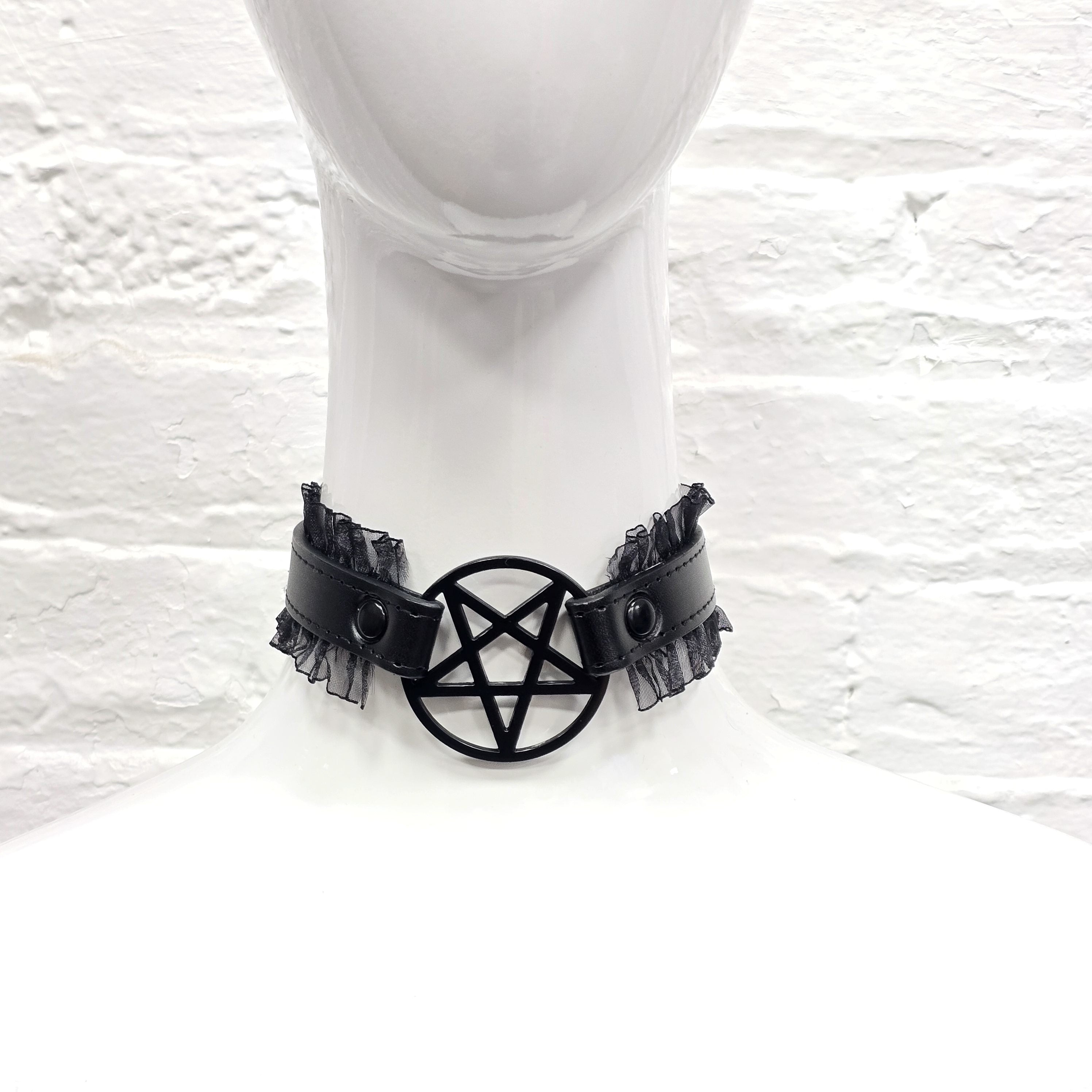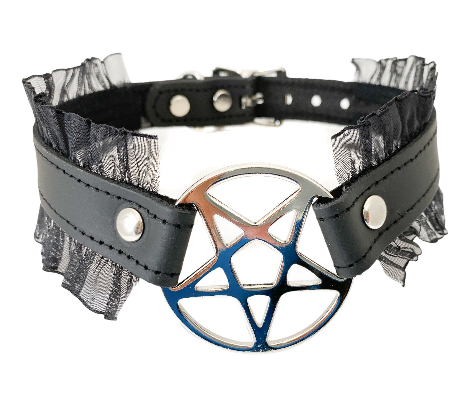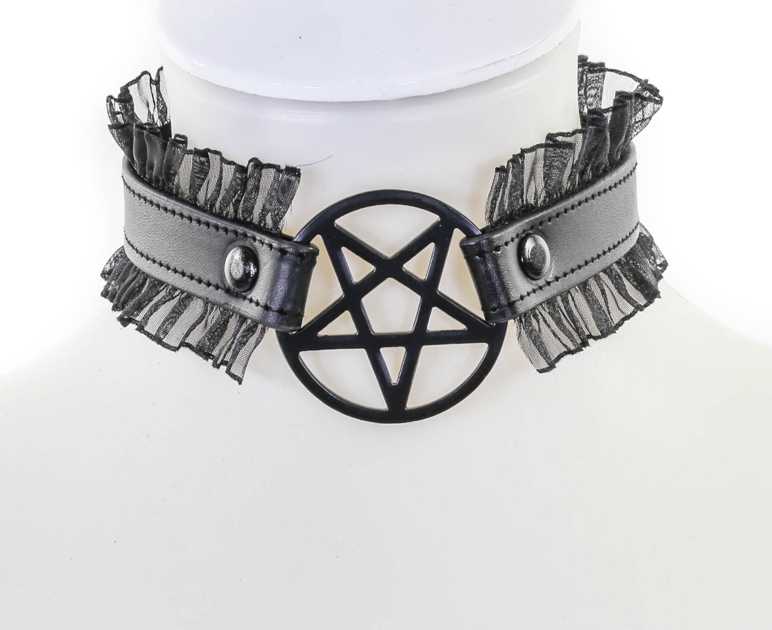 FCK130 PENTAGRAM LACE TRIM GOTH COLLAR