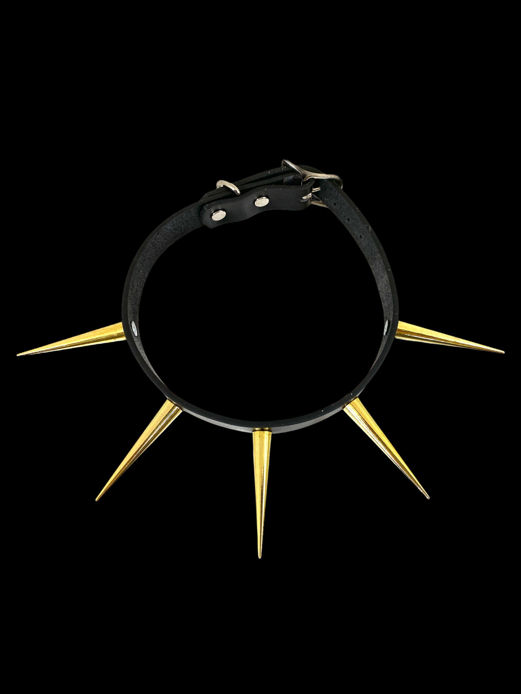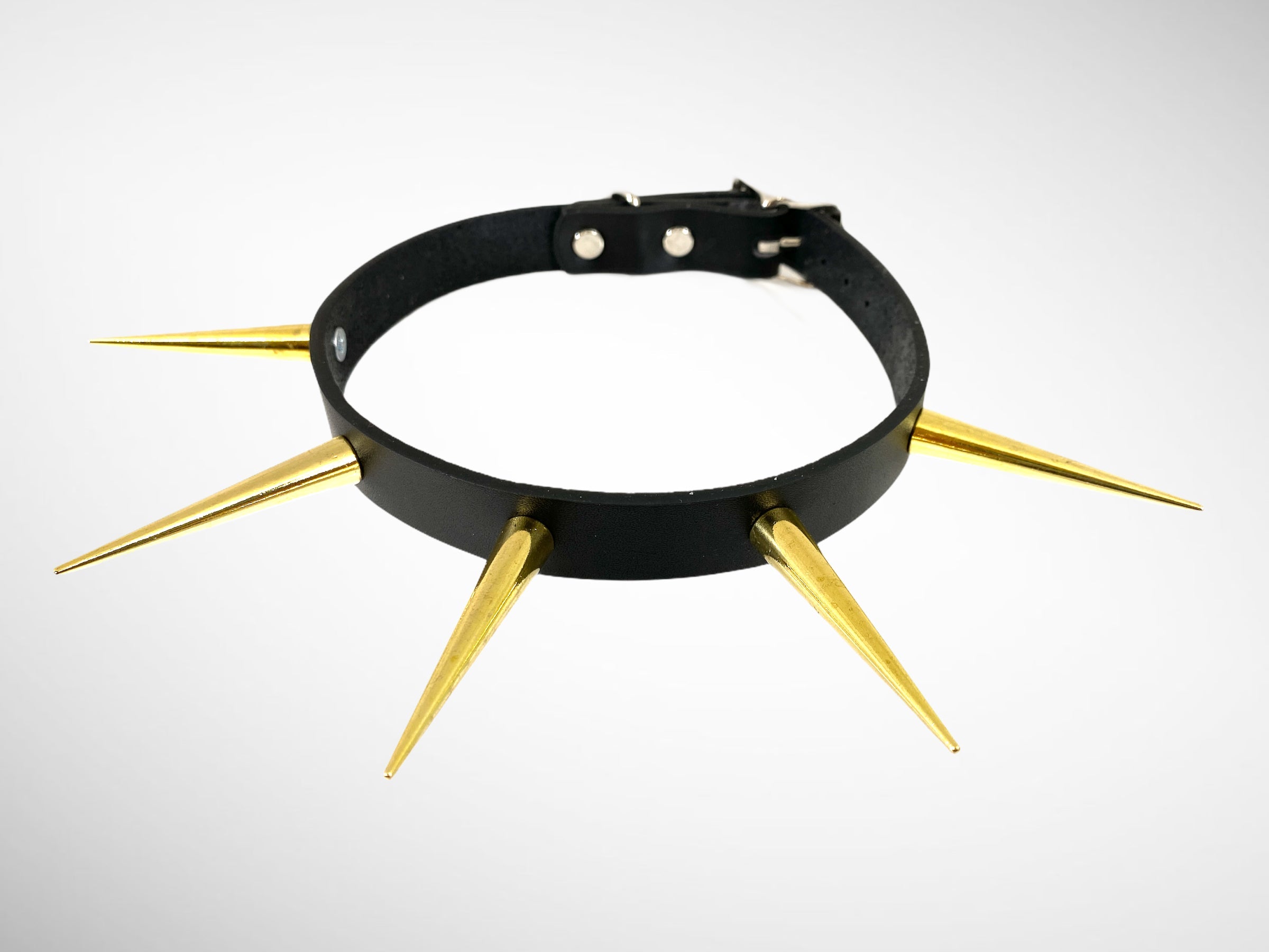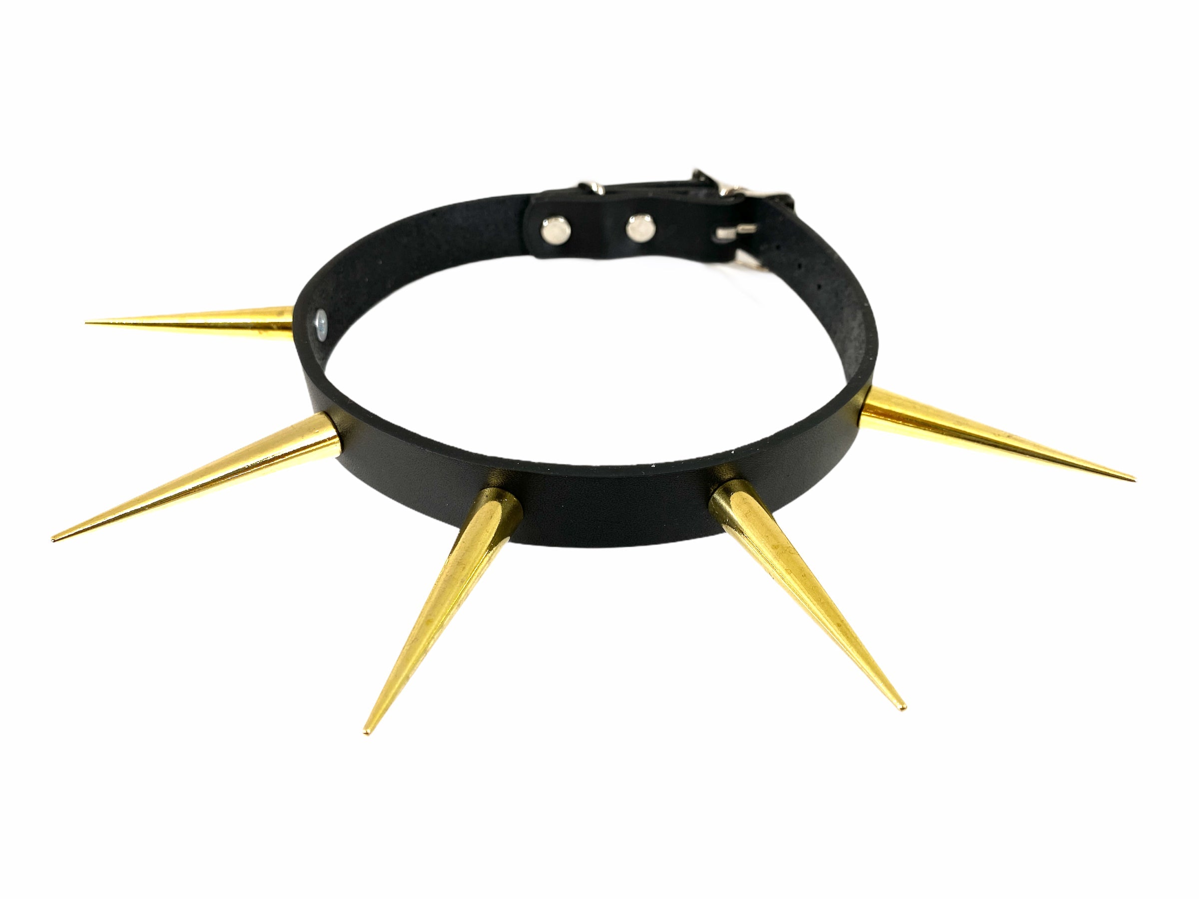 3/4" BLACK LEATHER CHOKER WITH LARGE CONE SPIKES Read more