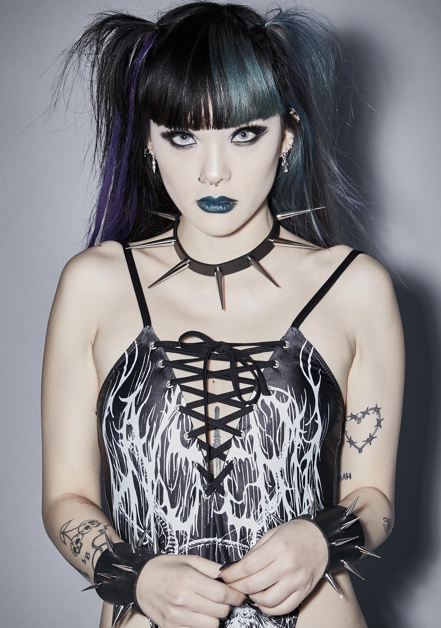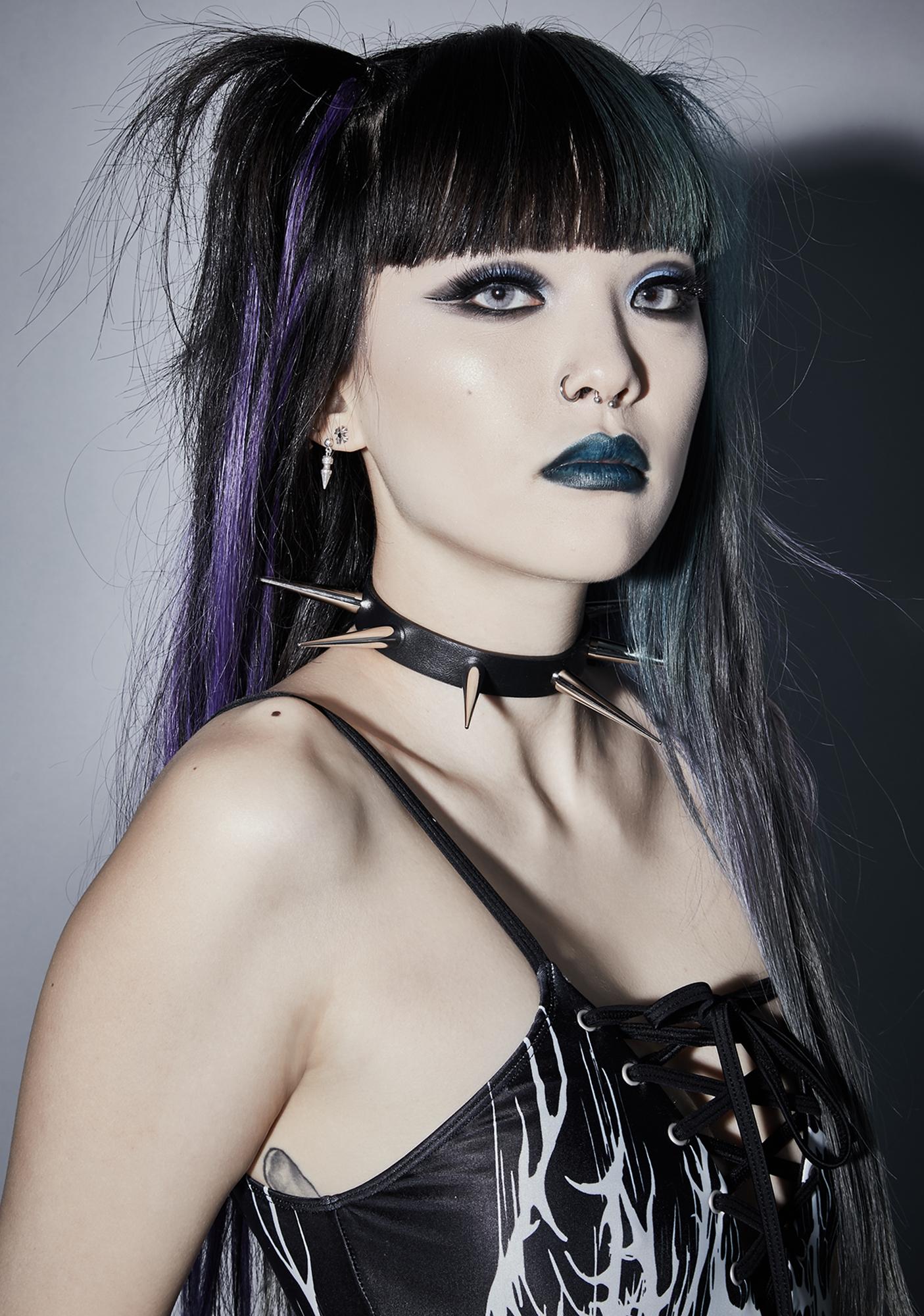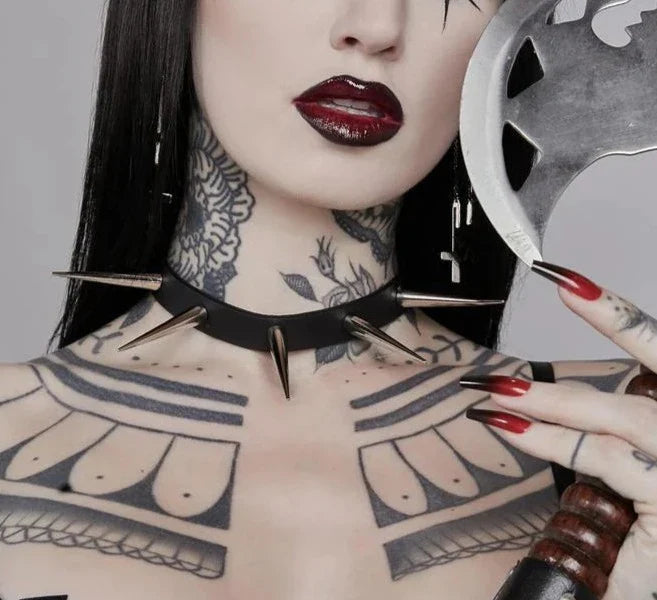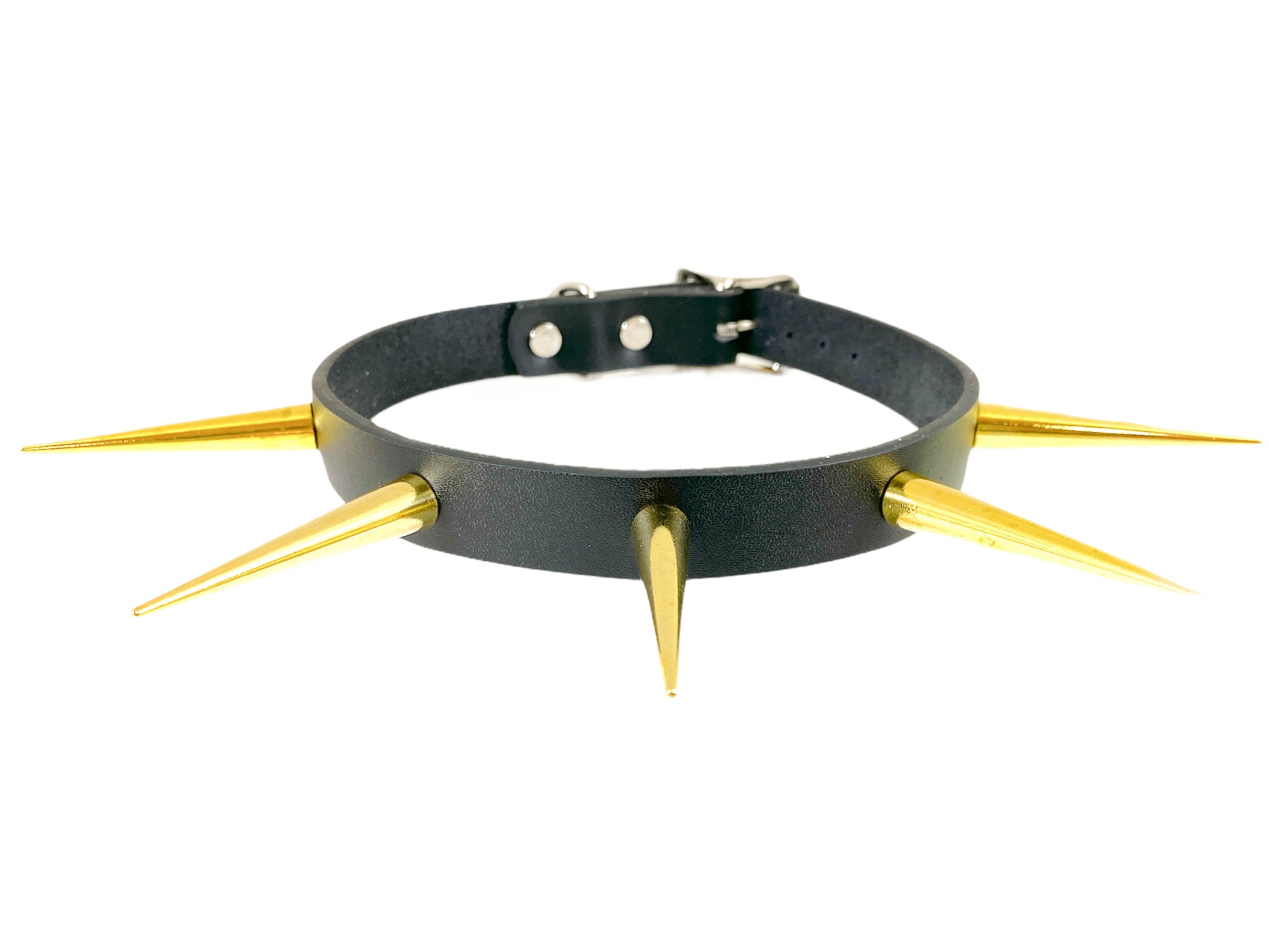 3/4" BLACK LEATHER CHOKER WITH LARGE CONE SPIKES Read more